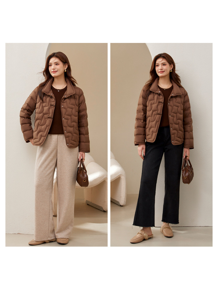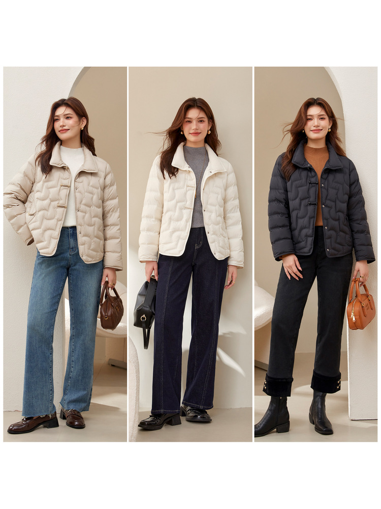 Великое шоу большого размера женский темперамент нежный и простой круглый воротник дикий теплый пуховик жирный mm2024 зимний новый