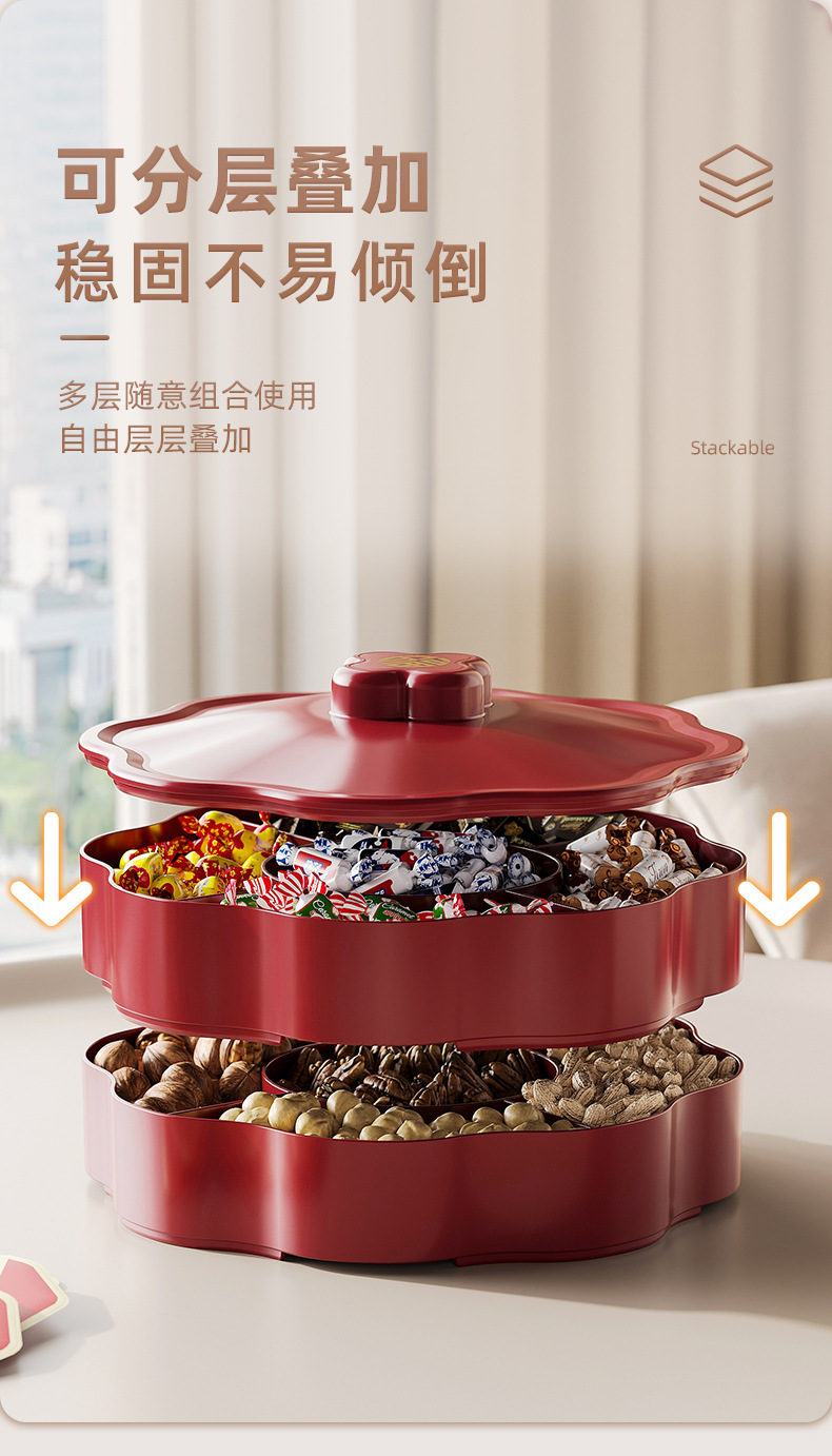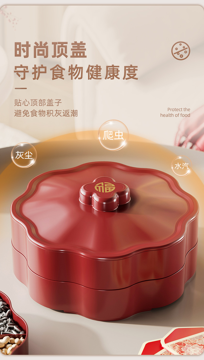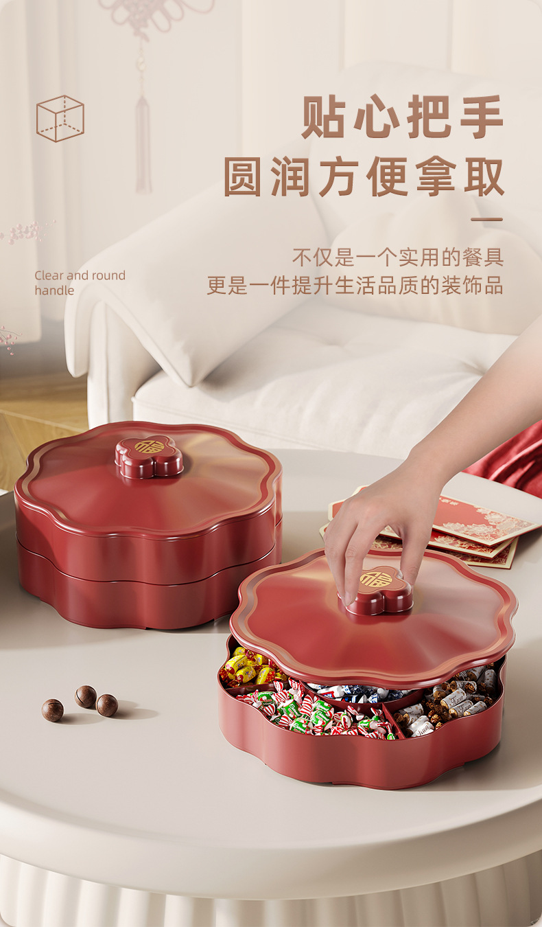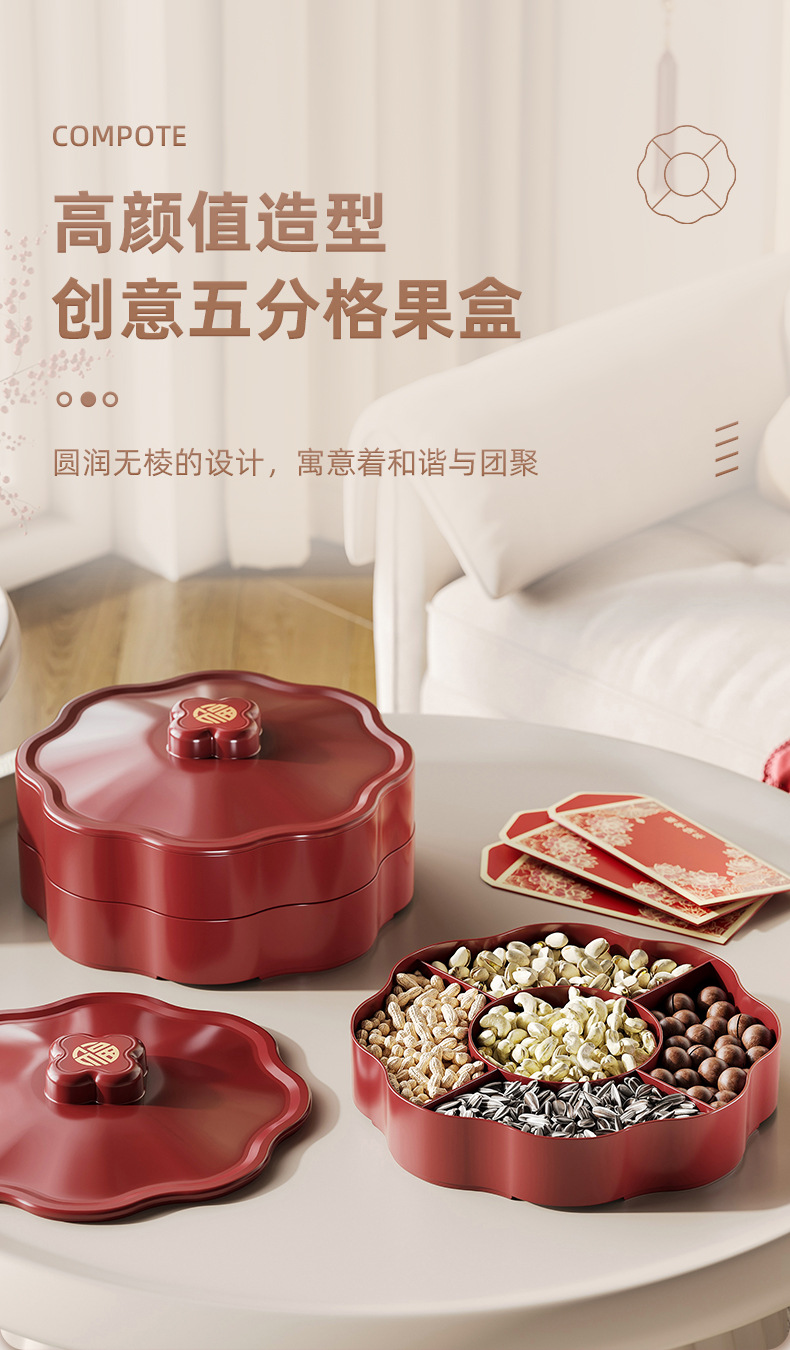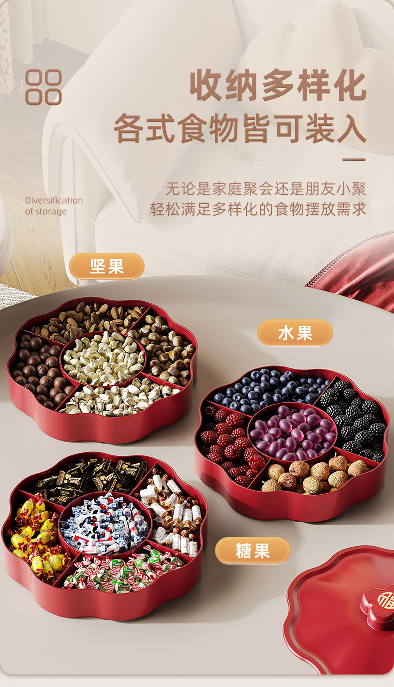 Перемещение в новое жилье, использование коробки для сухофруктов в качестве домашней утвари, празднование Нового года, красное свадебное торжество, журнальный столик в гостиной, пылезащитные отделения для конфет и закусок.