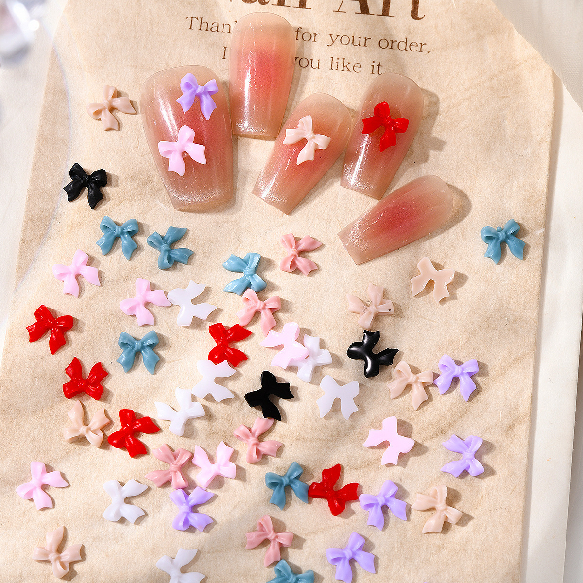 Маникюрные украшения смешанная сетка красный мини-маленький бант дрейфующая трехмерная смола-бабочка трансграничные украшения ногтей
