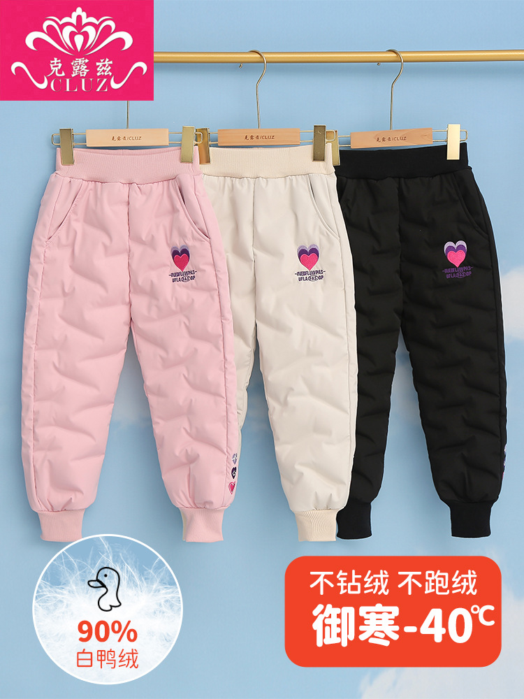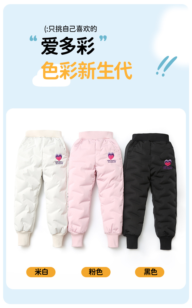 Детские пуховые брюки Детская детская одежда зимой водонепроницаемый средний ребенок утолщенные теплые брюки для мужчин и женщин пуховые брюки