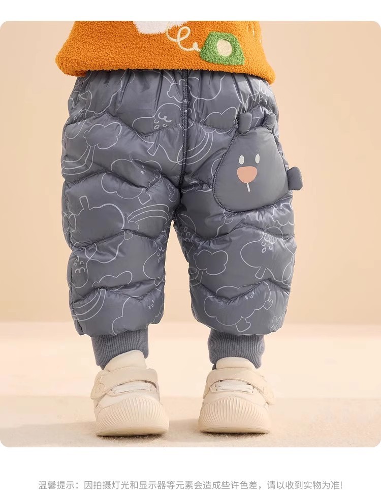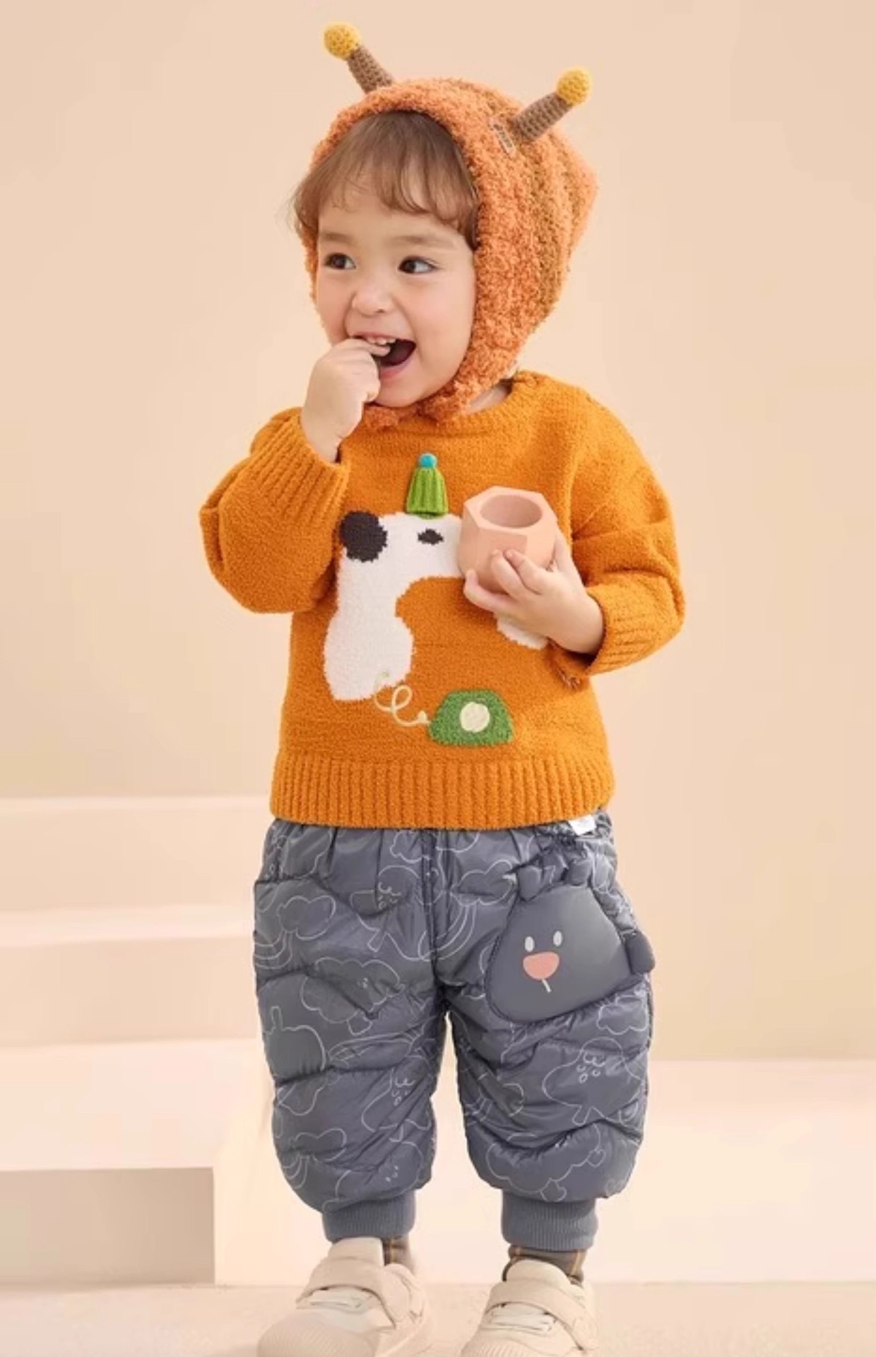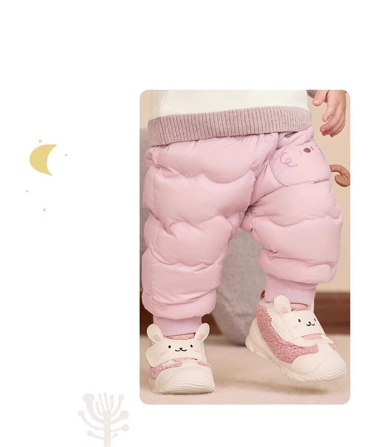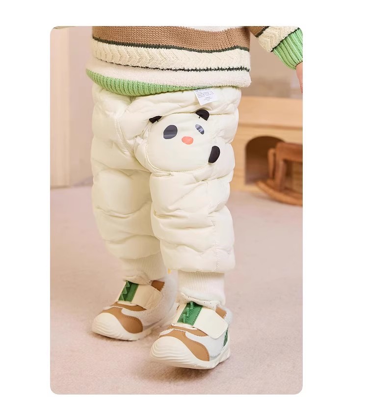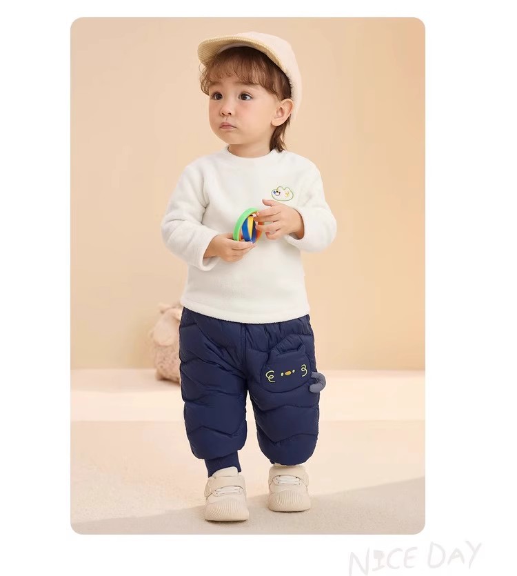 Оптовая продажа детской одежды: утепленные штаны с высокой талией для малышей на осень-зиму 2025 года, стильная и теплая верхняя одежда для мальчиков и девочек, защищающая живот.
