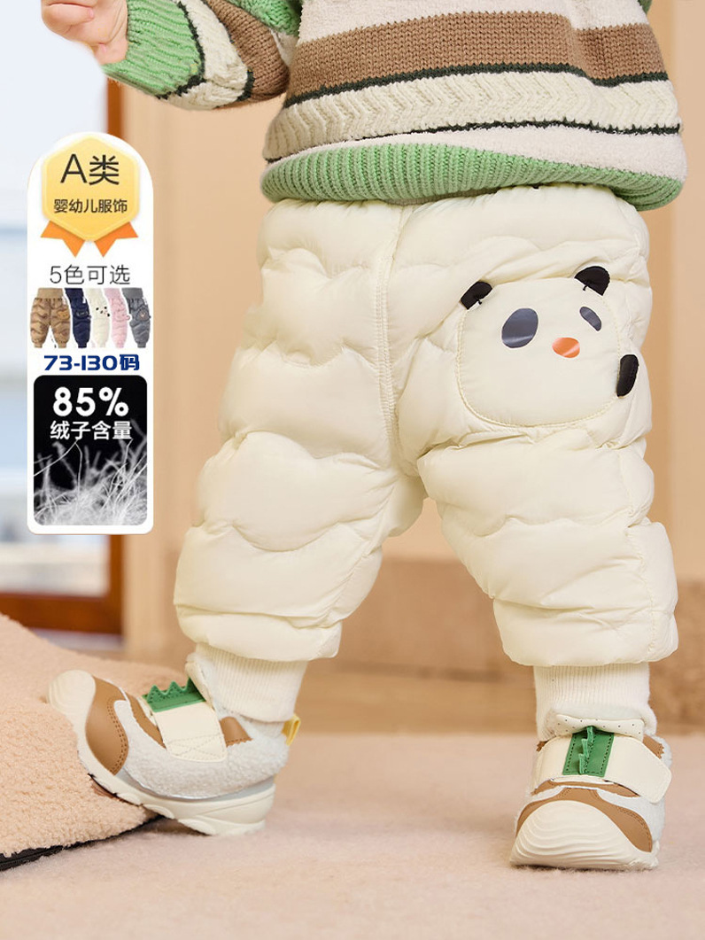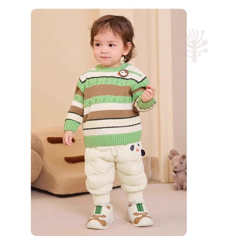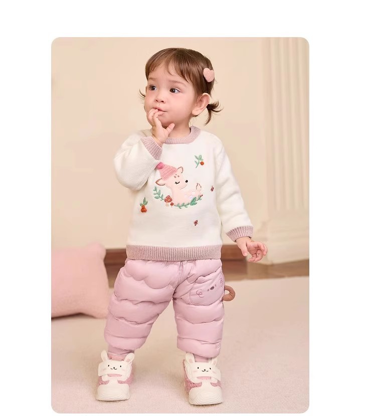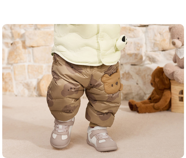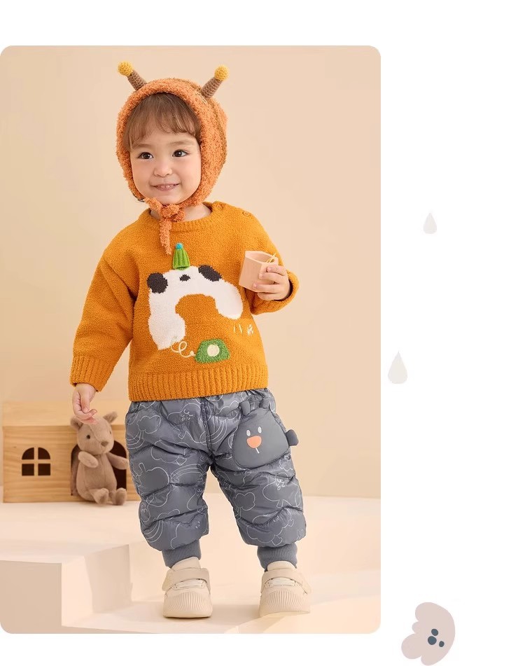 Оптовая продажа детской одежды: утепленные штаны с высокой талией для малышей на осень-зиму 2025 года, стильная и теплая верхняя одежда для мальчиков и девочек, защищающая живот.