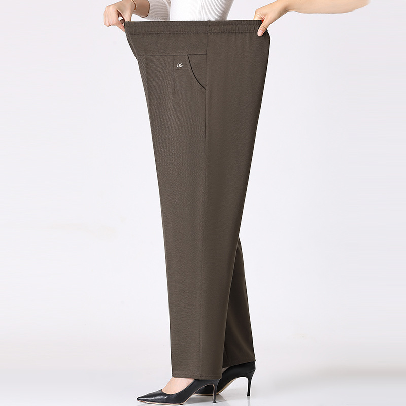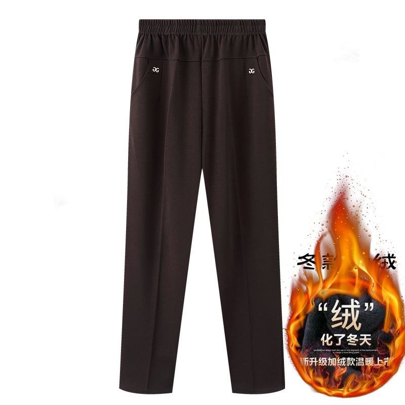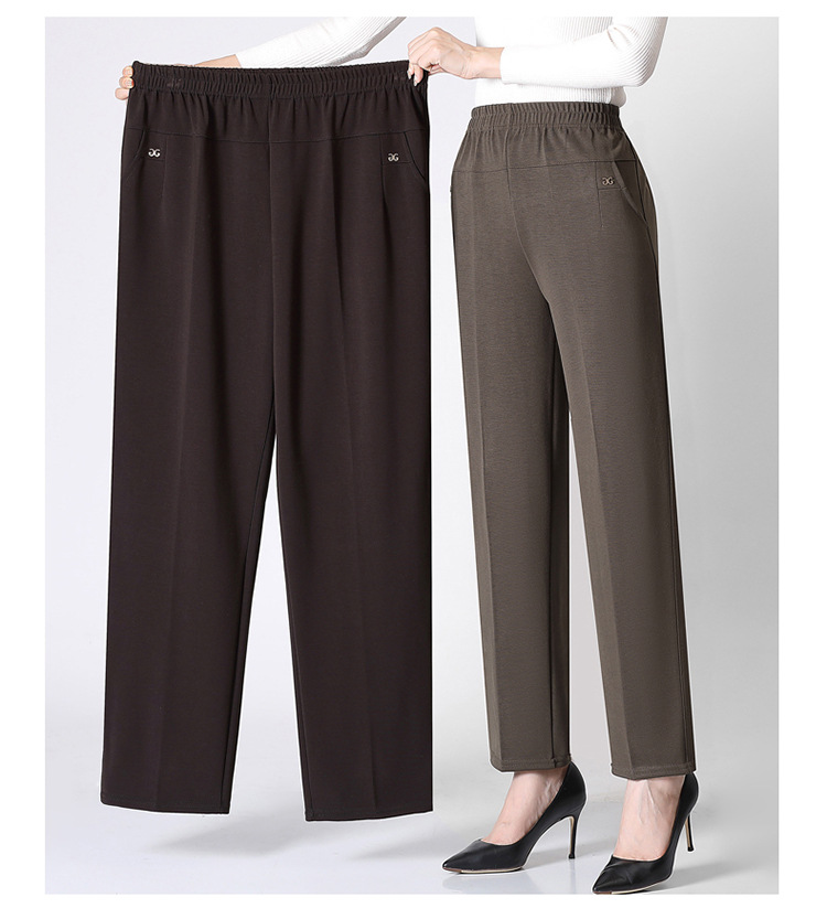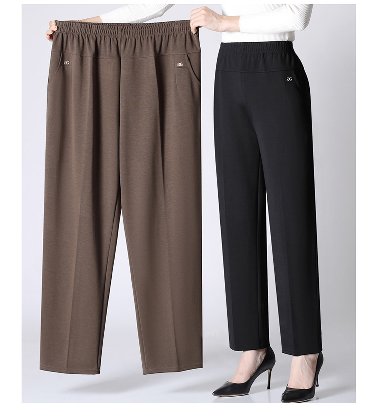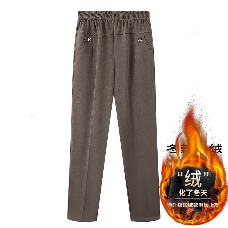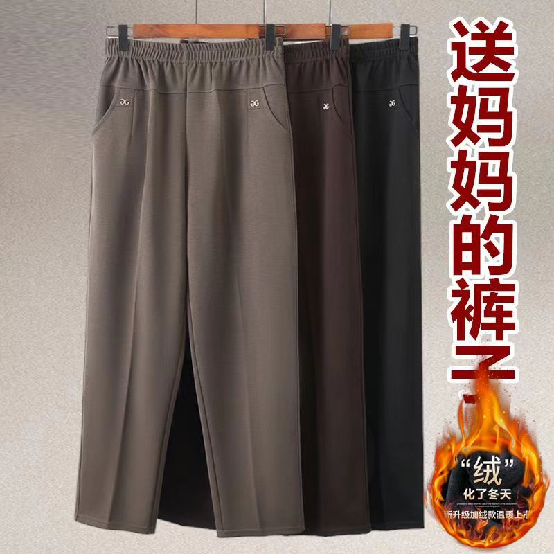Толстые мамы брюки осенние и зимние модели носить с высокой талией и удобными эластыми талией прямые брюки плюс бархатные женские брюки среднего и пожилого возраста