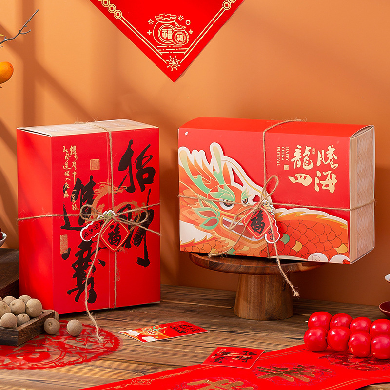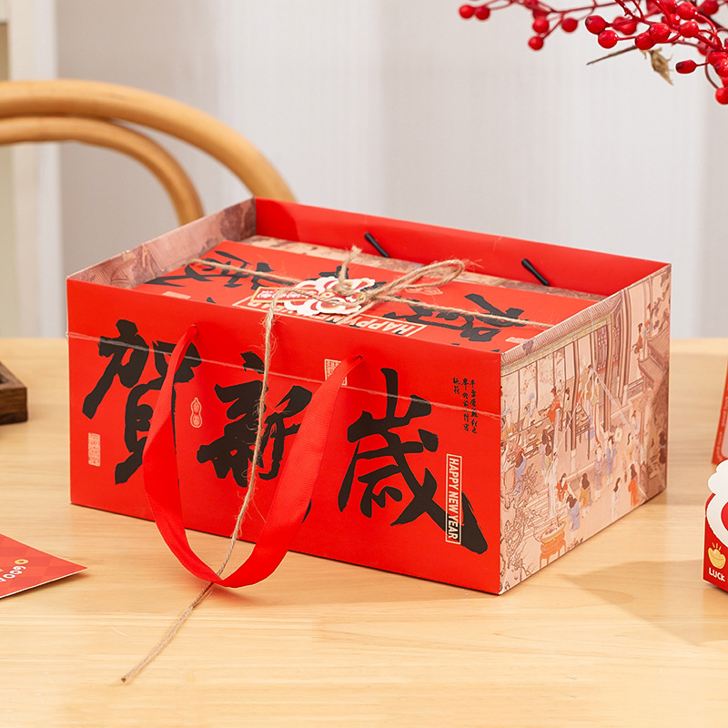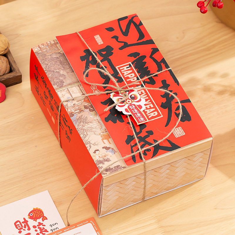 Подарочная коробка из имитации бамбука с Новым годом (включая сумочку); Имитация бамбукового плетения на удачу и сокровища (включая сумочку)