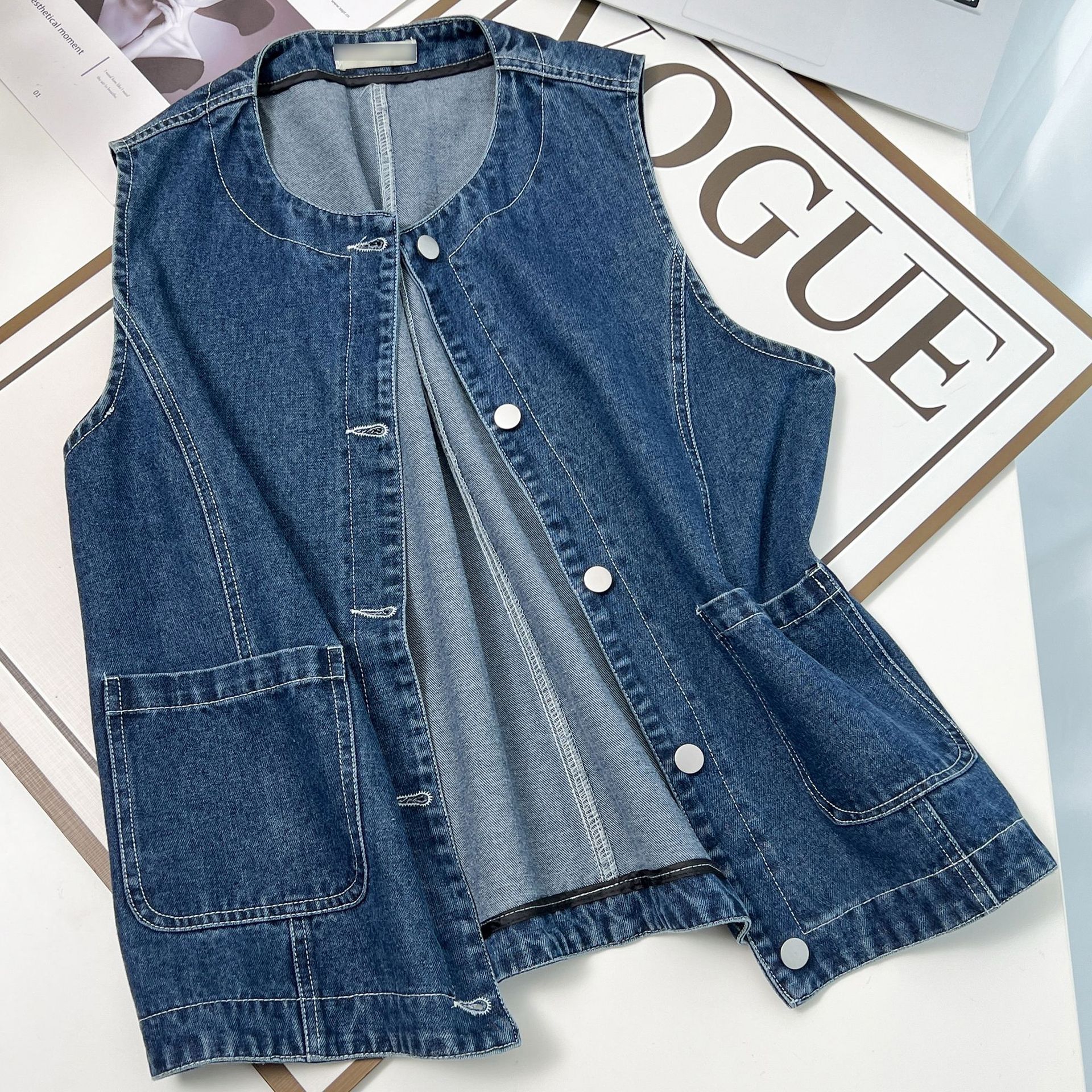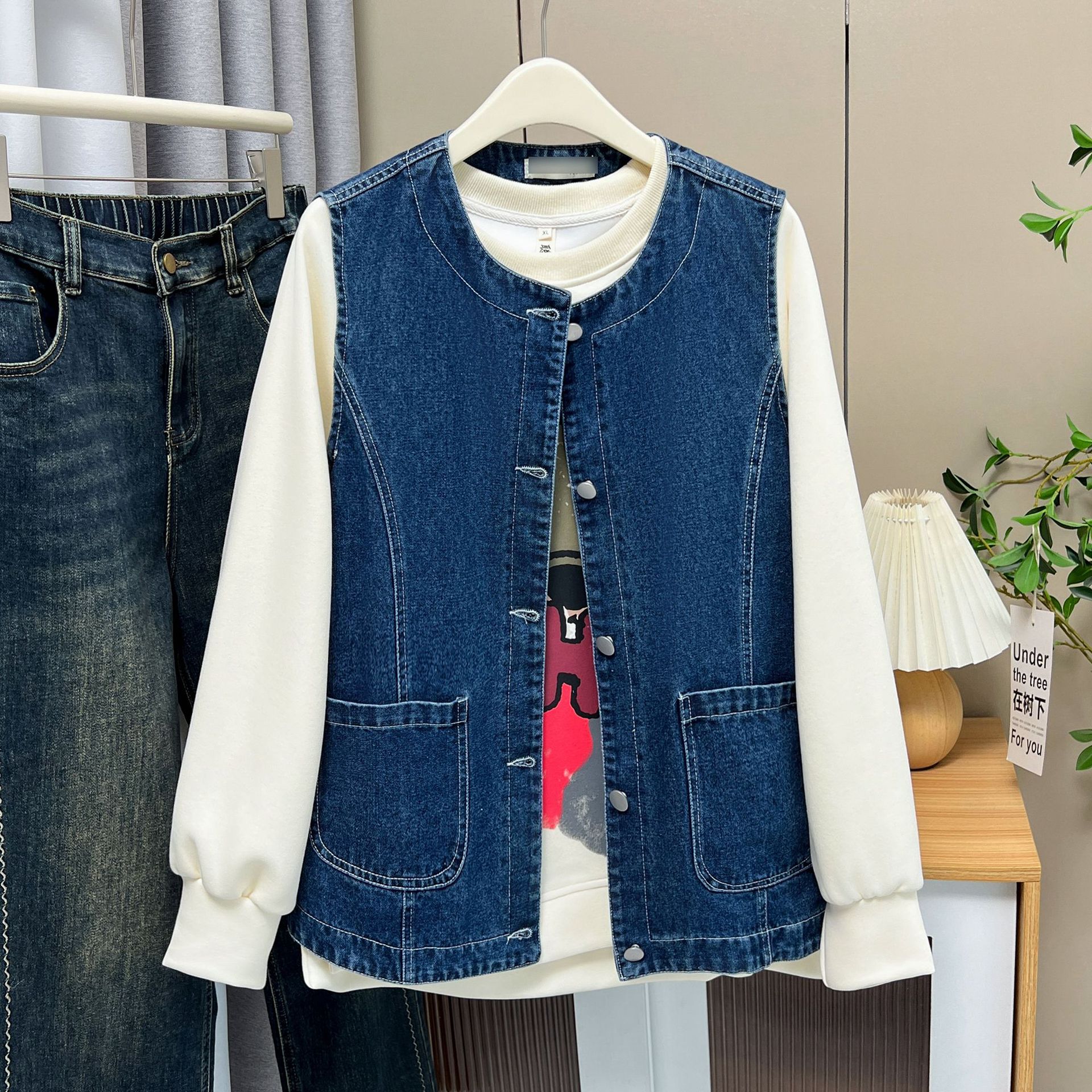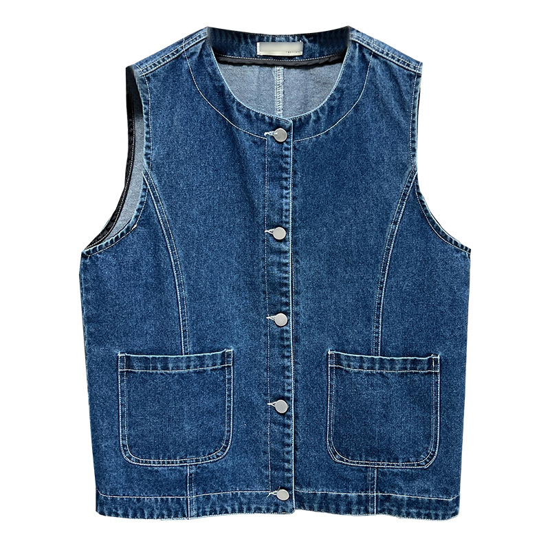 Осенний новый большой размер женский 200 фунтов дикий джинсовый жилет толстый MM повседневный круглый вырез плечо куртка 5138