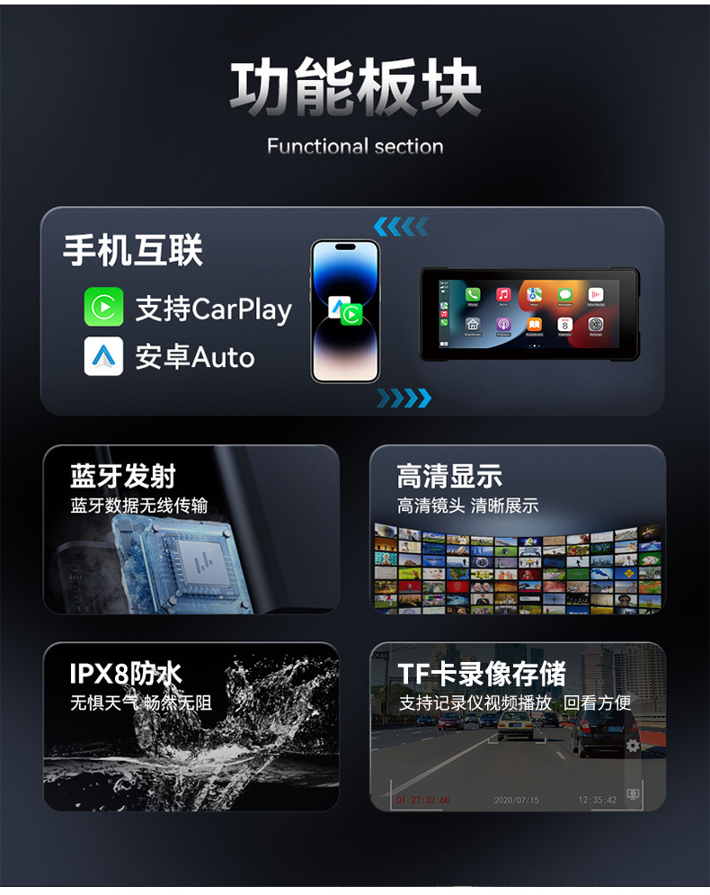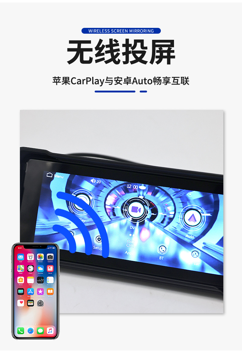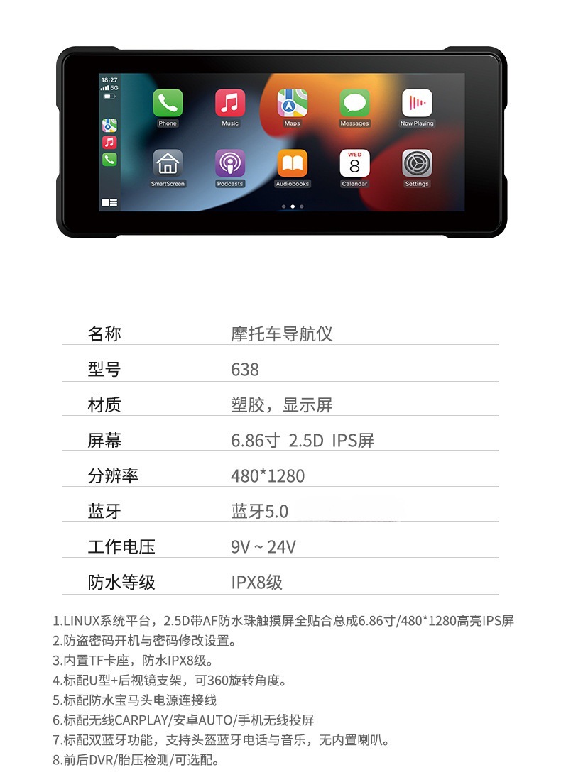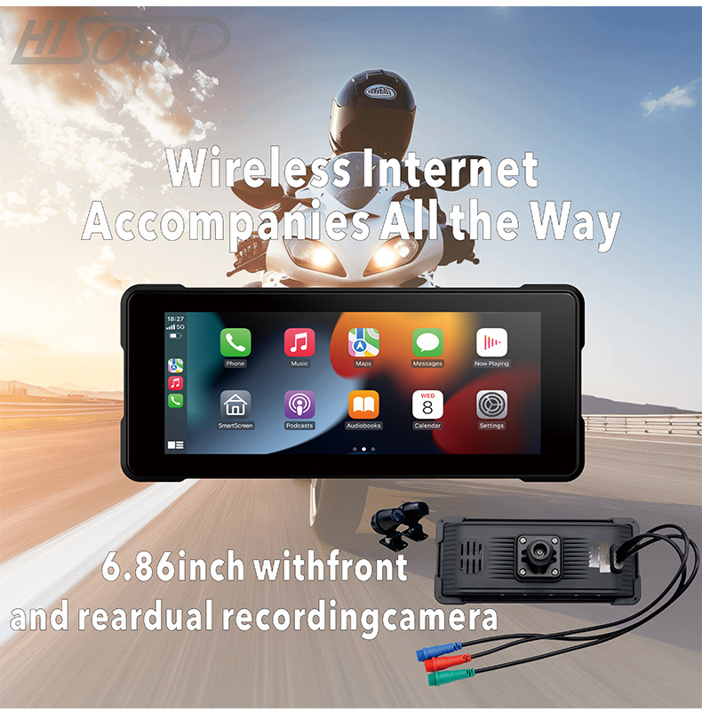 6,86-дюймовый мотоцикл локомотив тахограф передняя и задняя двойные объективы беспроводной Carplay ночного видения водонепроницаемый