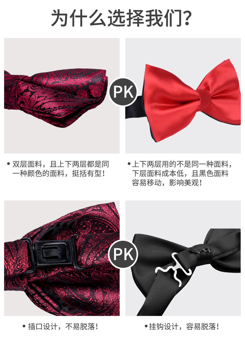 苏州朵拂商贸有限公司是一家专注于男士高端服饰配件的生产与销售企业,核心经营领带、领结、袖扣、领带夹等系列产品,以“厂家直销、品质为先、量大从优”为核心经营理念,为客户提供高性价比的精致配饰解决方案。