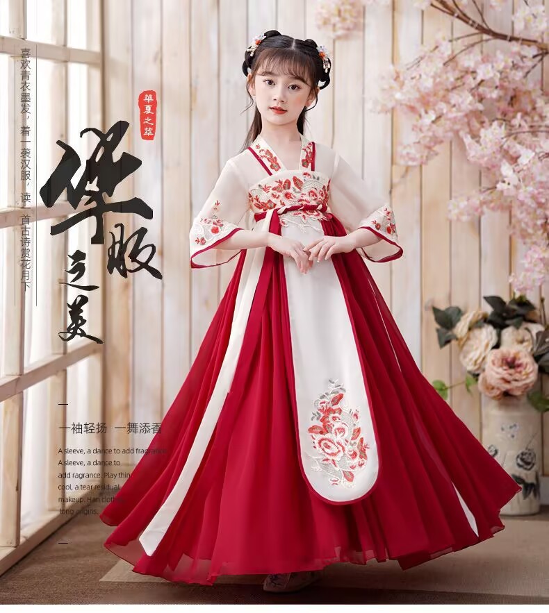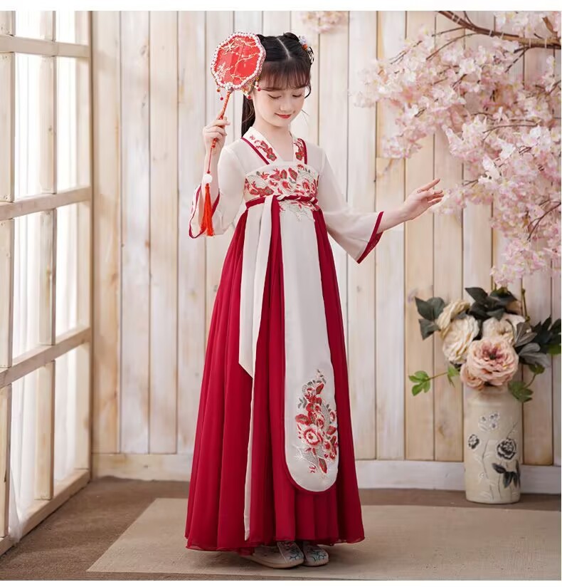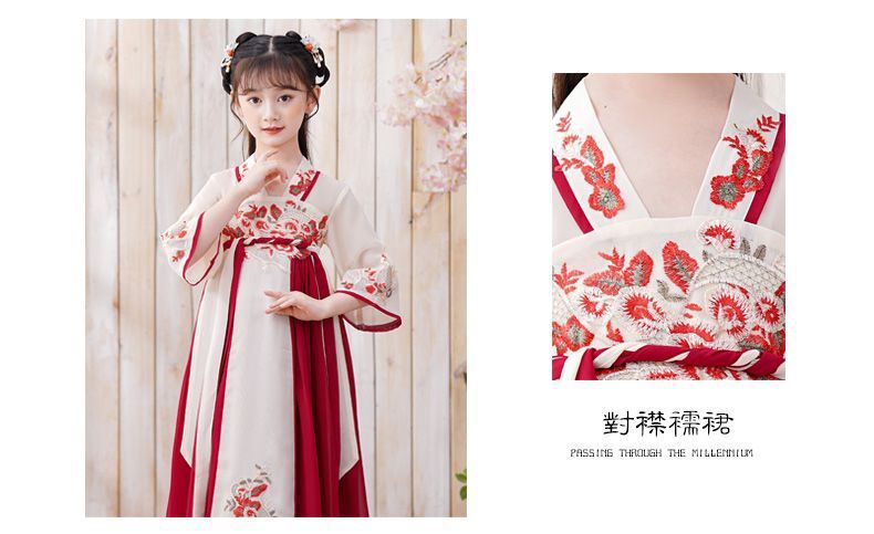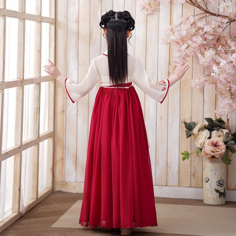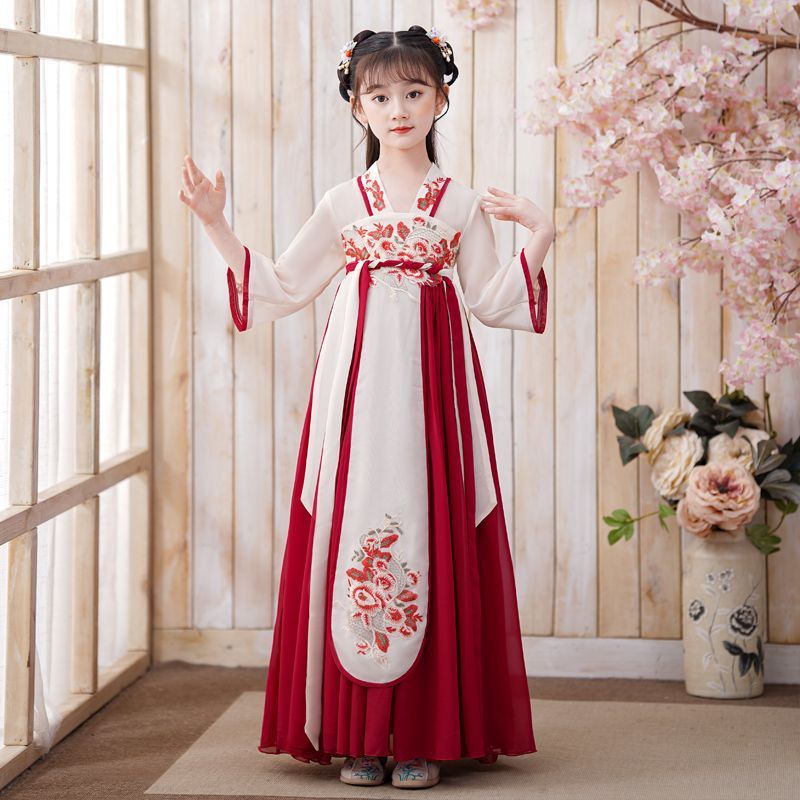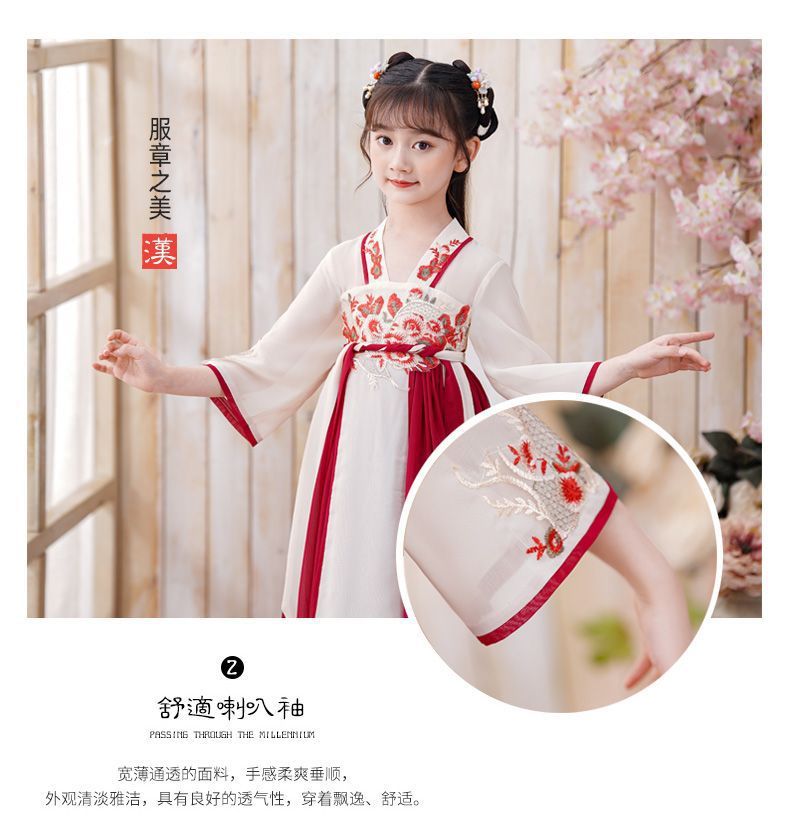 Детский костюм Тан в древнем стиле для девочек, новый летний китайский костюм Ханфу для маленьких девочек, струящееся платье и юбка в древнем стиле.