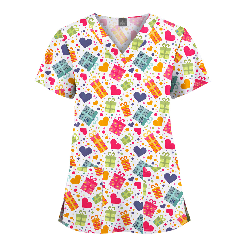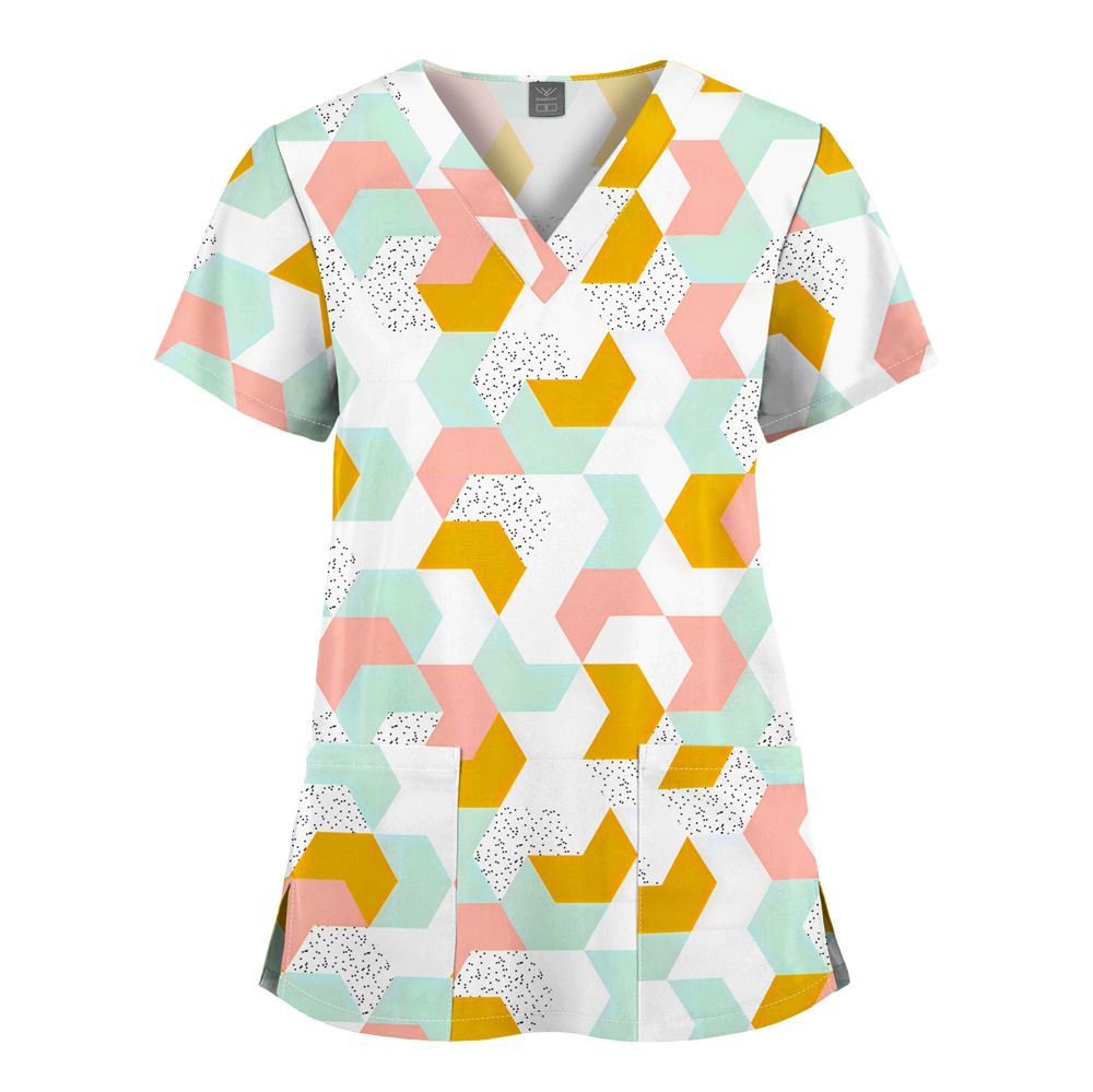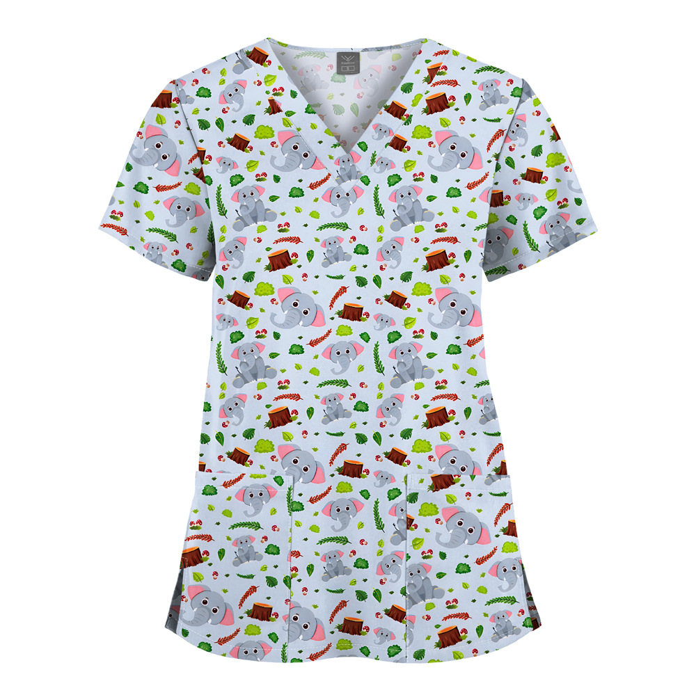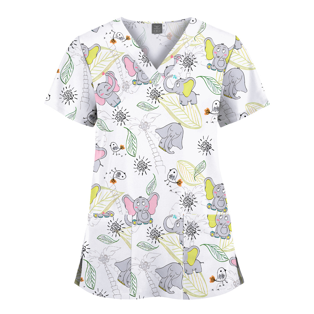 Новые эластичные принты с короткими рукавами блузки медсестры хирургический костюм европейские и американские врачи клиники для мытья рук зубов