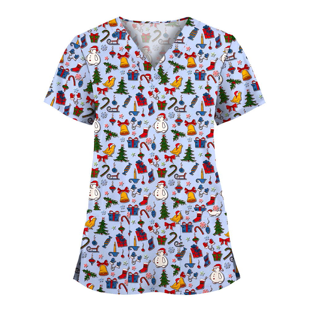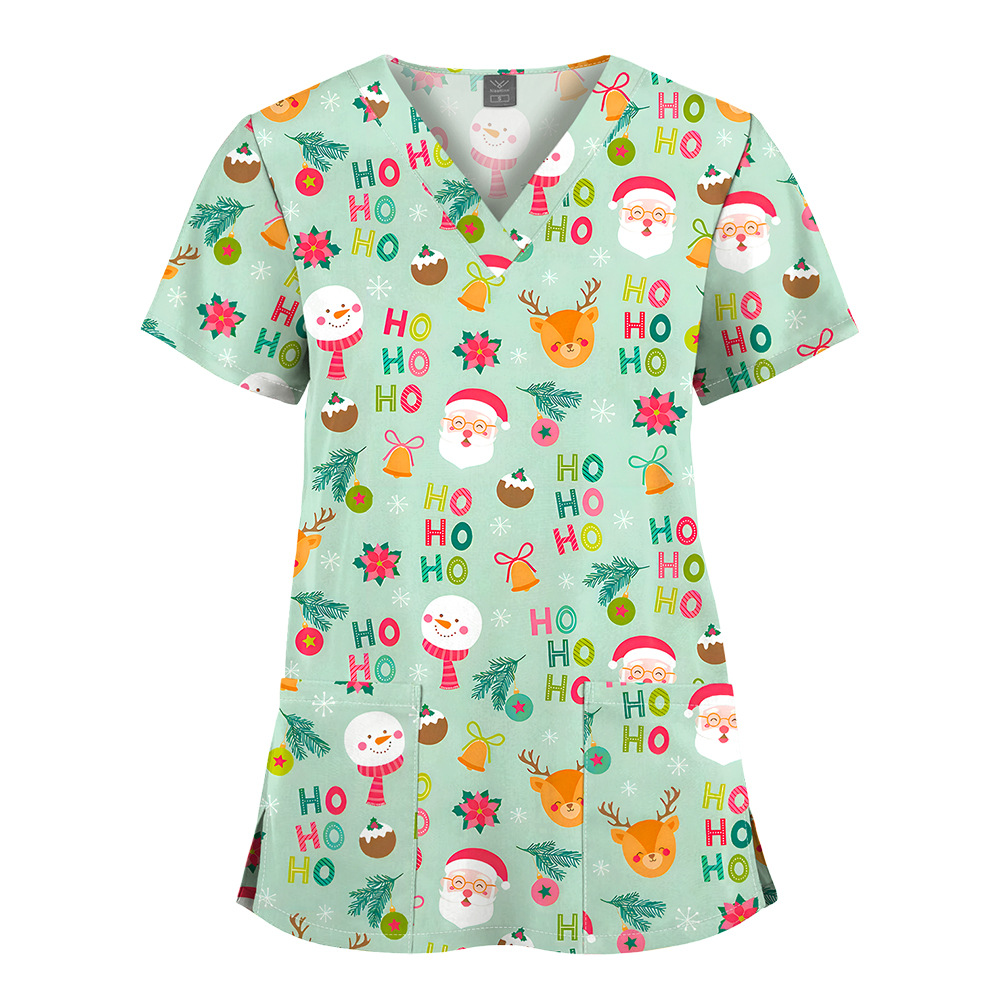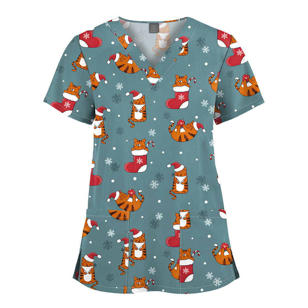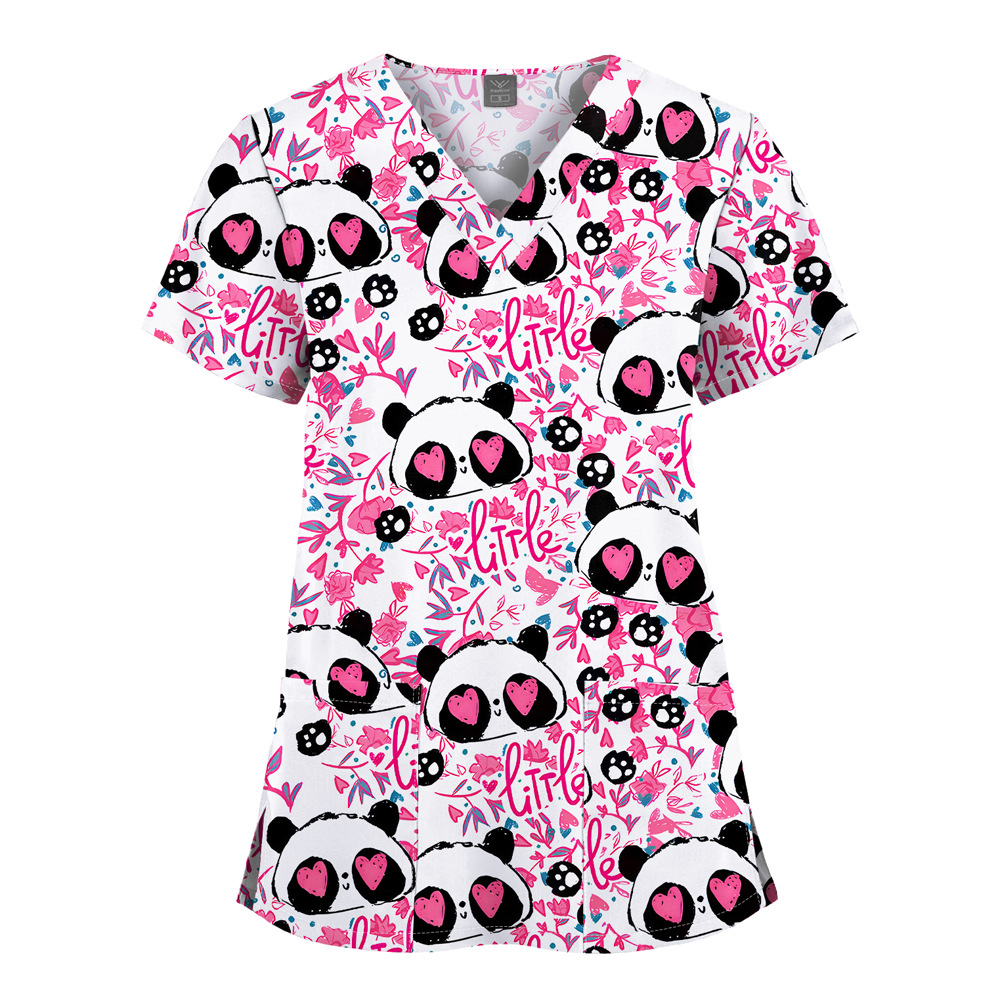 Новые эластичные принты с короткими рукавами блузки медсестры хирургический костюм европейские и американские врачи клиники для мытья рук зубов