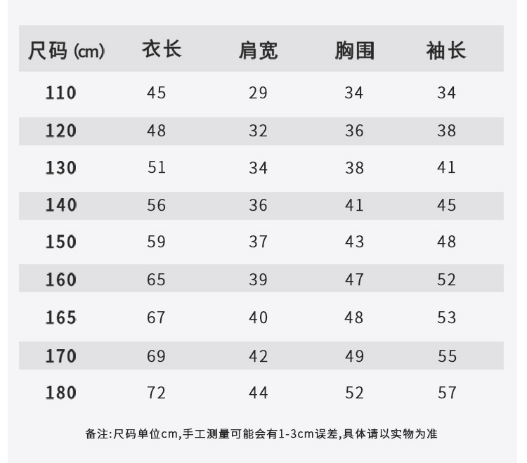 110cm; 120cm; 130cm; 140cm; 150cm; 160cm; 170cm; 180cm
