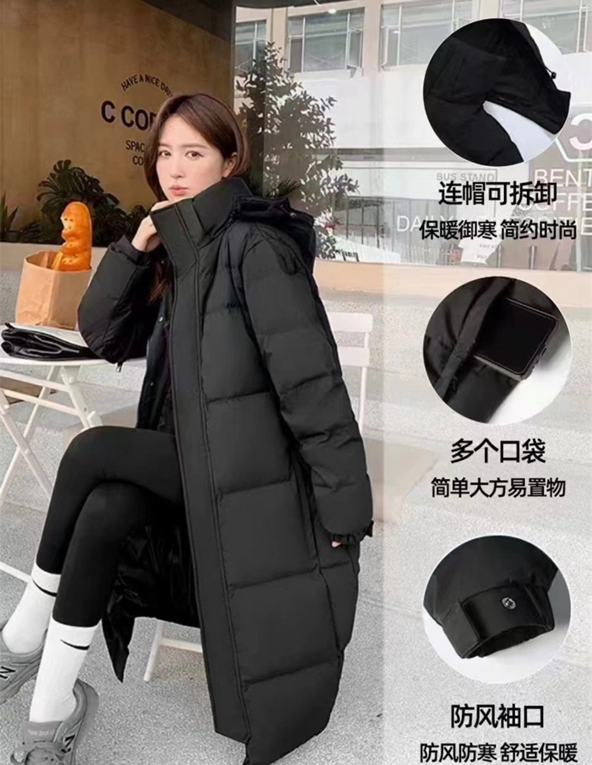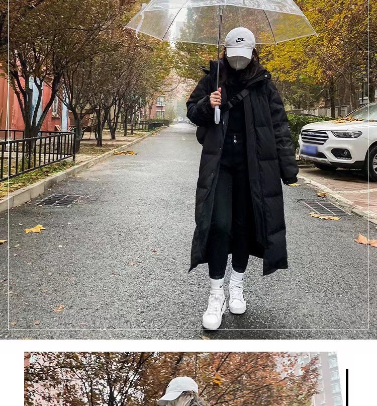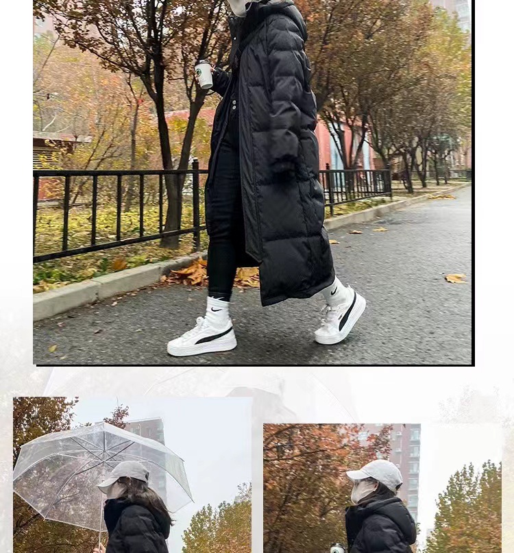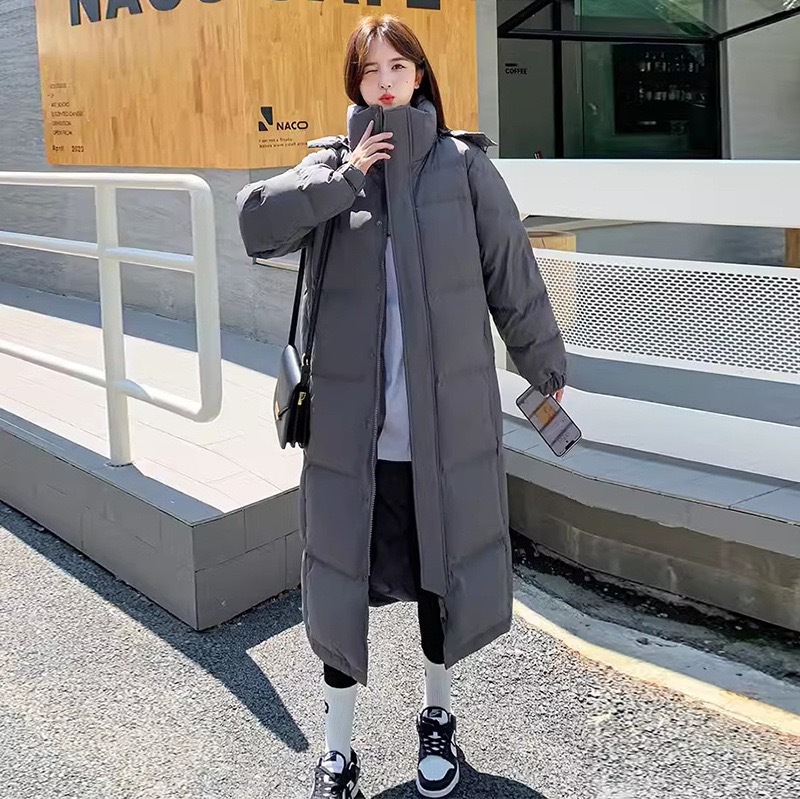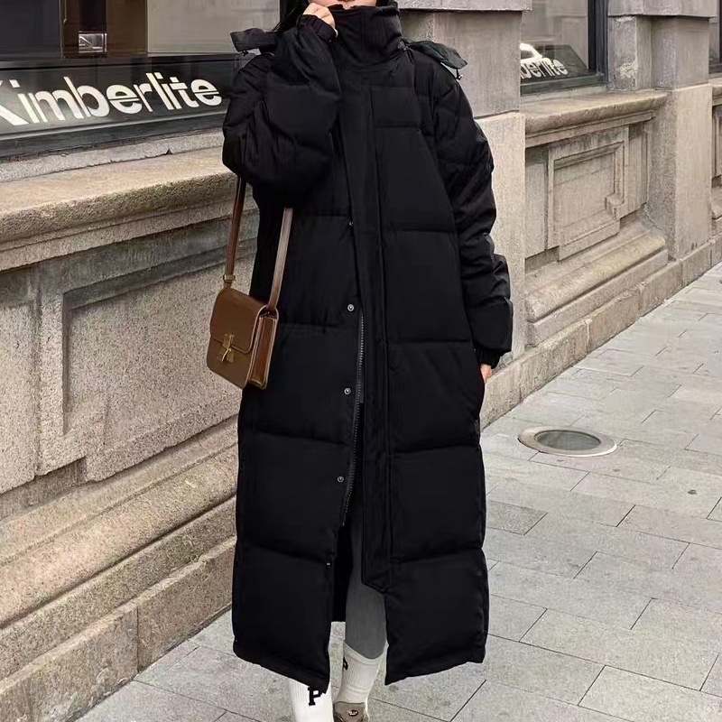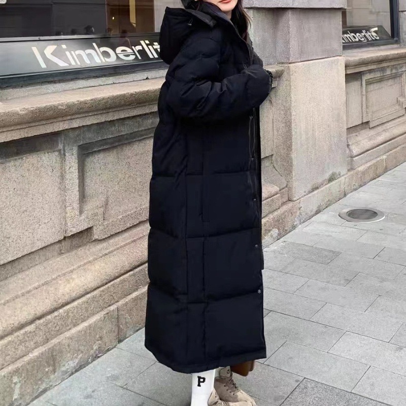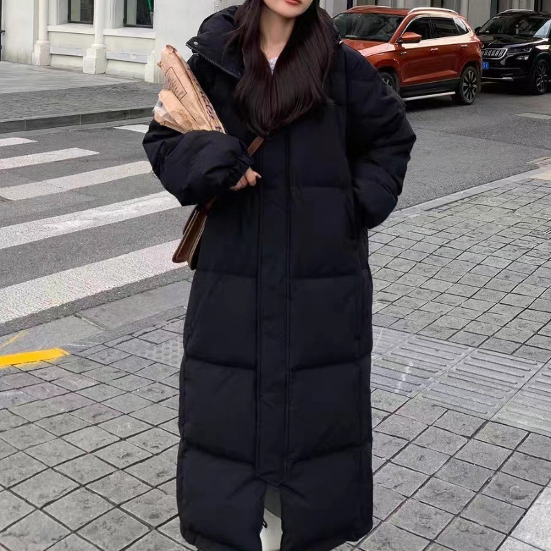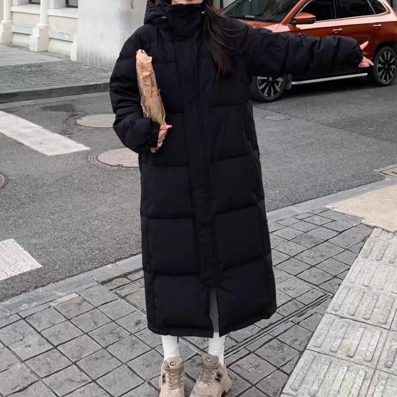 Женская зимняя куртка 2025 года, в стиле школьной пары, удлиненная, свободного кроя, теплая, ветрозащитная, с капюшоном, до колен.