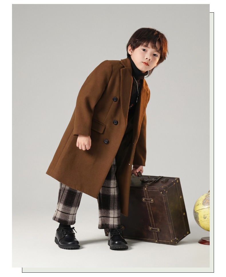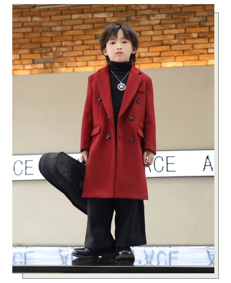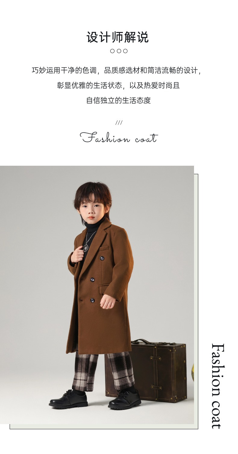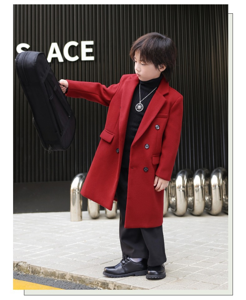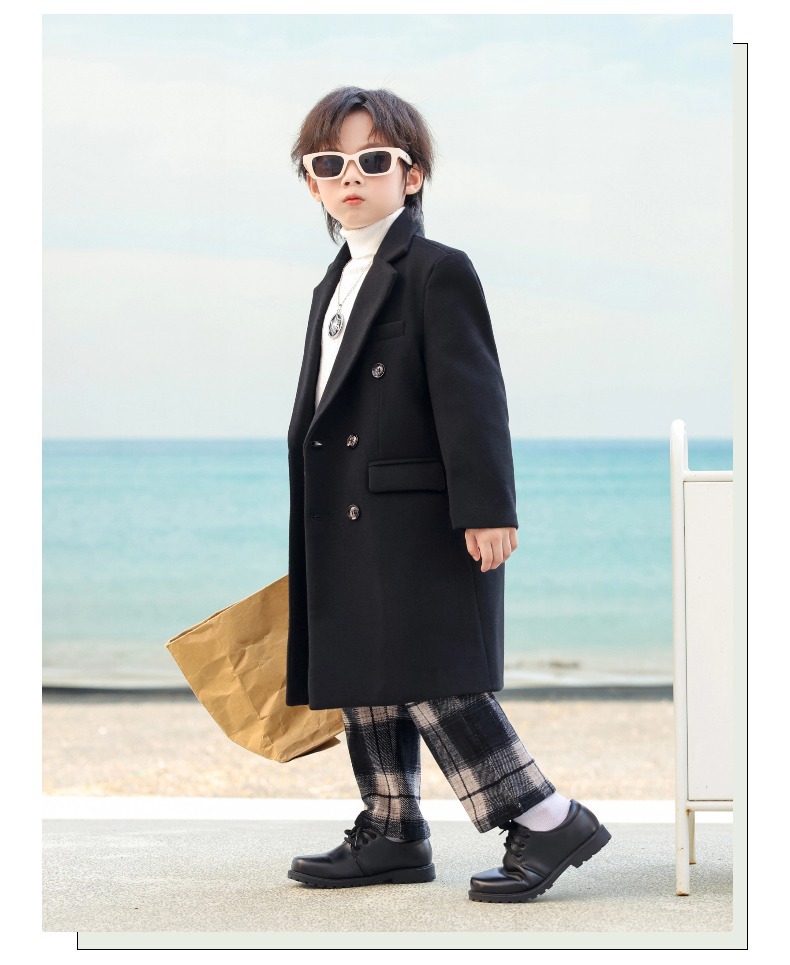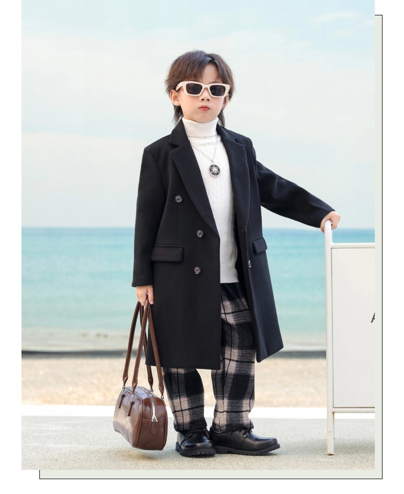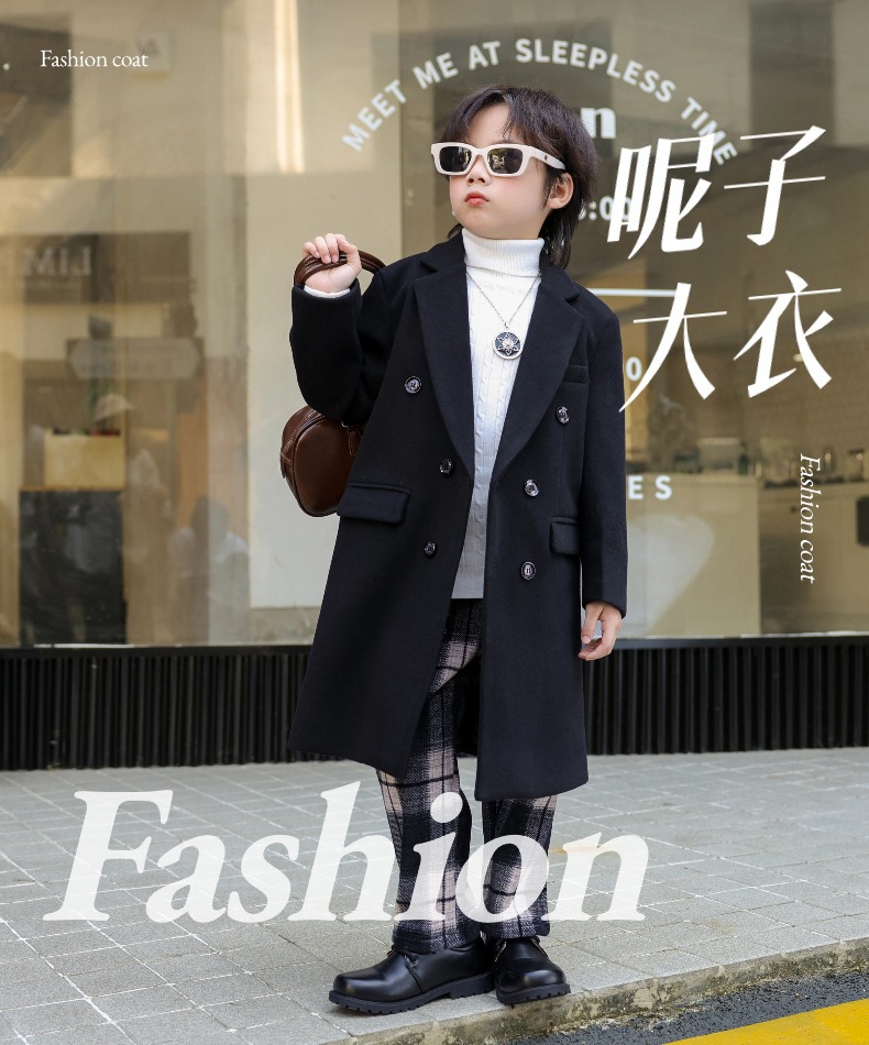 2024 новый осенний мальчик корейская ветровка детская одежда длинный костюм модный фанатский пиджак детская двубортное шерстяное пальто