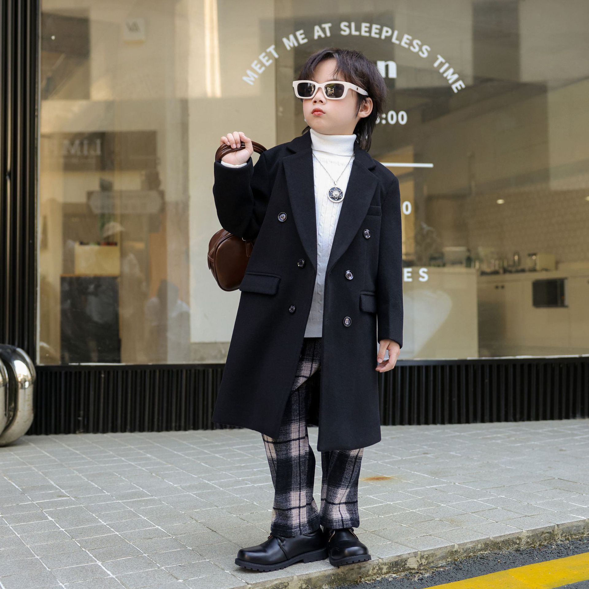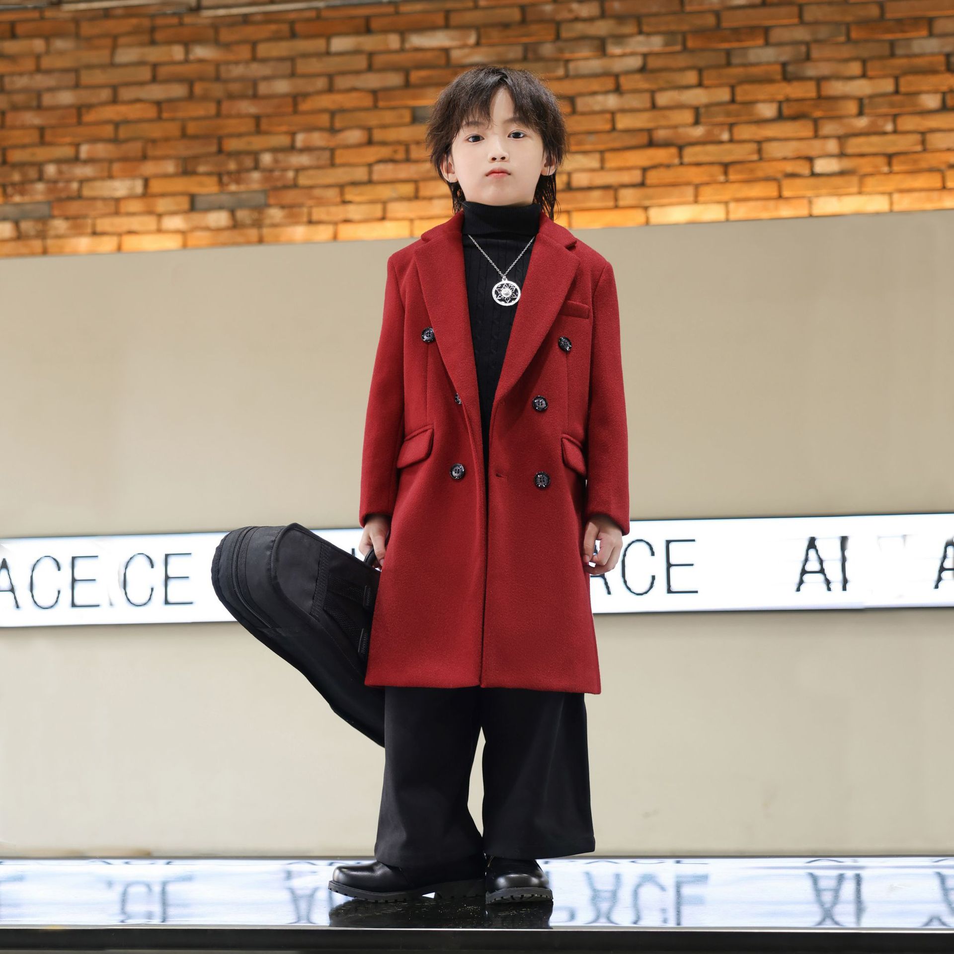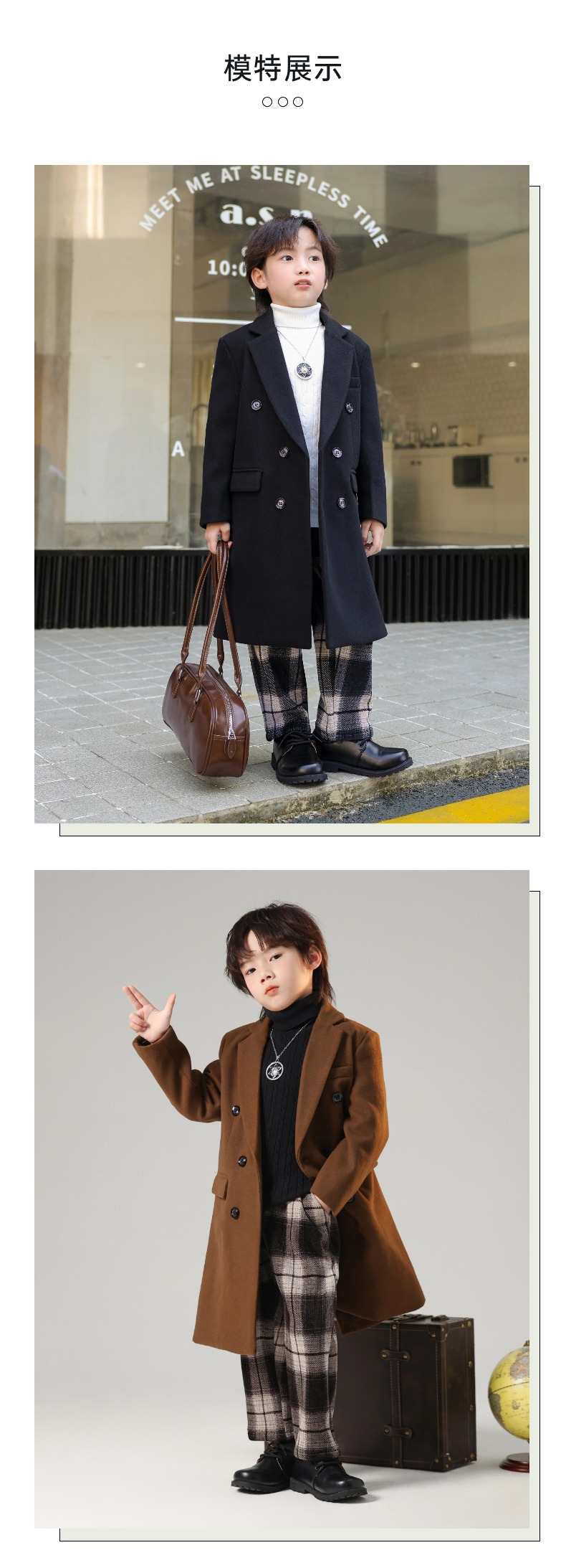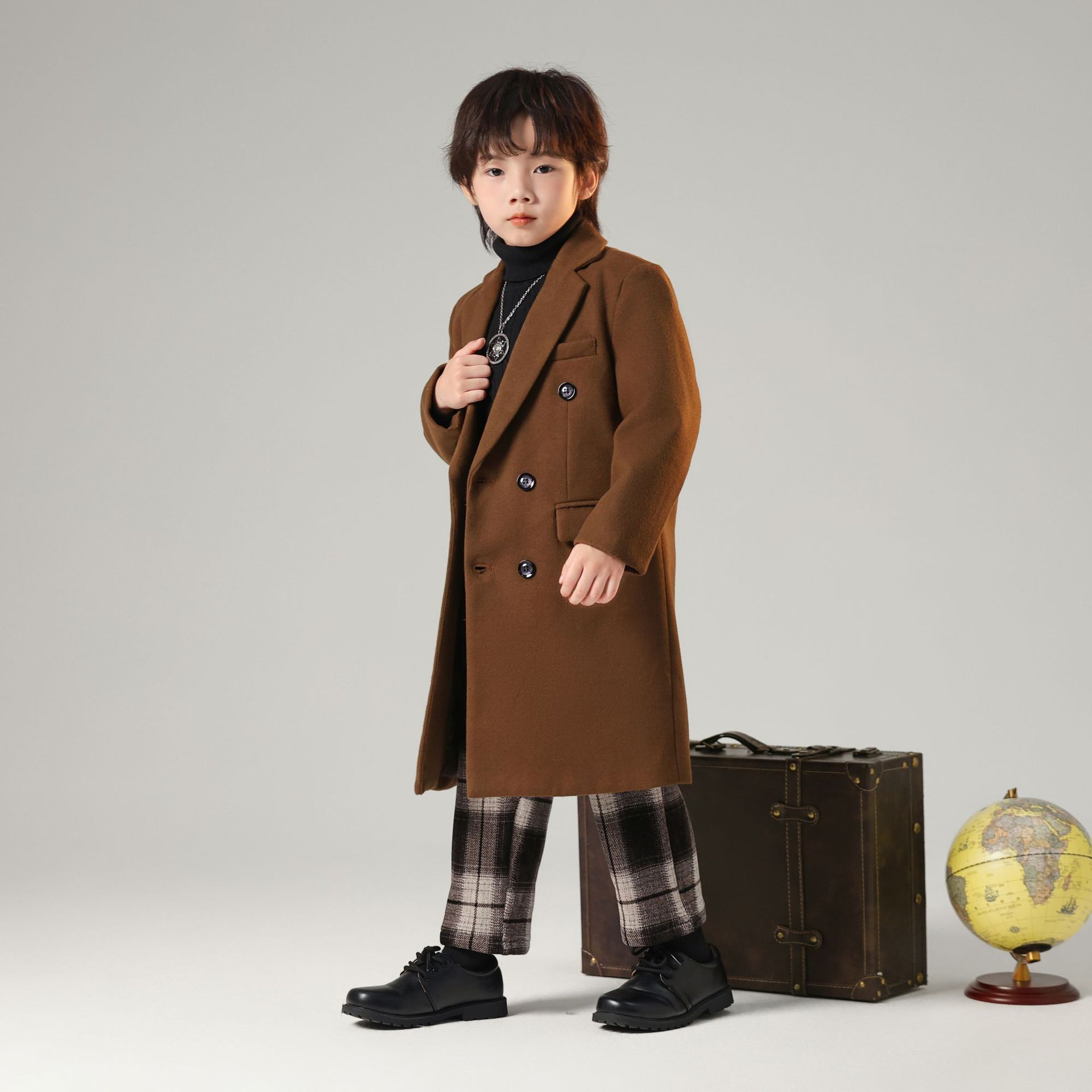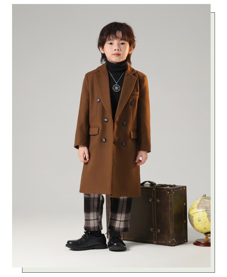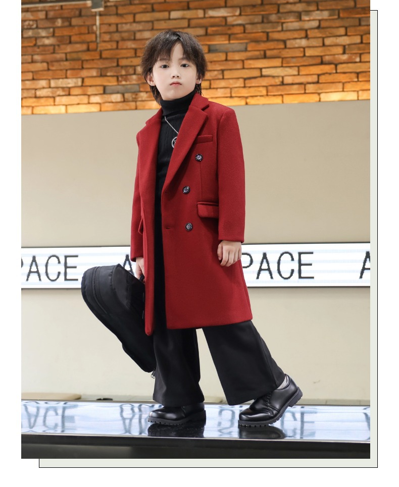 2024 новый осенний мальчик корейская ветровка детская одежда длинный костюм модный фанатский пиджак детская двубортное шерстяное пальто