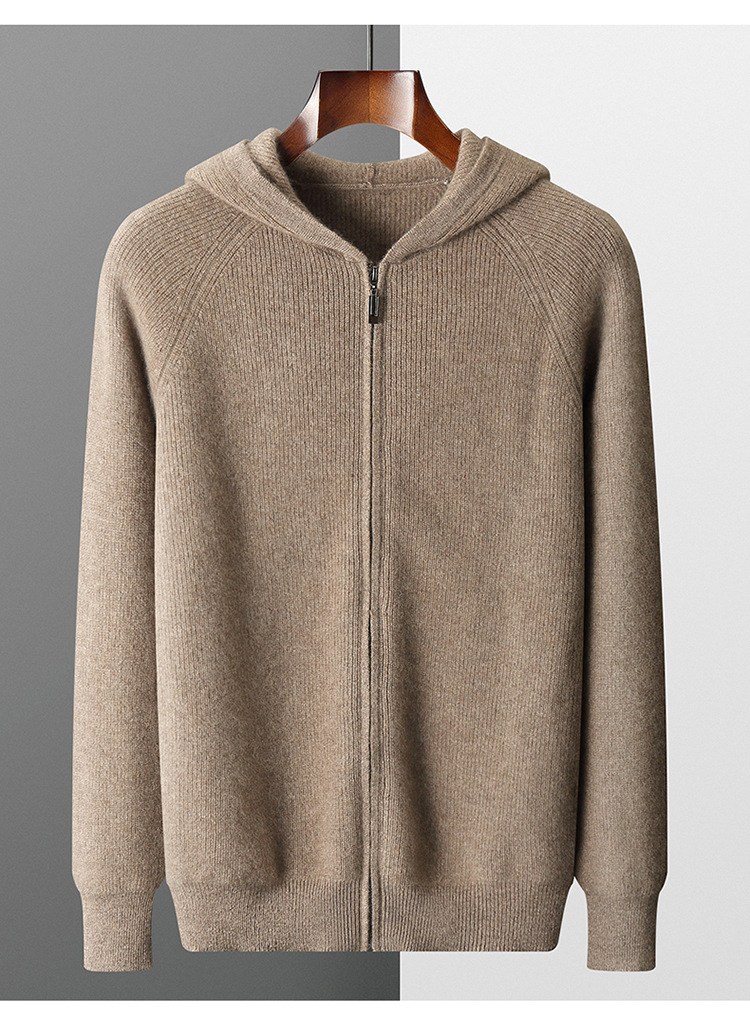 Осенний и зимний новый свитер молодежная куртка с капюшоном толстый свитер бизнес повседневная застежка-молния вязаный шерстяной кардиган мужской
