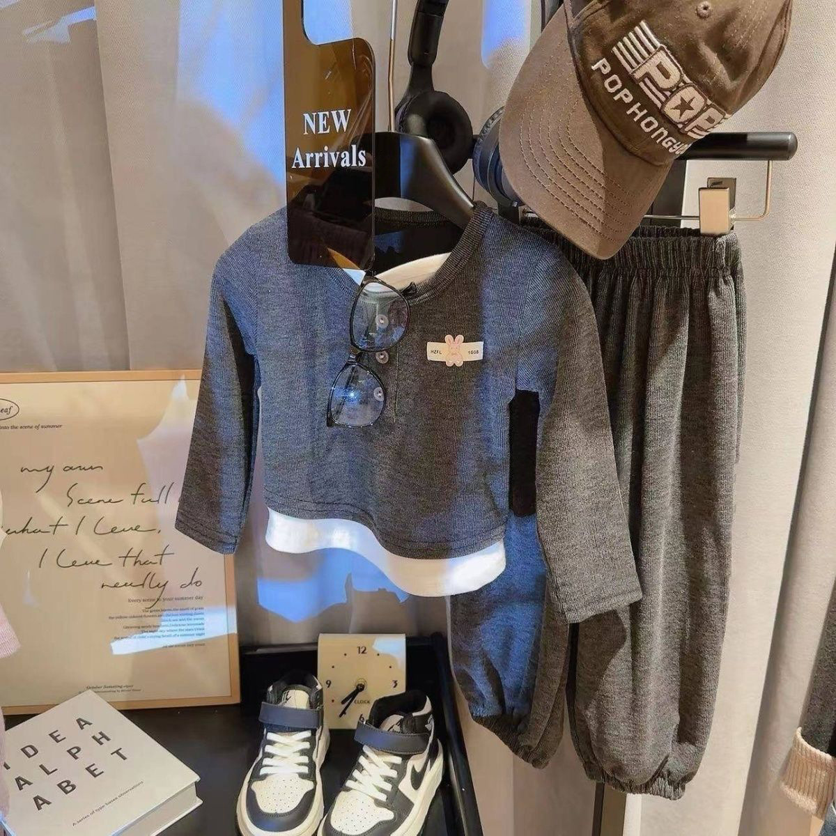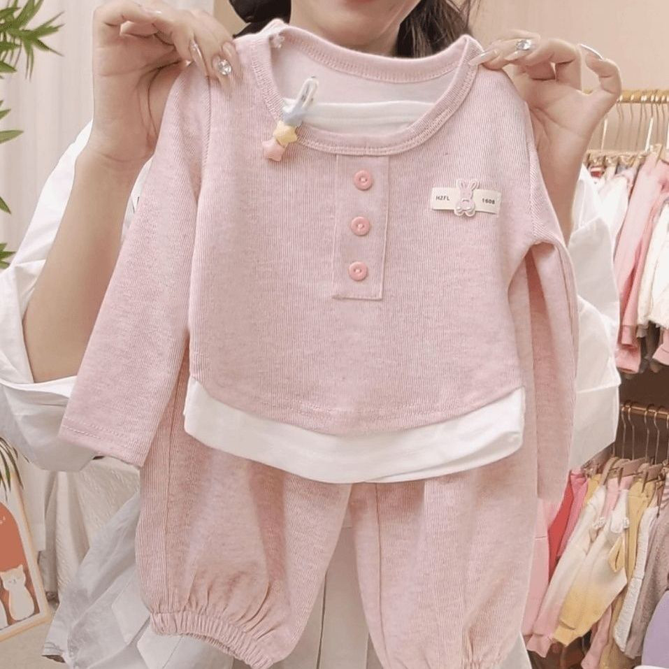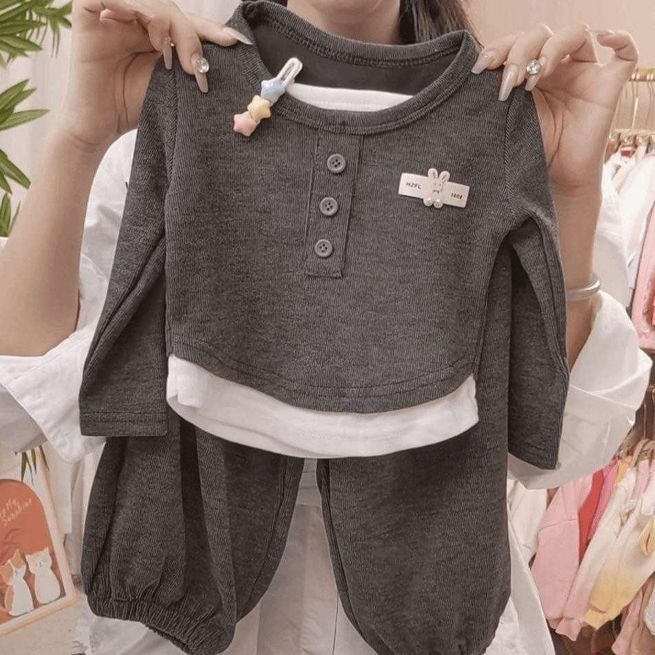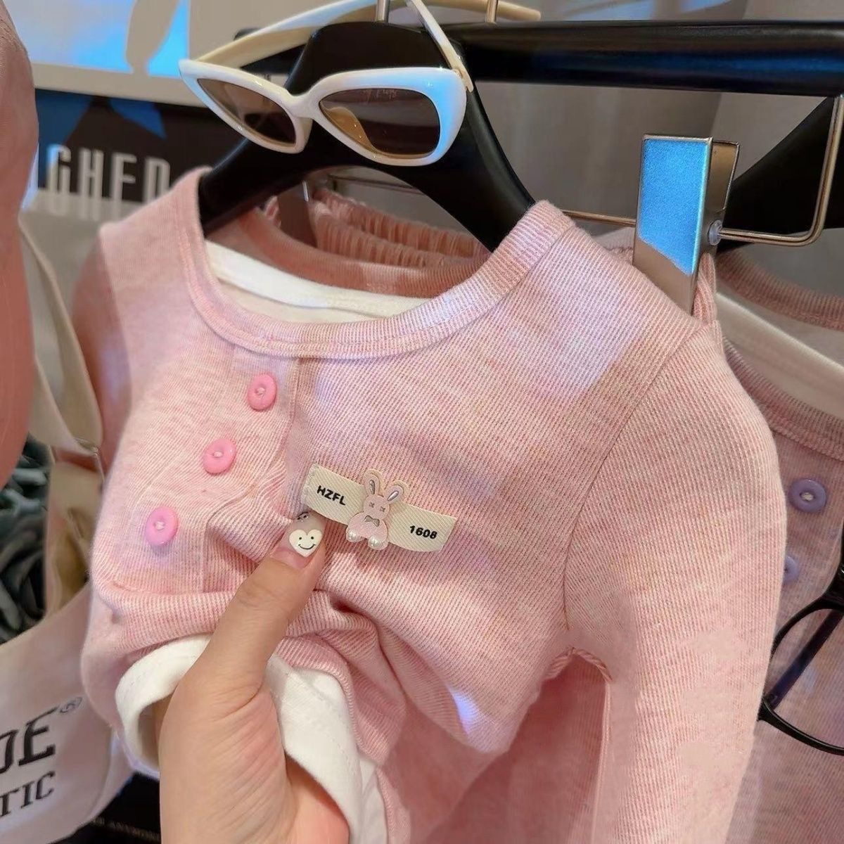 Костюм для девочек 2024 осень новая корейская модная маленькая девочка детская одежда мягкая восковая поддельная две части детских блузок брюки