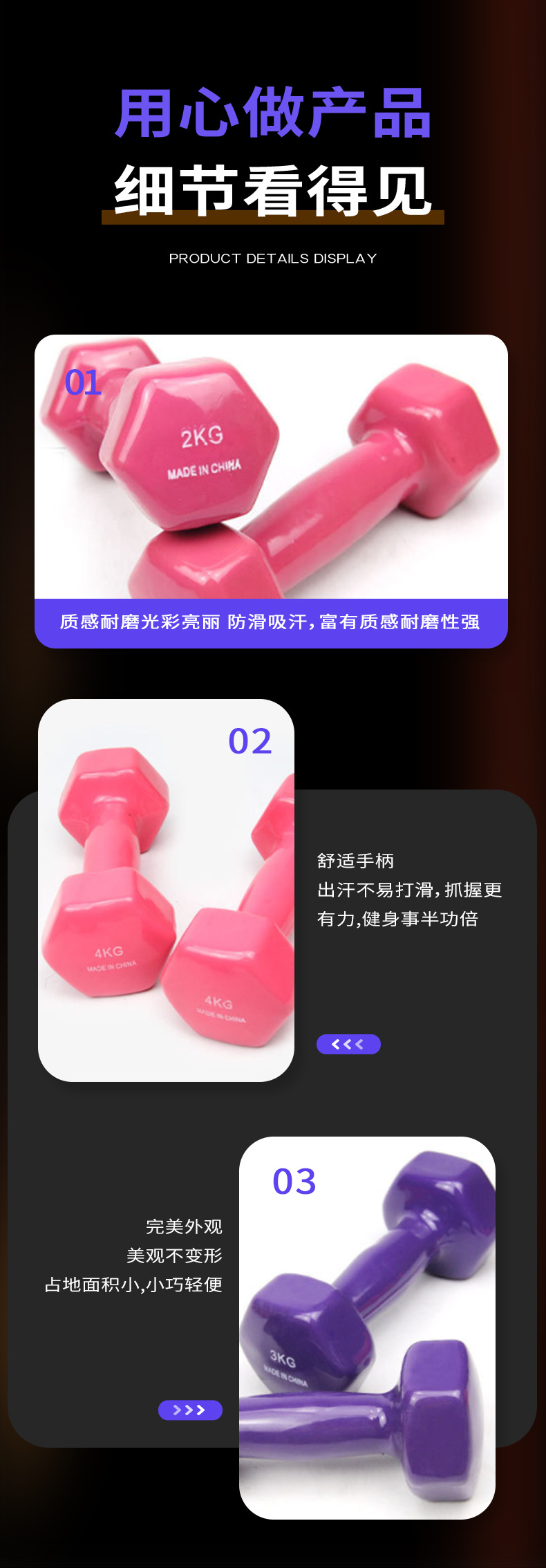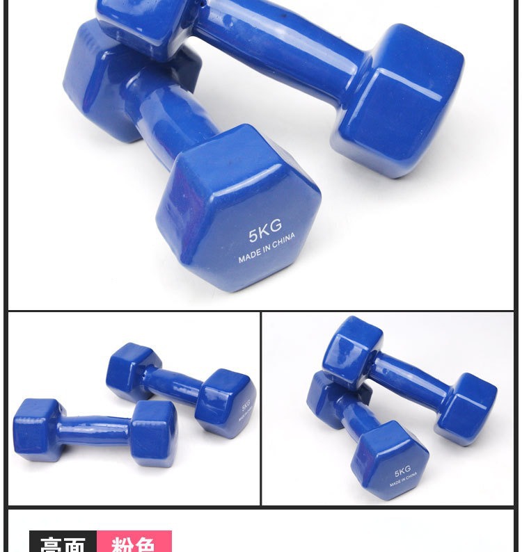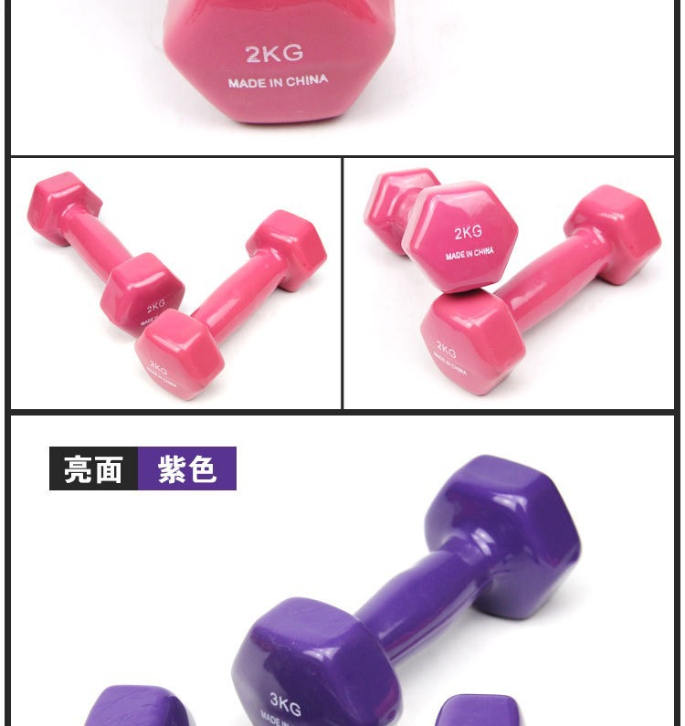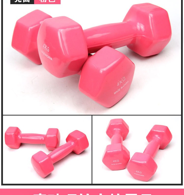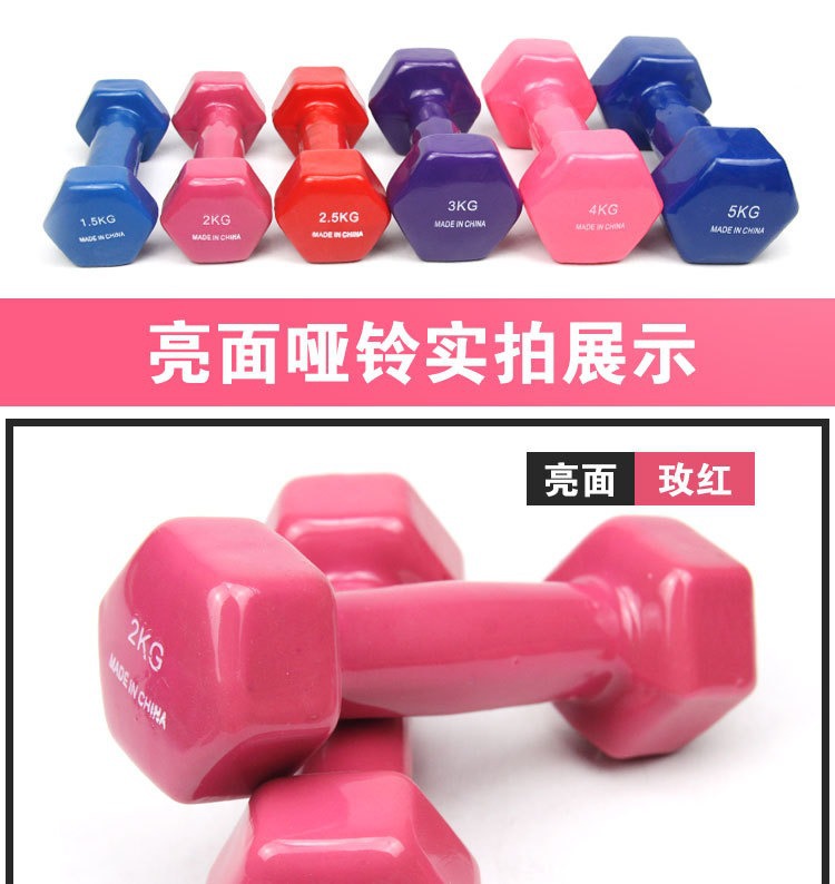 Оптовая продажа гексагональных гантелей с резиновым покрытием для домашней йоги, тренировки рук, цветное глянцевое женское фитнес-оборудование, с пластиковым покрытием
