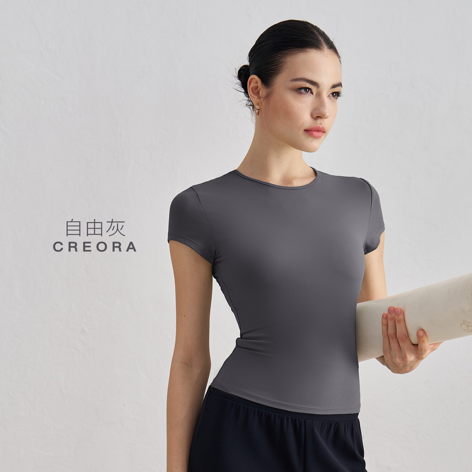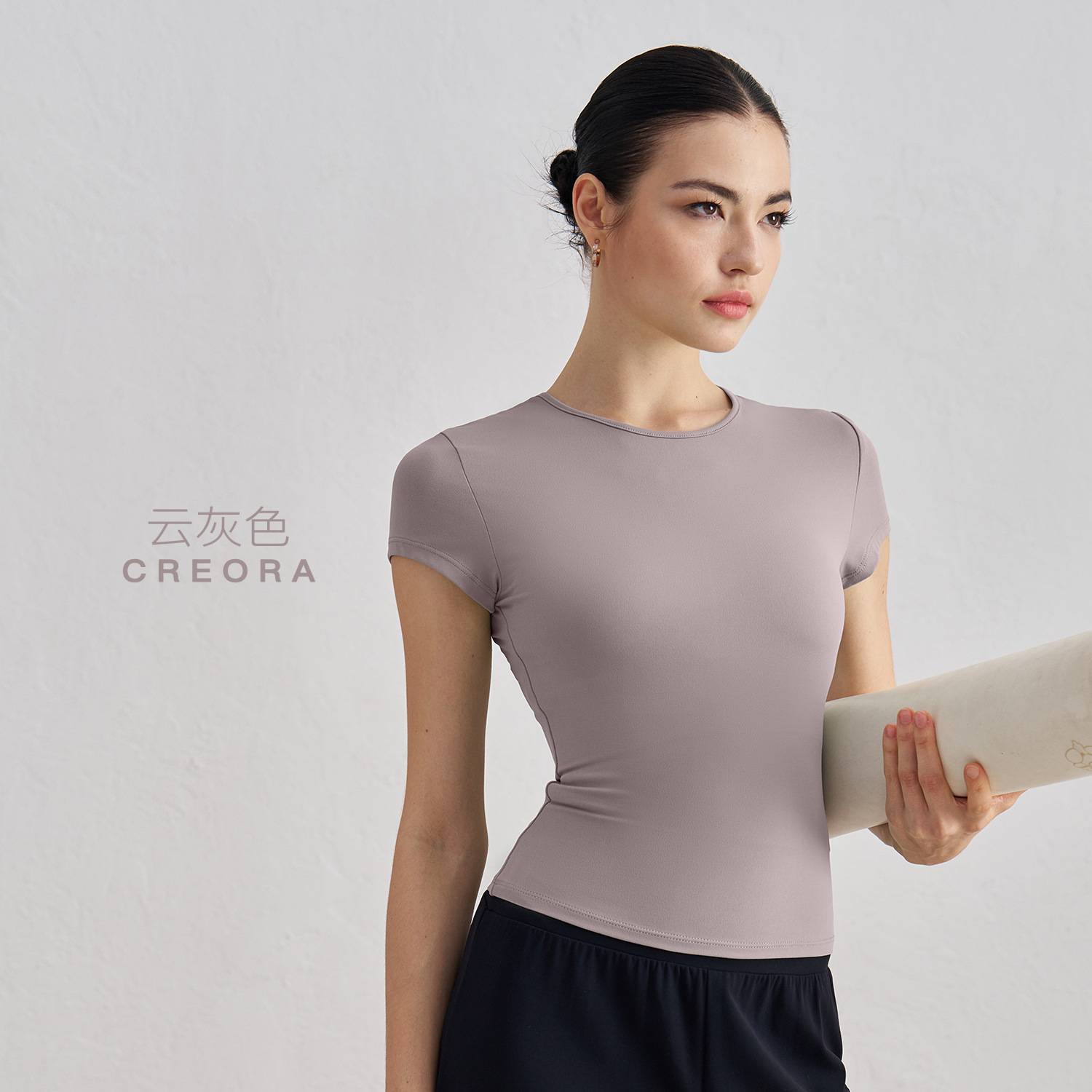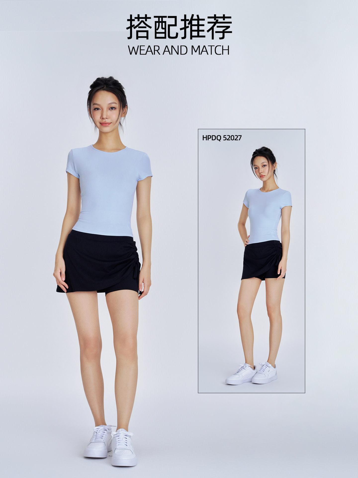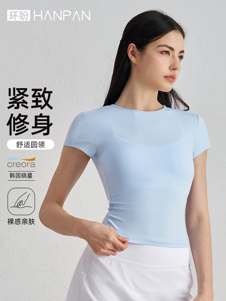 Huapan модная телесная футболка для бега и йоги, женская тонкая утягивающая спортивная одежда с короткими рукавами и элегантным круглым вырезом для фитнеса для женщин