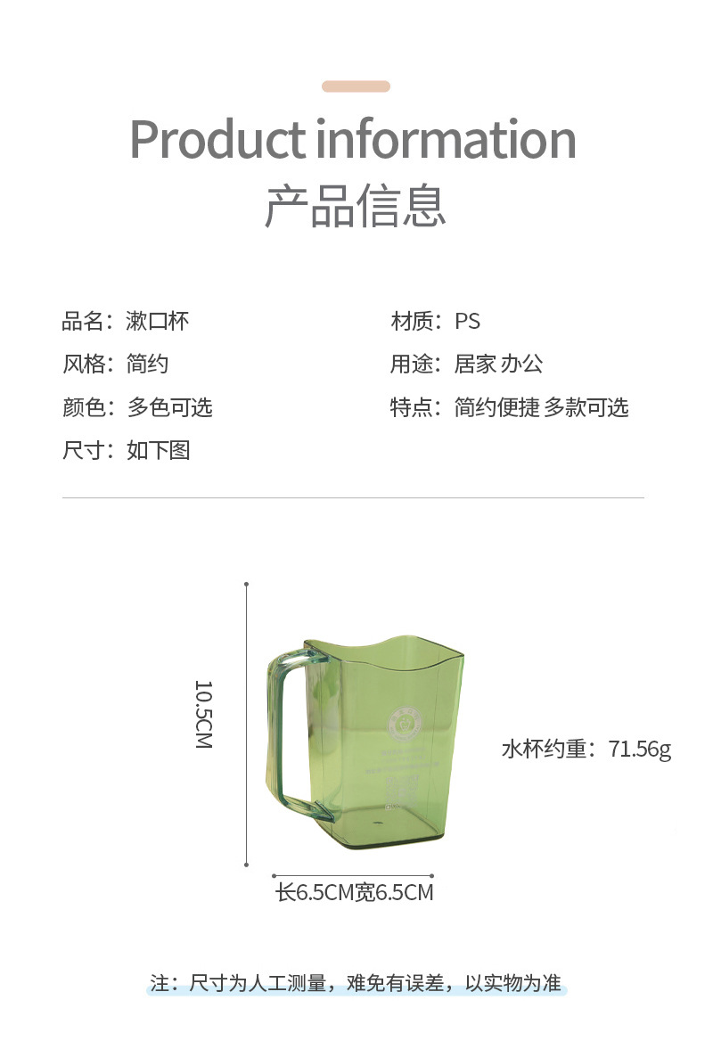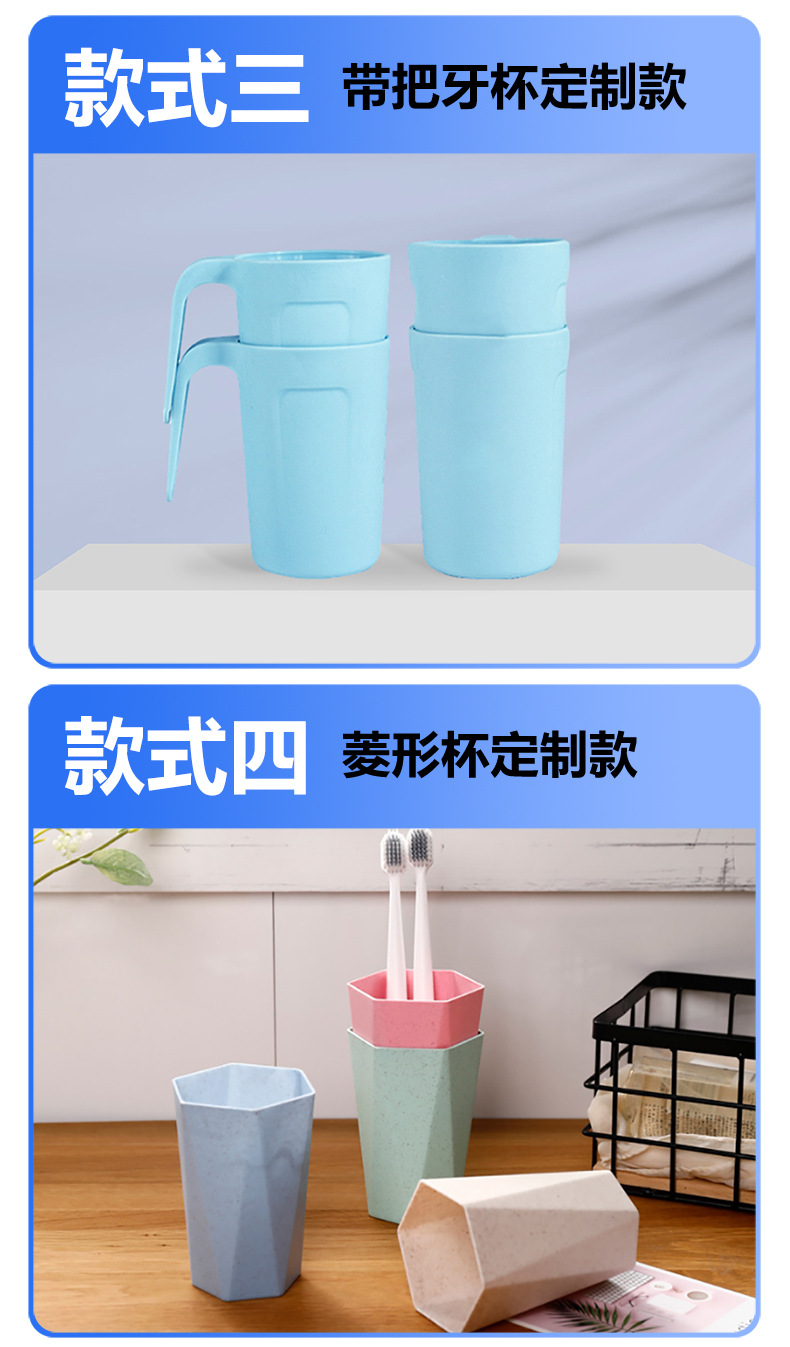 Чашка для живота из пшеницы емкостью 350 мл.; Чашка с пшеничным бриллиантом на 300 мл.; Большая чашка из пшеницы объемом 380 мл.; 400 мл пшеничная U-образная чашка для полоскания рта; Чашка для полоскания рта объемом 375 мл с ручкой; Прозрачная маленькая круглая чашка на 350 мл.; Прозрачная маленькая квадратная чашка на 350 мл.; 230 мл прозрачная чашка для полоскания рта «два в одном»; 400 мл прозрачная U-образная чашка для полоскания рта