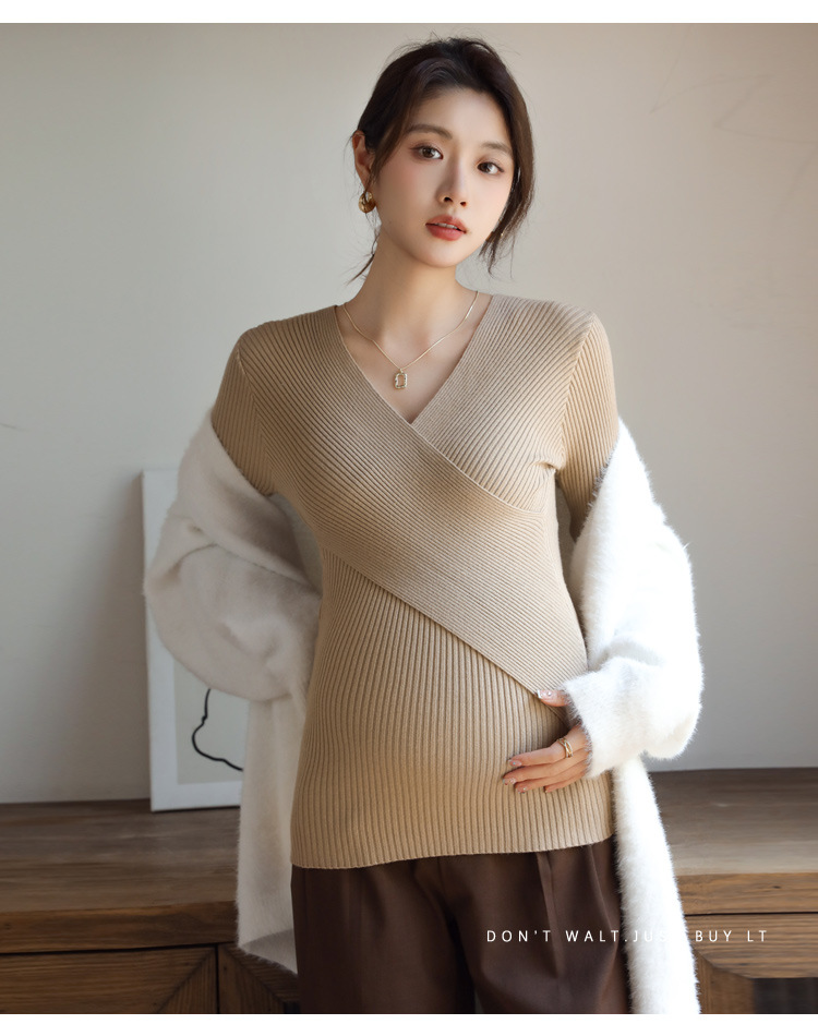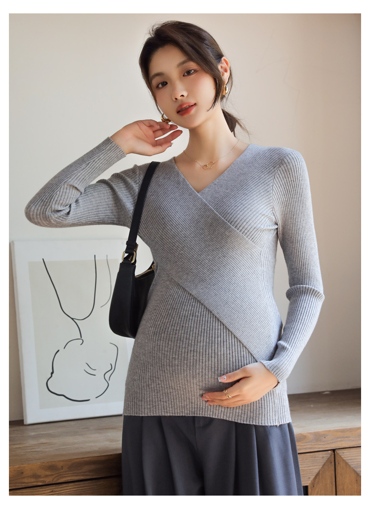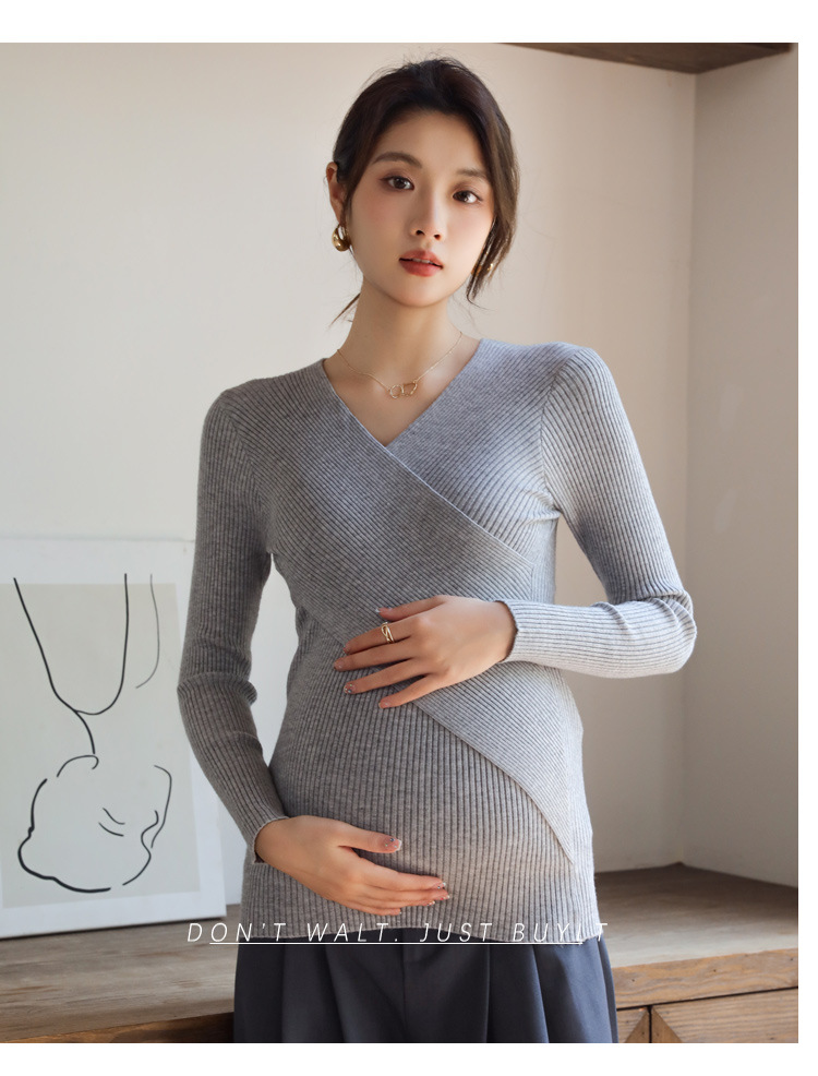 Осенний и зимний кросс-воротник свитер с длинными рукавами Нижняя рубашка подходит для грудного вскармливания до и после беременности