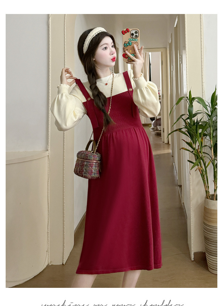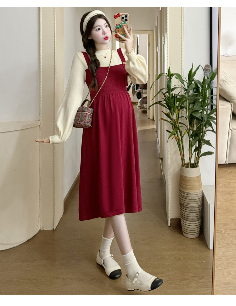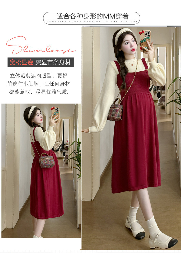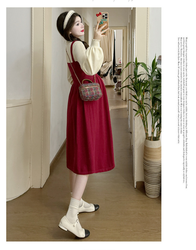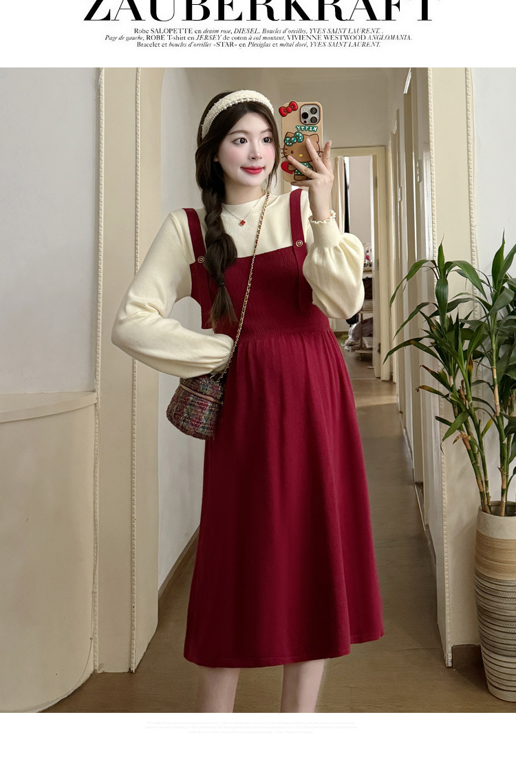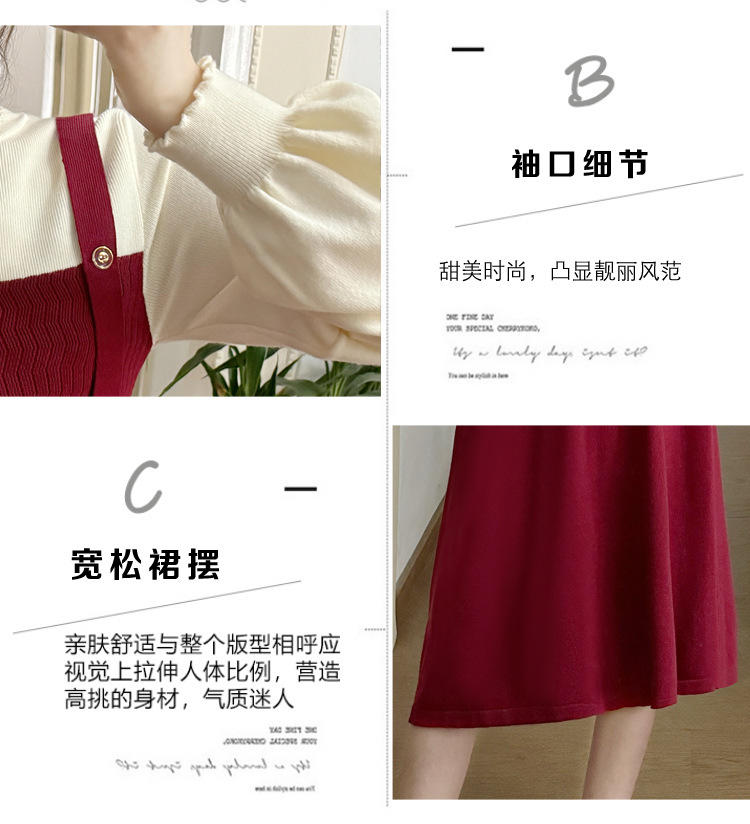 Настоящий снимок на складе ~ Новинка осени и зимы 2025 года, праздничная красная юбка в канун Нового года, милое возрастное рождественское модное искусственное платье из двух частей