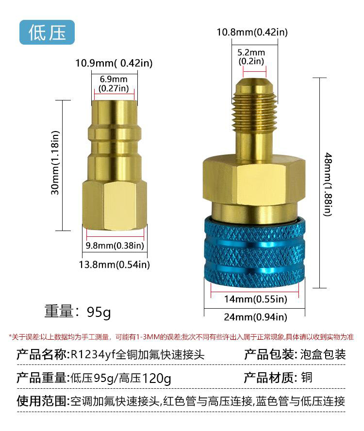 Быстроразъемное соединение R1234yf, полностью медное, для автомобильных систем кондиционирования, высокого и низкого давления, оптовая продажа от производителя, насадка для заправки, аксессуары