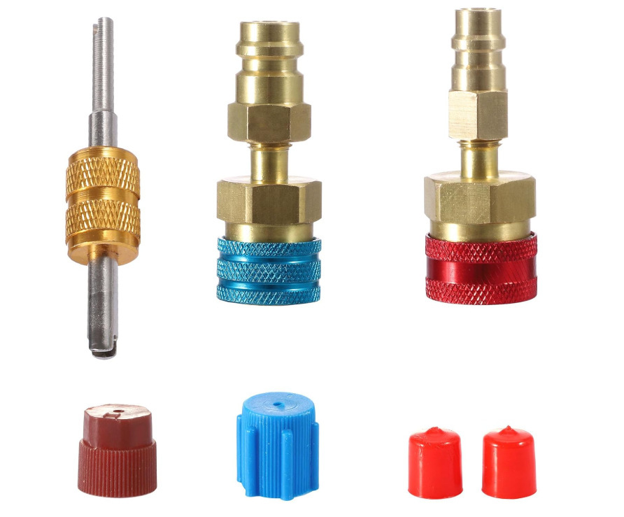 R1234yf высокое давление + R134a высокое давление; R1234yf низкое давление + R134a низкое давление; R1234yf высокое и низкое давление + R134a высокое и низкое давление; R1234yf высокое и низкое давление + R134a высокое и низкое давление + металлический ключ; R1234yf высокое и низкое давление + R134a высокое и низкое давление + две преобразовательные головки