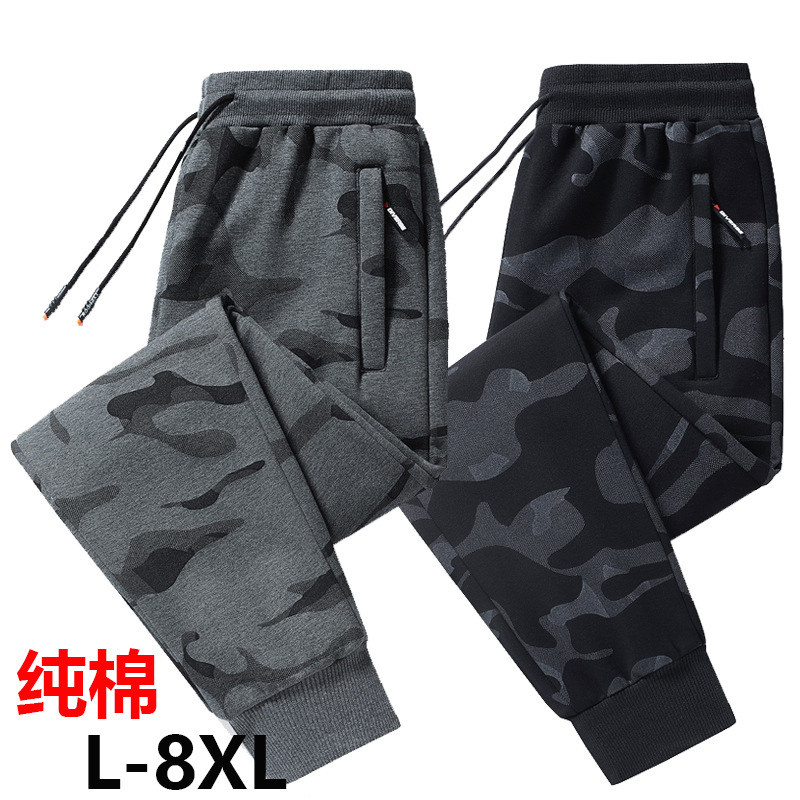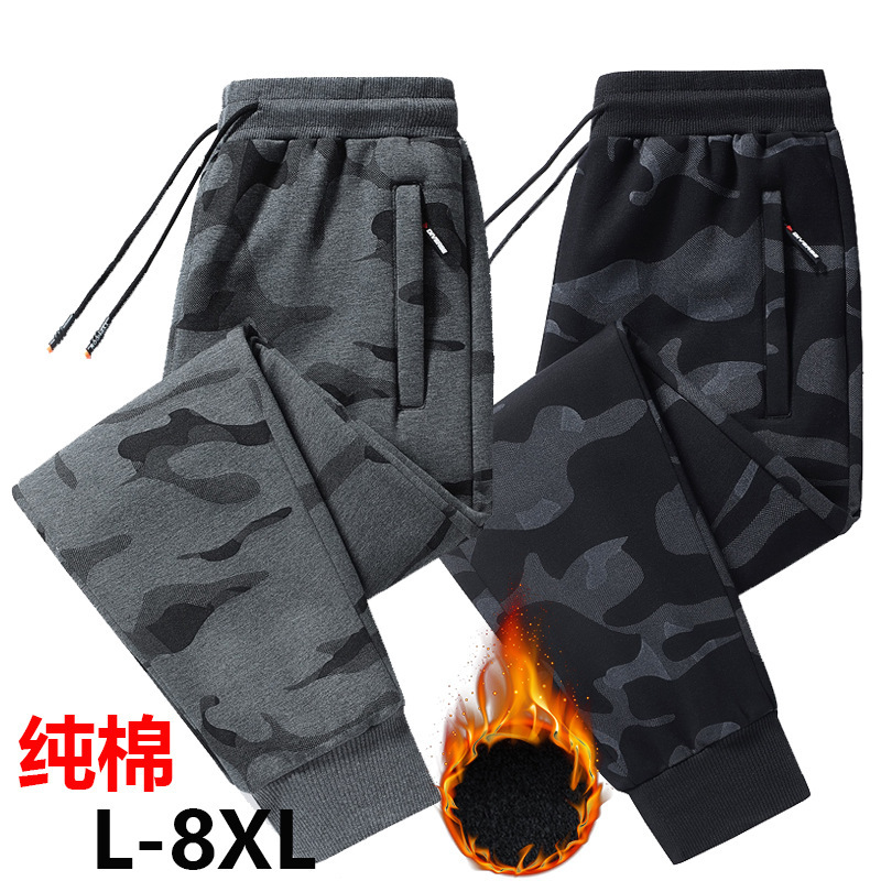 Камуфляжные весенне-осенние зимние новые брюки плюс бархатные толстые мужские спортивные штаны свободные жирные плюс приливные брюки большого размера