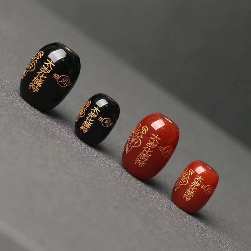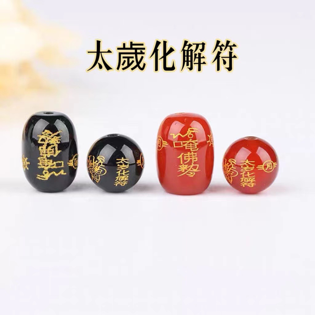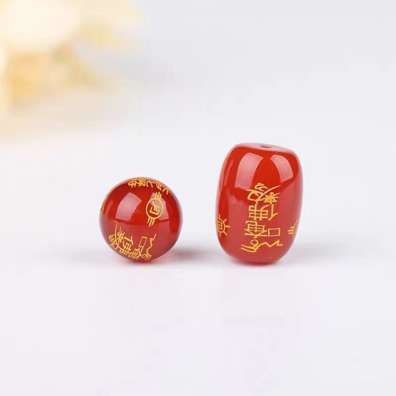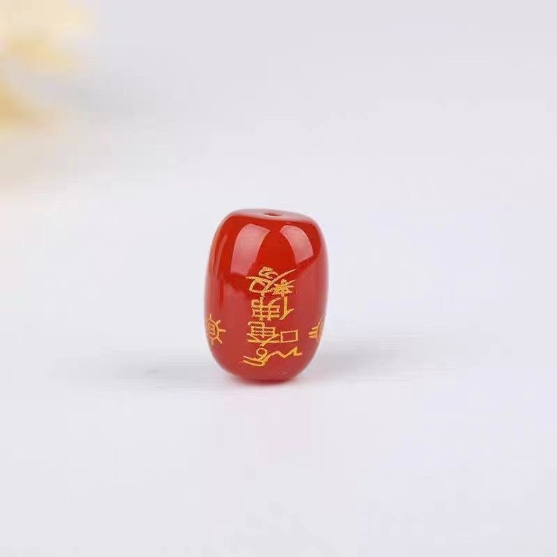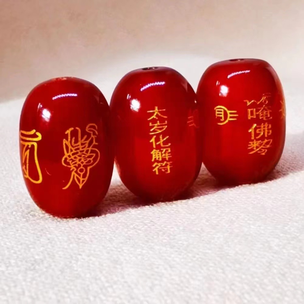 Бусины из агата Тай Суй, бочкообразные, с золотым тиснением по году рождения, россыпью, для самостоятельного изготовления браслетов, оптом от производителя, красный агат