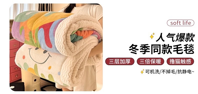 Улыбающийся мороженый [Утолщённый молочный велюр, антистатический, тёплый]; Синий полосатый кот [плотный молочный велюр, антистатический, теплый и качественный]; Полосатый слон [Утолщённый молочный велюр, антистатический, тёплый]; Мяу Мяу Таунс: [Утолщённый молочный велюр, антистатический, превосходное сохранение тепла]; Сладкий Зайчик [плотный молочный велюр, антистатический, теплый и комфортный]; Милый динозавр [плотный молочный велюр, антистатический, теплый и приятный на ощупь]; Candy House [Плотный молочный бархат, антистатический, теплый и приятный]; Happy Dog [Утолщённый молочный велюр, антистатический, отлично сохраняет тепло]; Радужные конфеты [Утолщённый молочный бархат, антистатические, тёплые и качественные]; Счастливый час [Утолщённый молочный велюр, антистатический, тёплый и качественный]; Шоколадные бобы [густой молочный бархат, антистатические, теплые и приятные]; Черно-белый стиль [плотный молочный велюр, антистатический, отлично сохраняет тепло]; Звездное небо [Утолщённый молочный велюр, антистатический, тёплый]; Сказочный мир [Плотный молочный бархат, антистатический, хорошо сохраняет тепло]; Тяньци сетка [плотный молочный велюр, антистатический, хорошо сохраняет тепло]; Маленький медвежонок [плотный молочный бархат, антистатический, теплый и качественный]; Простой стиль [плотный молочный велюр, антистатический, хорошо сохраняет тепло]; Академический стиль [плотный молочный велюр, антистатический, теплый и качественный]; Маильярд плед [плотный молочный велюр, антистатический, теплый и качественный]; Фиолетовый тюльпан [Утолщённый молочный велюр, антистатический, тёплый]; Счастливый Цветок [Утолщённый Молочный Вельвет, Антистатический, Теплый и Качественный]; Розовый зайчик-флис [утолщенный молочный бархат, антистатический, теплый]; Animal Crossing: New Horizons [Утолщённый молочный велюр, антистатический, превосходное сохранение тепла]; Счастливый Рай [Плотный молочный велюр, антистатический, теплый и комфортный]; Экспрессионный медведь [Утолщенный молочный бархат, антистатический, теплый и приятный]; Антикварный [плотный молочный бархат, антистатический, хорошо сохраняет тепло]; Счастливая Панда [плотный молочный бархат, антистатический, теплый и качественный]; Apple Bear [плотный молочный бархат, антистатический, теплый и качественный]; Звездный Кролик [плотный молочный бархат, антистатический, теплый и качественный]; Картина [плотный молочный бархат, антистатический, теплый и качественный]