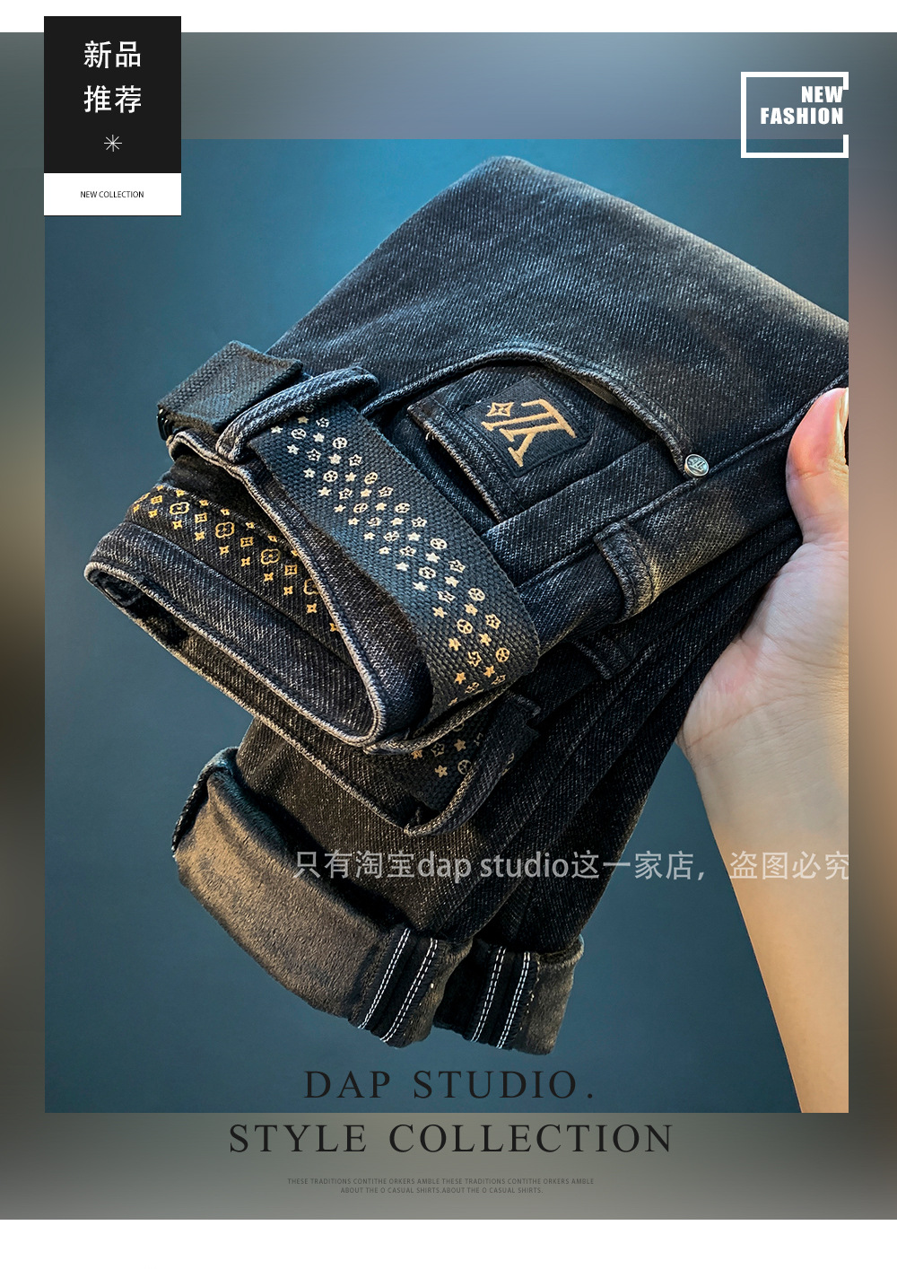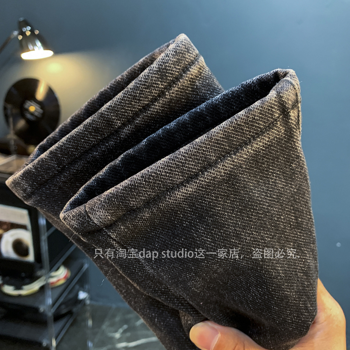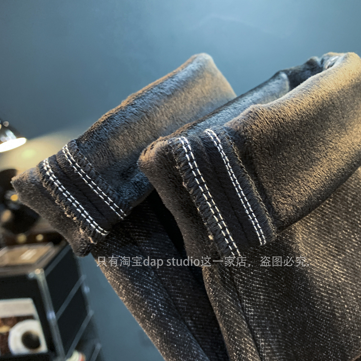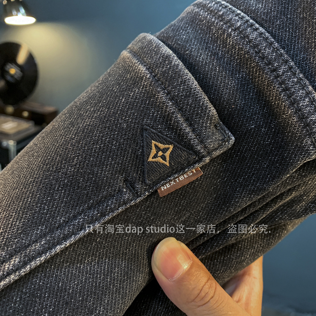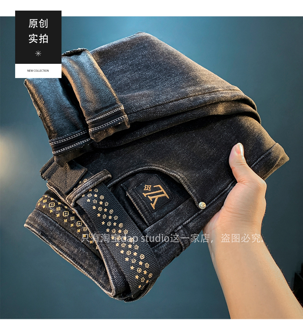 Высокие роскошные джинсы мужские зимние 2024 года плюшевые толстые повседневные вышитые теплые брюки стройные мужские брюки