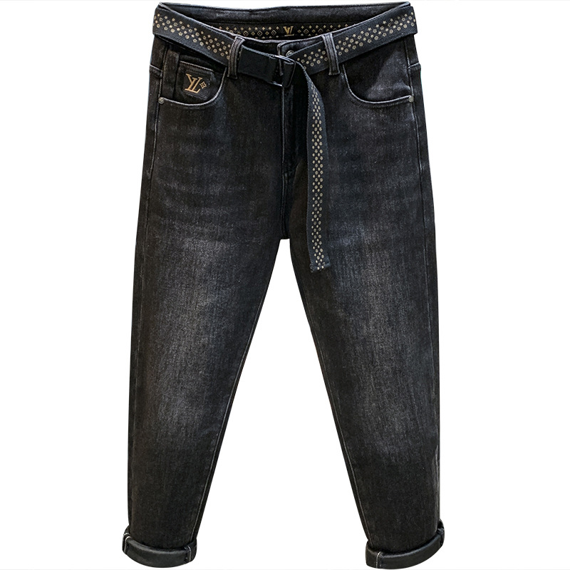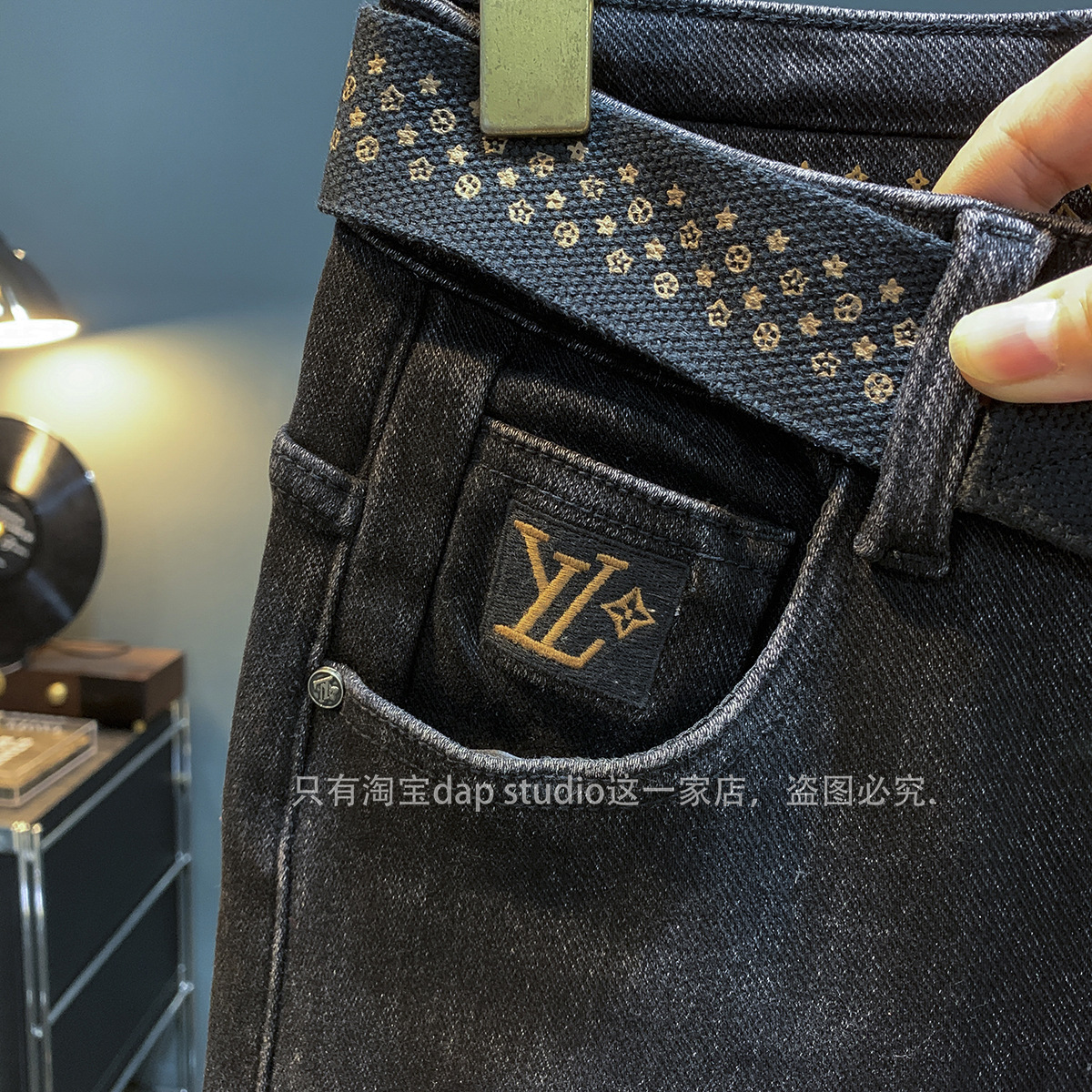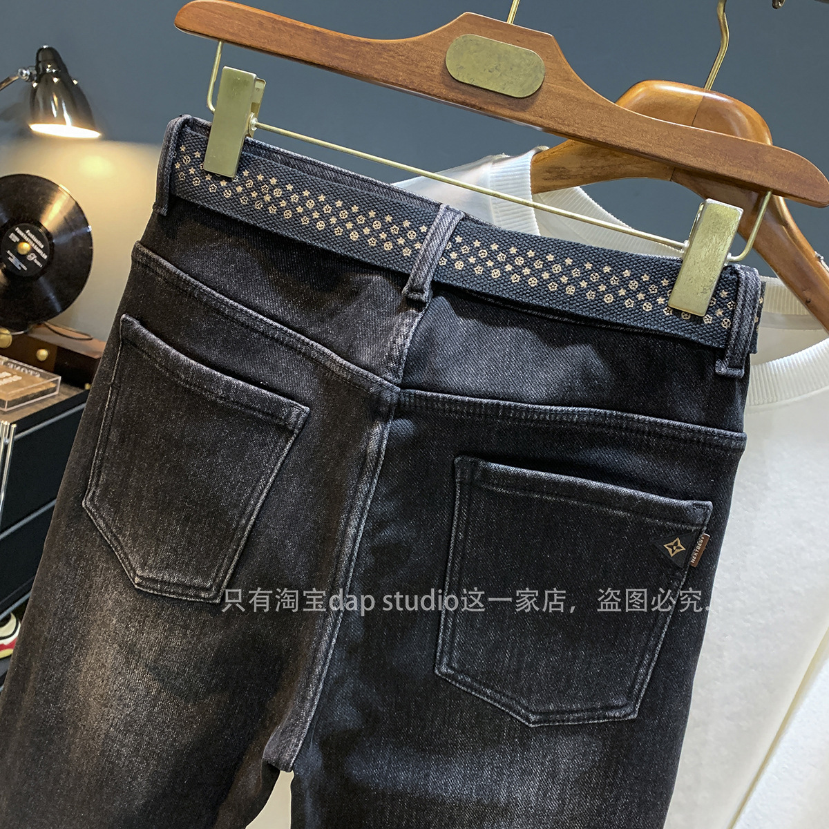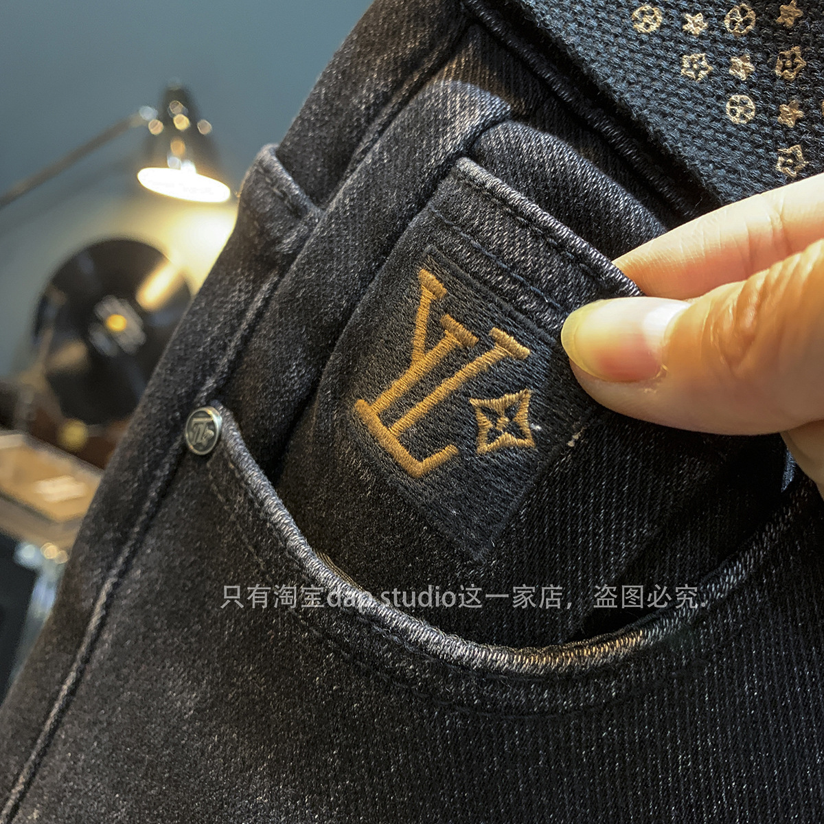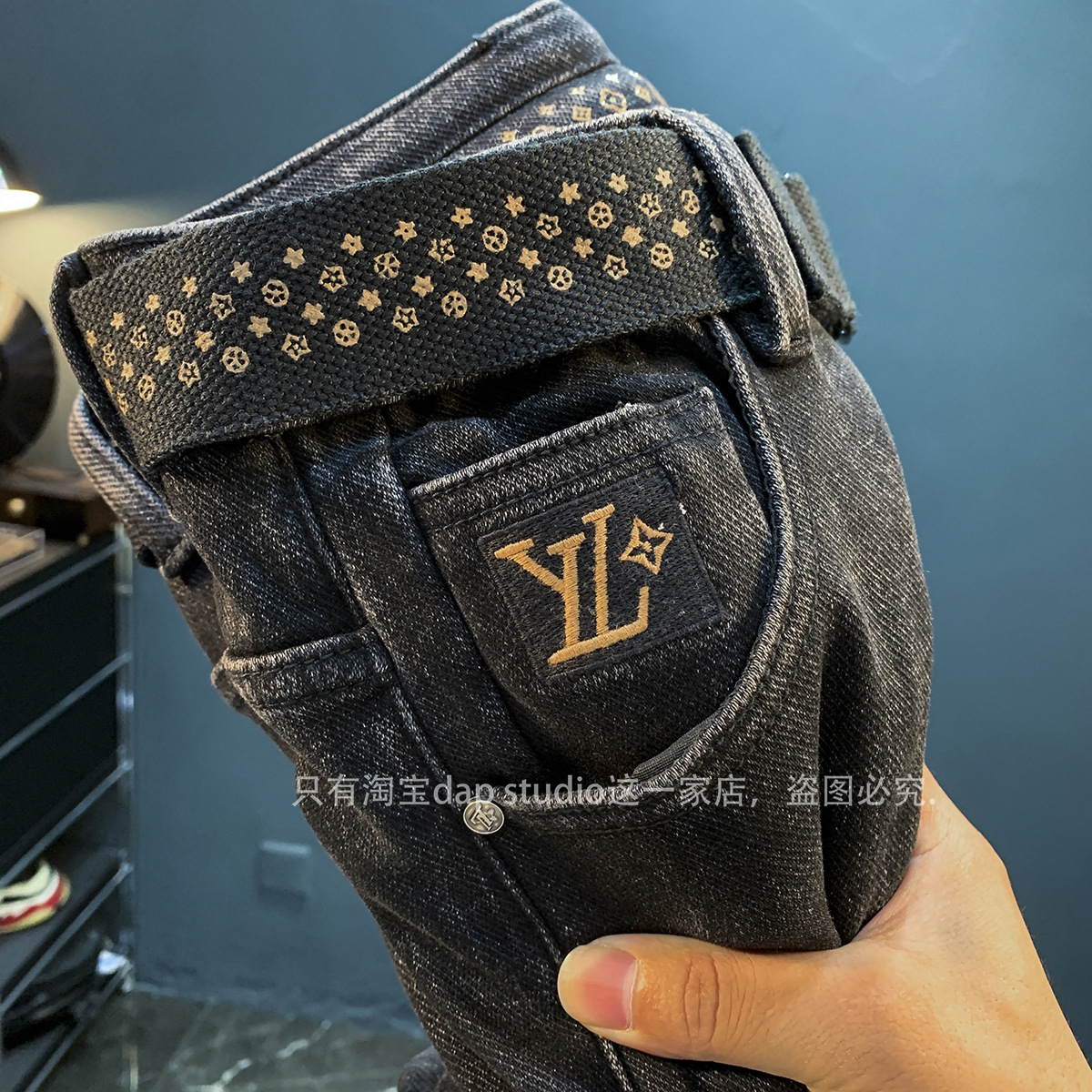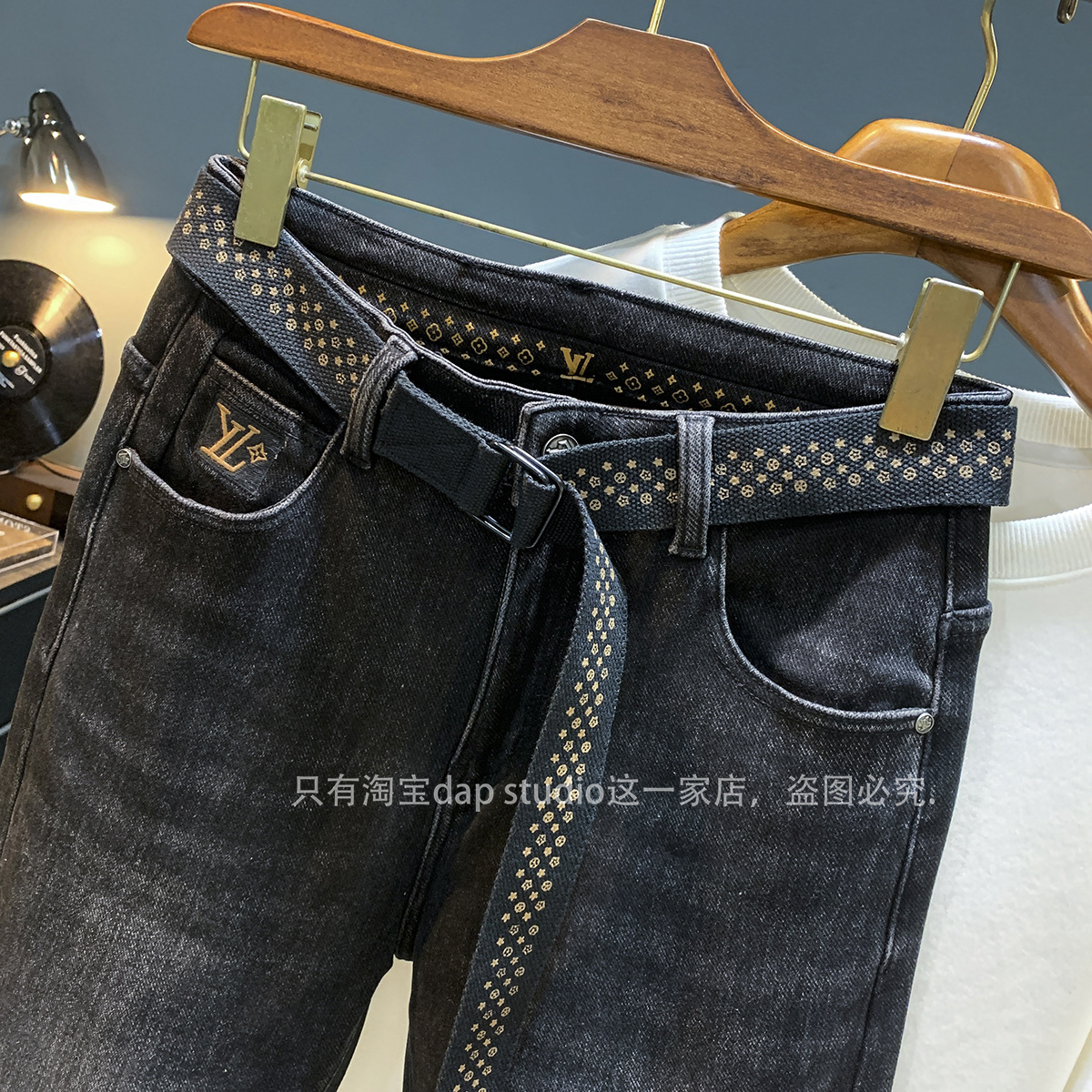 Высокие роскошные джинсы мужские зимние 2024 года плюшевые толстые повседневные вышитые теплые брюки стройные мужские брюки