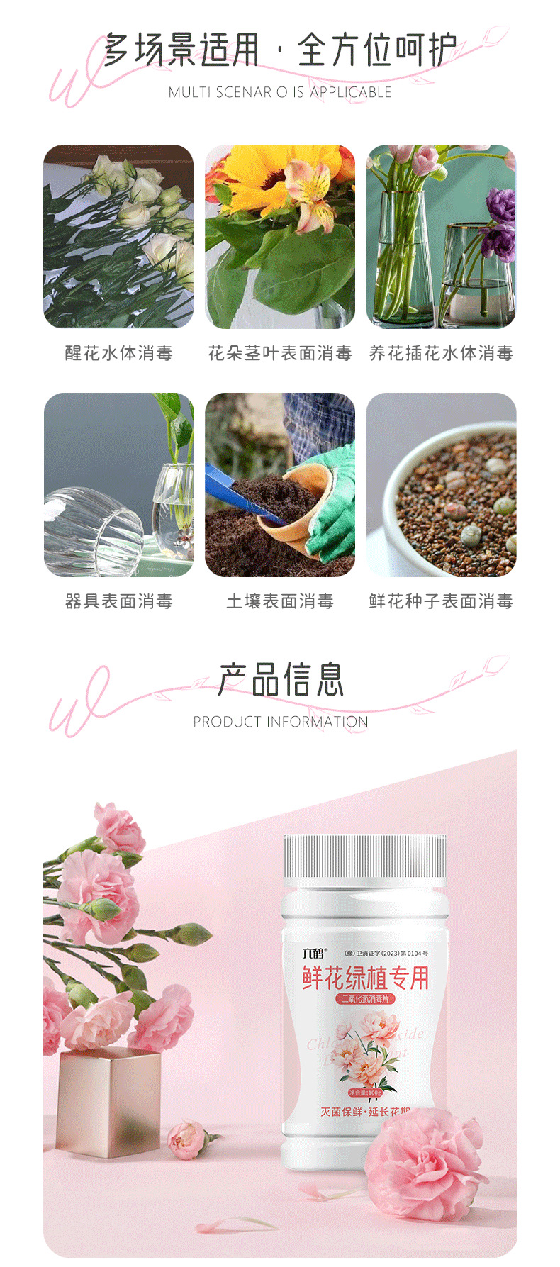Специальные дезинфицирующие таблетки для цветов и зеленых растений 100г; Дезинфицирующие таблетки с диоксидом хлора, 100 г; Дезинфицирующие таблетки с гипохлоритной кислотой, 100 г; Трихлоризоциануровая кислота, шипучие дезинфицирующие таблетки, 100 г; Специальные дезинфицирующие таблетки для питьевой воды, 100 г