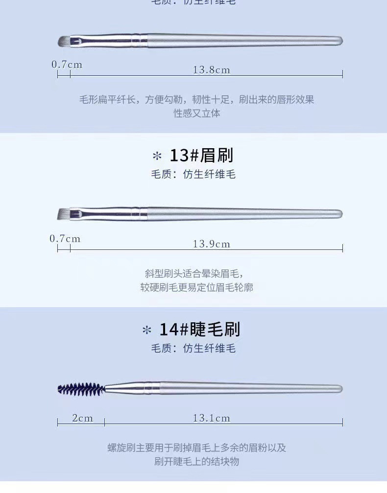 Набор кистей для макияжа из 14 предметов, включая кисть для теней, кисть для пудры, кисть для тональной основы, кисть для губ, полный комплект кистей для макияжа.