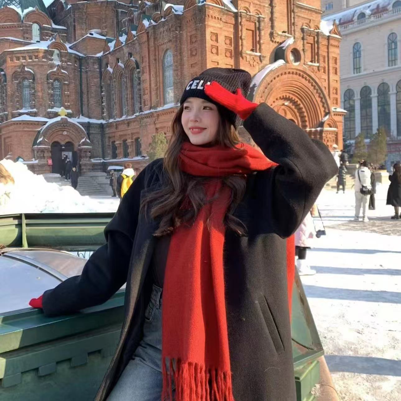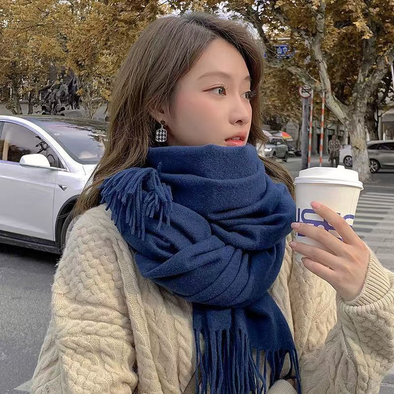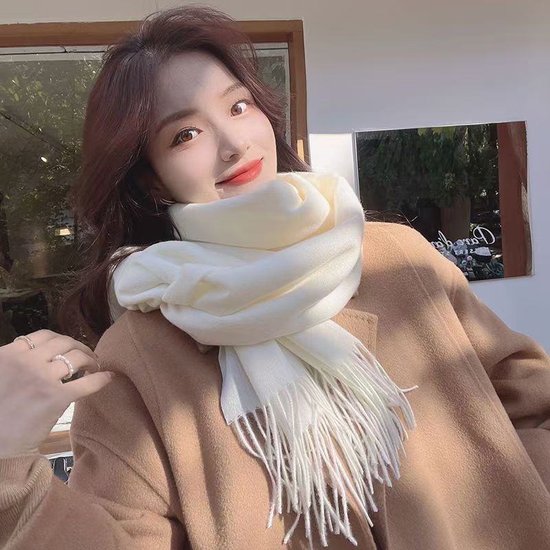 Белый шарф теплый зимой дикий 2024 новый толстый шарф сладкий студент