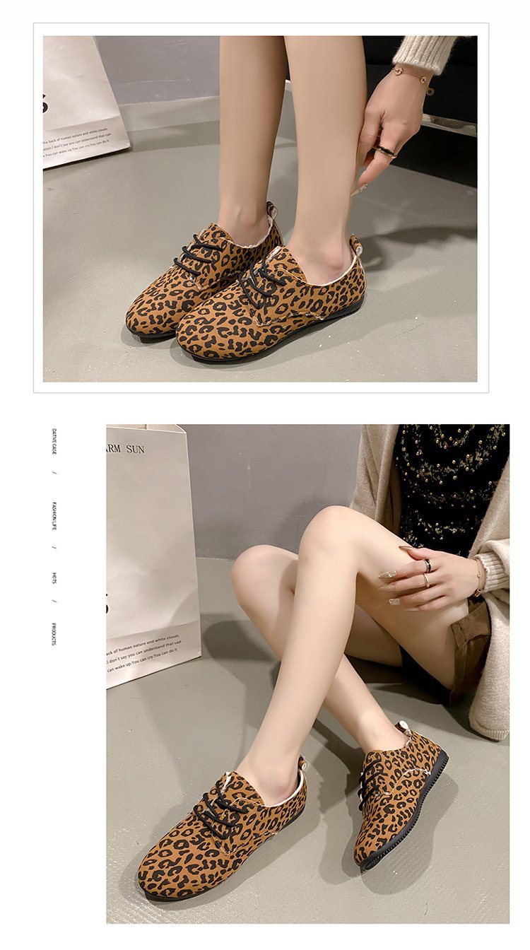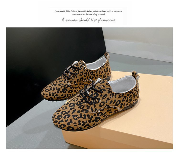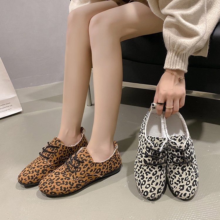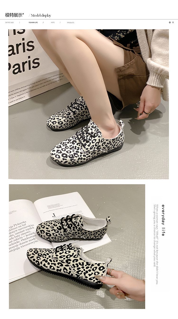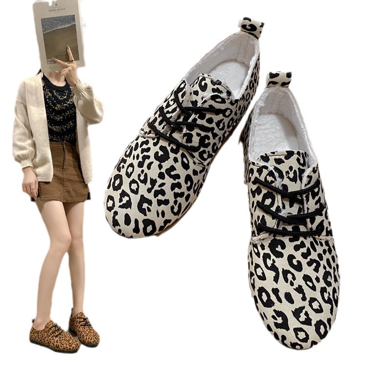 Женские туфли больших размеров Amazon Wish для внешней торговли, осень-зима 2024, на плоской подошве, на флисовой подкладке, хлопковые, с леопардовым принтом, размеры 40-43, в ретро-стиле