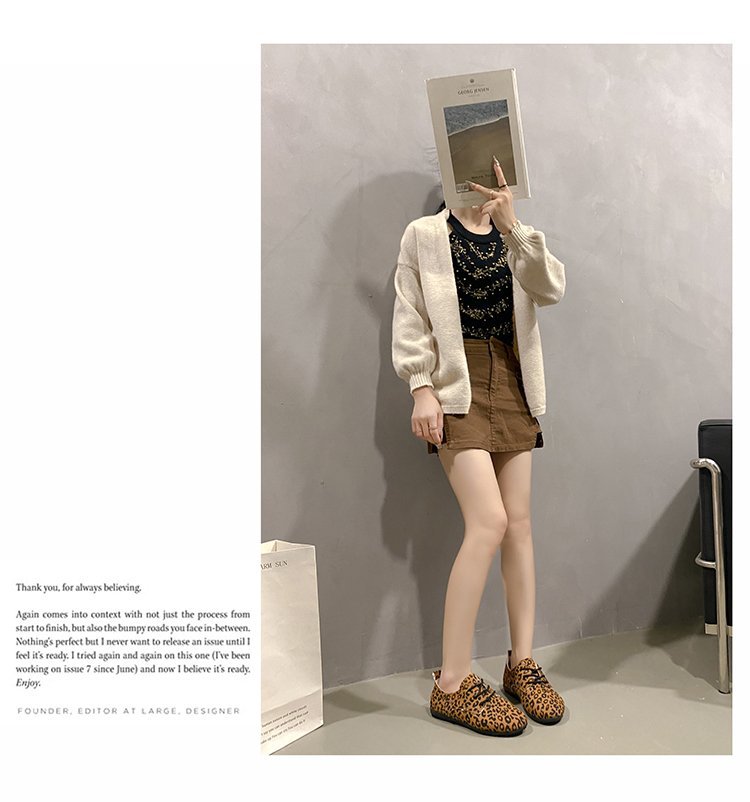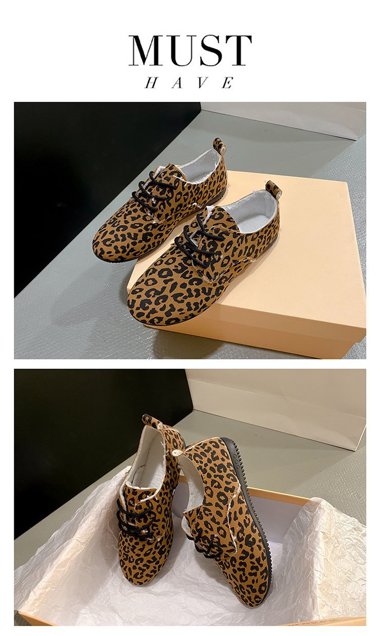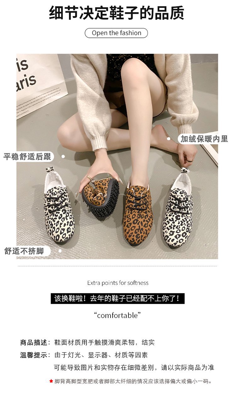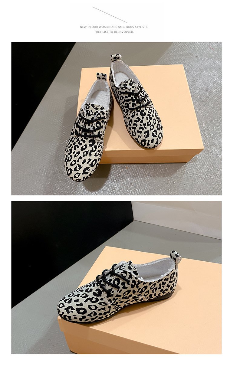 Женские туфли больших размеров Amazon Wish для внешней торговли, осень-зима 2024, на плоской подошве, на флисовой подкладке, хлопковые, с леопардовым принтом, размеры 40-43, в ретро-стиле