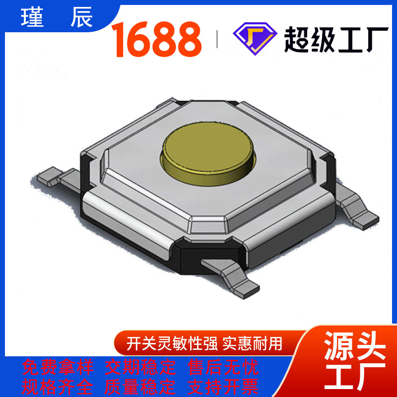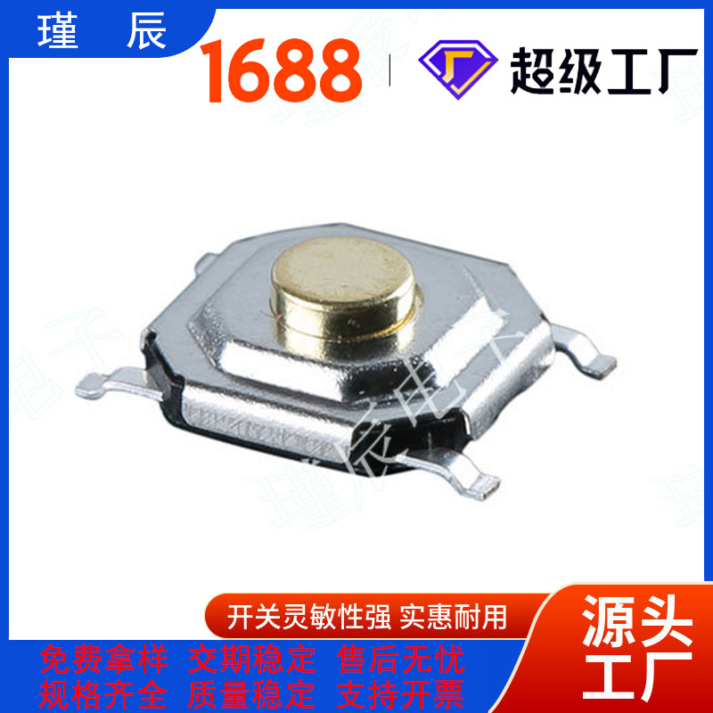 Тактовый переключатель с медной головкой 4*4*1,5 SMD, водонепроницаемый и пылезащитный переключатель 5,2x5,2x1,7 SMD