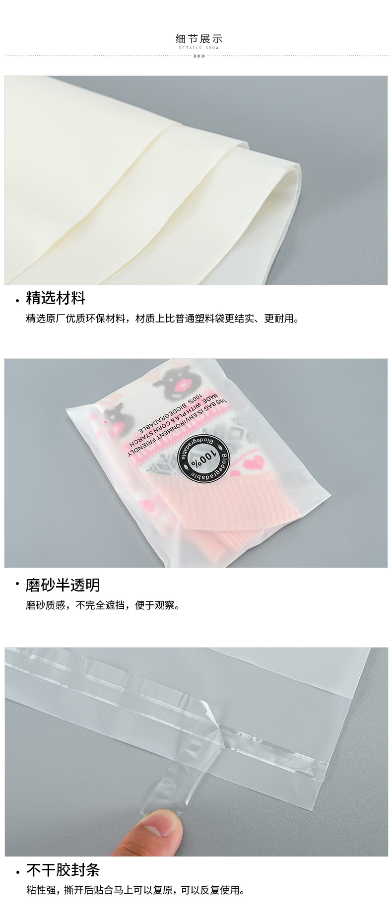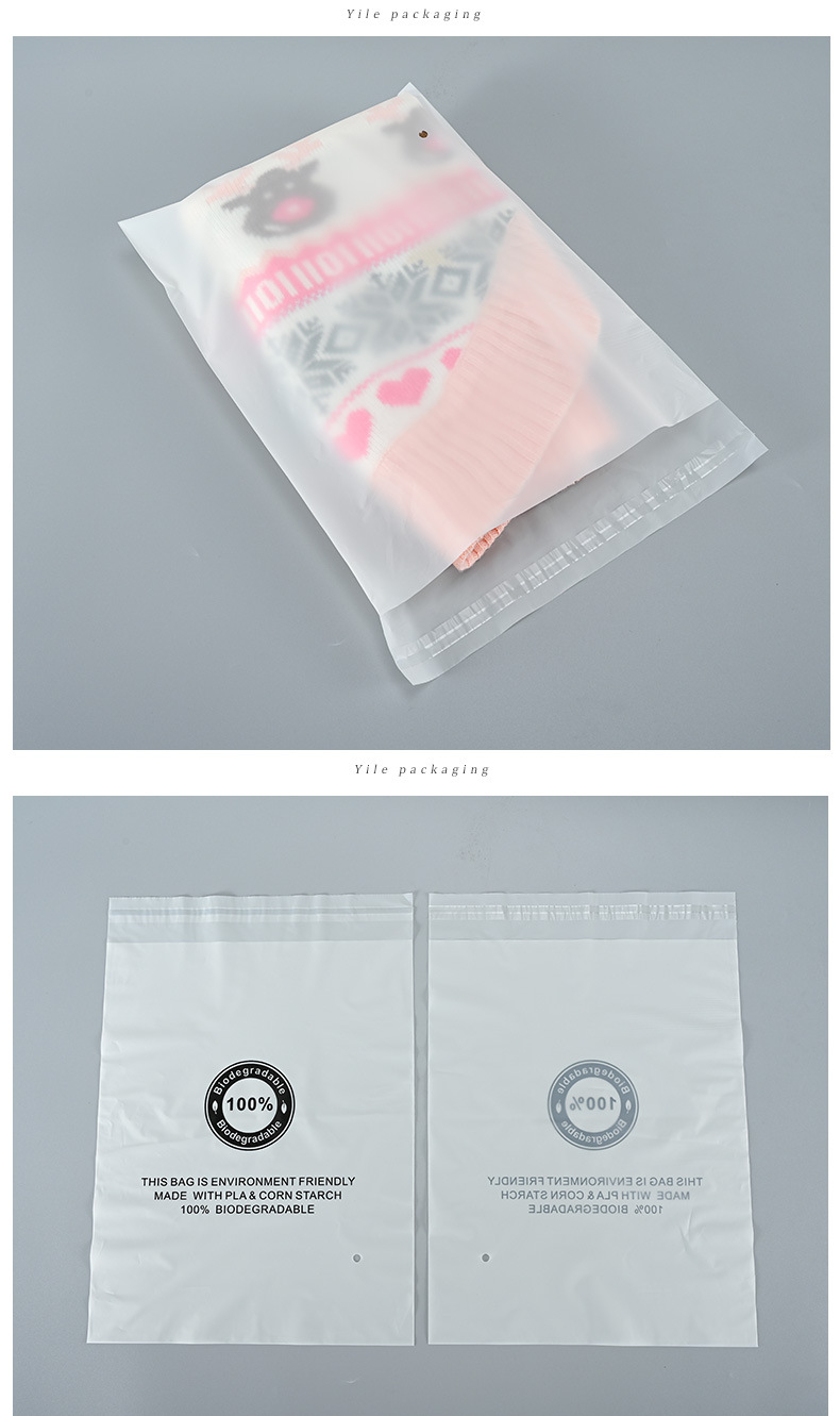 Полностью разлагаемый самоклеящийся мешок для упаковки матовый полупрозрачный мешок для одежды Самоклеящийся пластиковый пакет для упаковки Разлагаемый мешок PLA