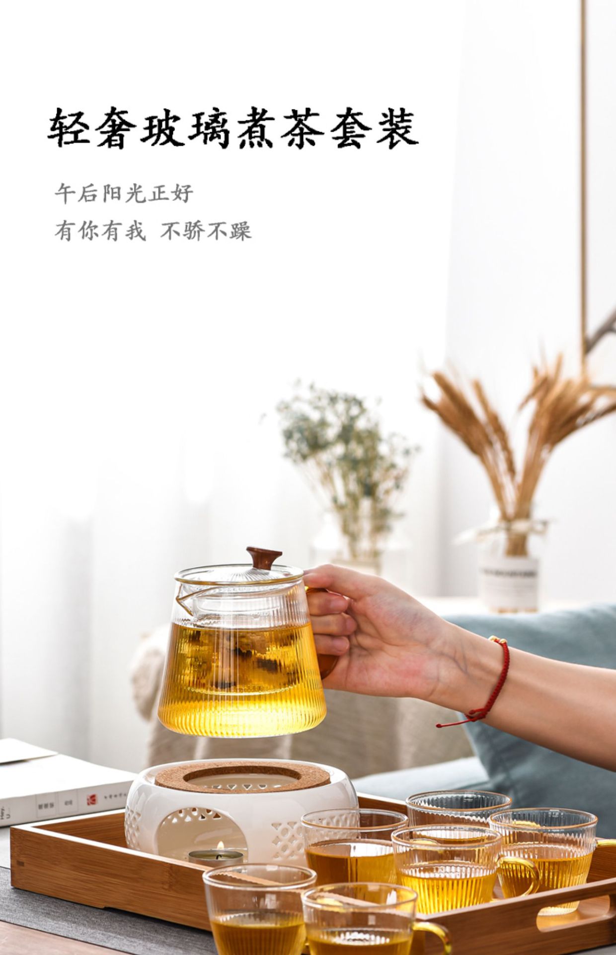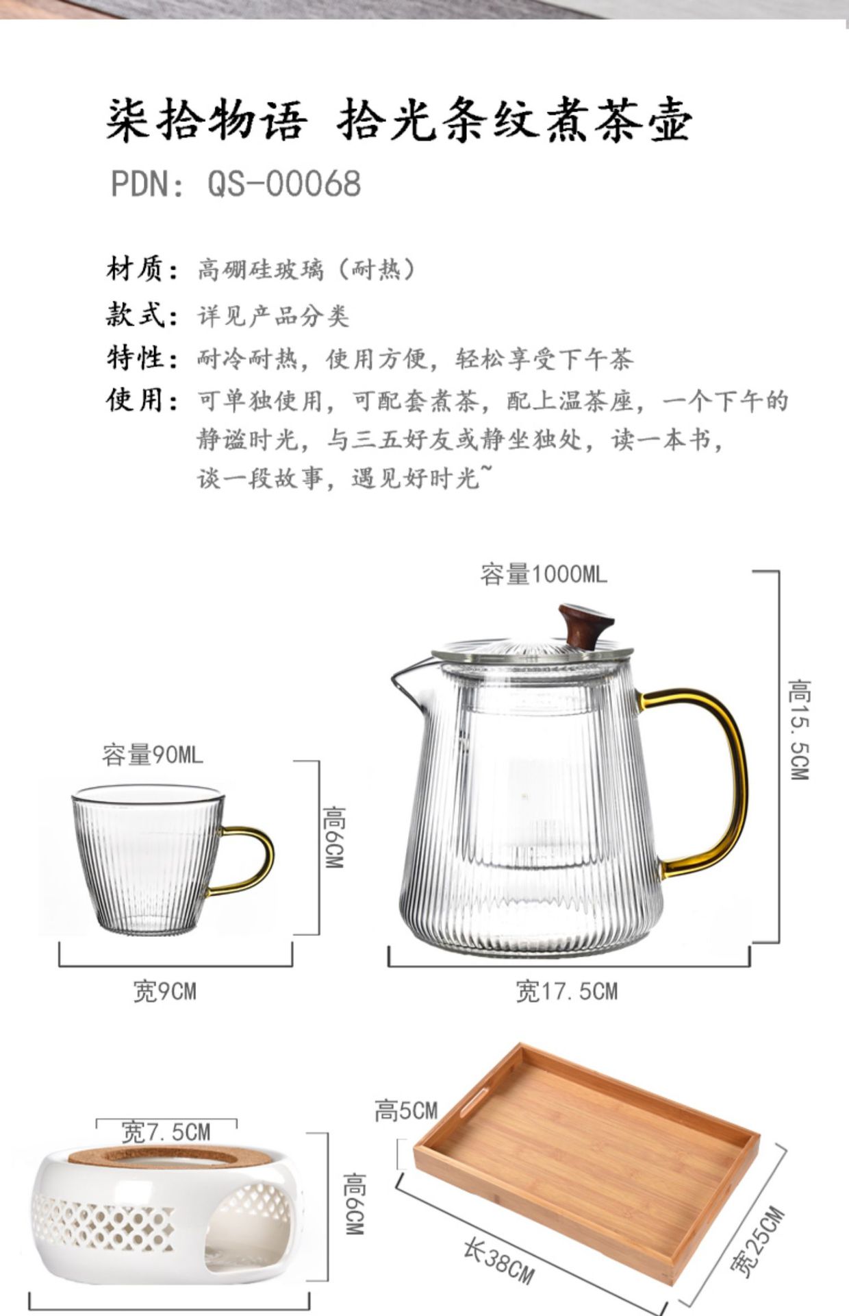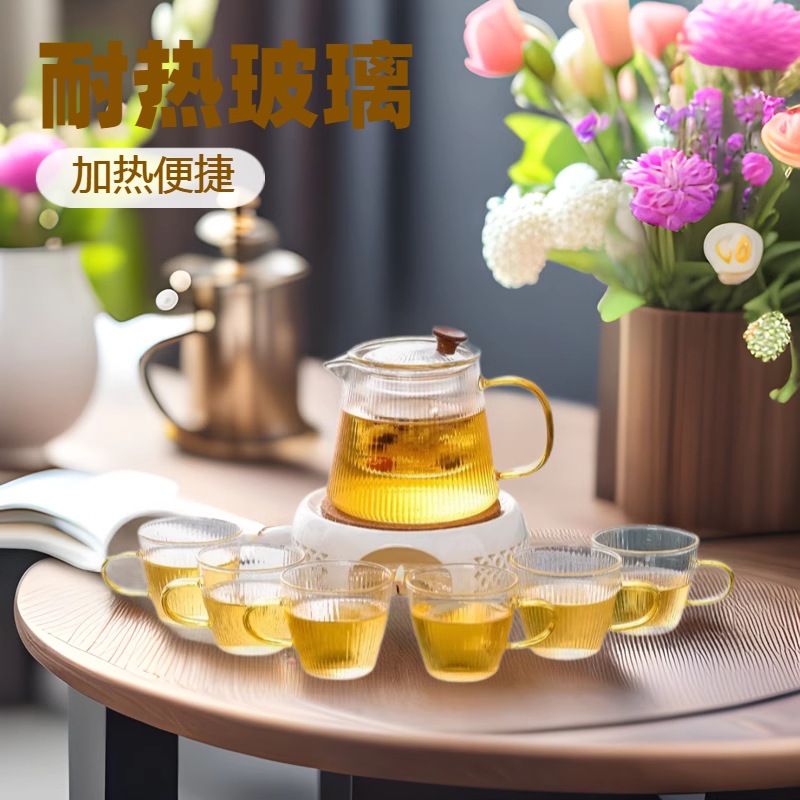 Белая изысканная основа + стеклянный горшок с вертикальным узором.; Белая изысканная основа + стеклянный горшок с вертикальным узором + 6 чашек; Белая изысканная основа + стеклянный горшок с вертикальным узором + 2 чашки + поднос; Белая изысканная основа + стеклянный горшок с вертикальным узором + 4 чашки + поднос; Белая изысканная основа + стеклянный горшок с вертикальным узором + 6 чашек + поднос