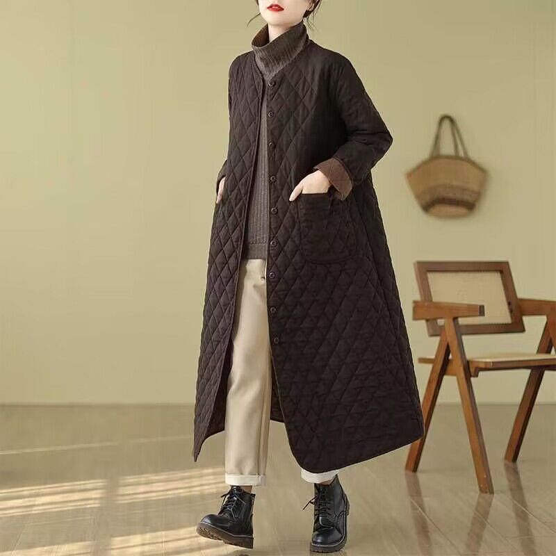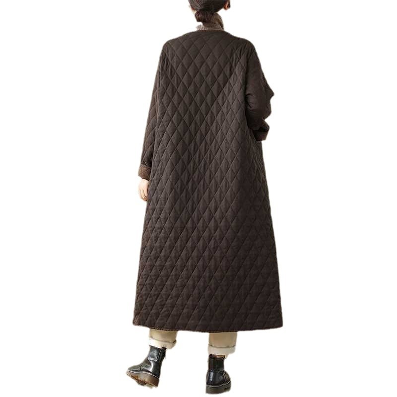 Рекордный выстрел # ретро сплошной бриллиантовый хлопчатобумажный костюм женский зимний новый свободный V-образный вырез тонкий длинный хлопковый пиджак