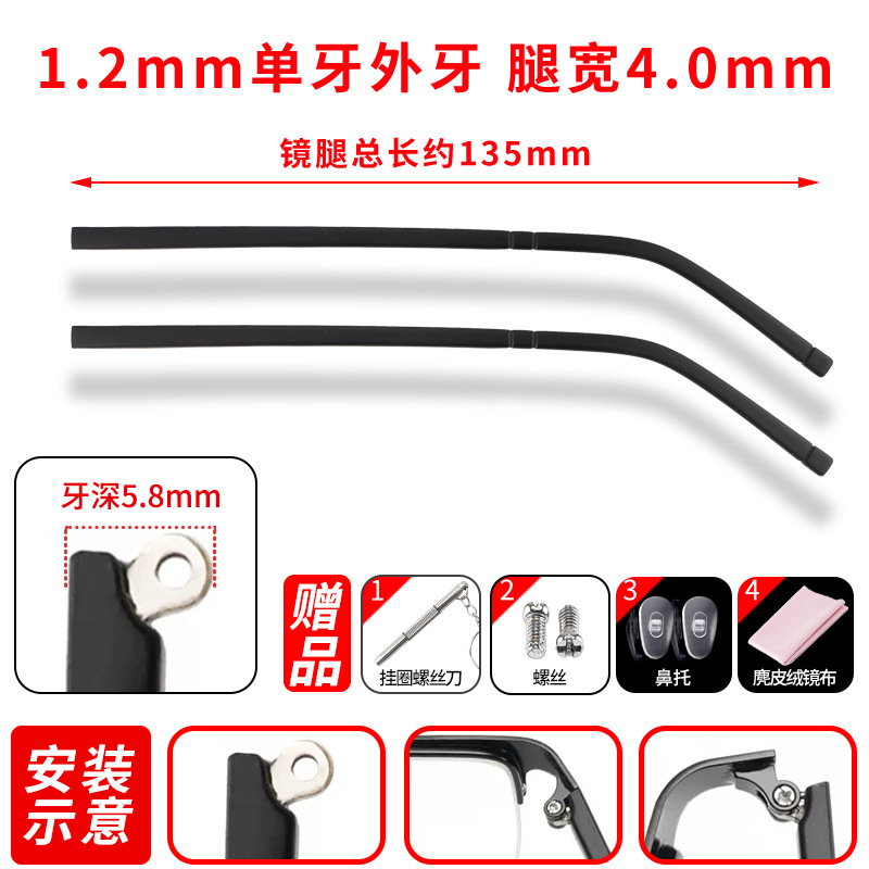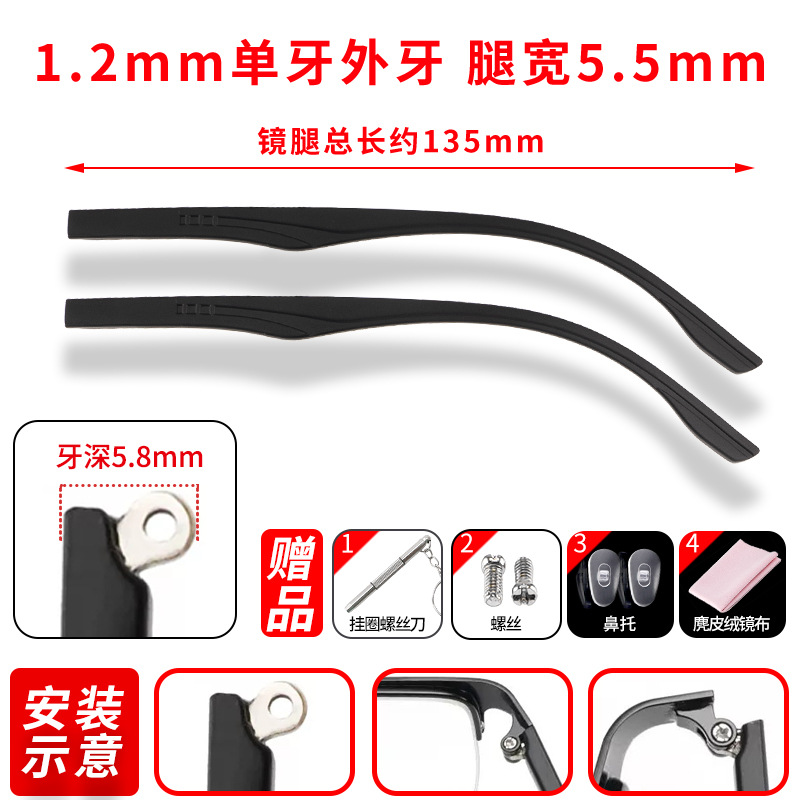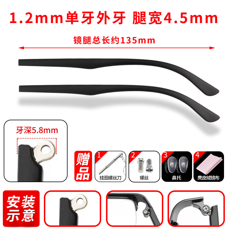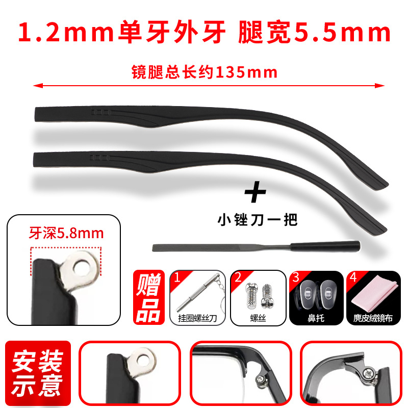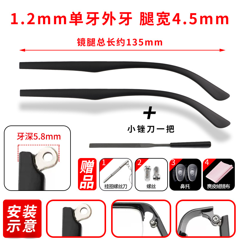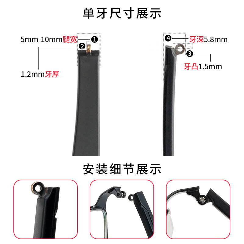 Ножки для очков с одним зубцом и внешним зубцом 1,2 мм