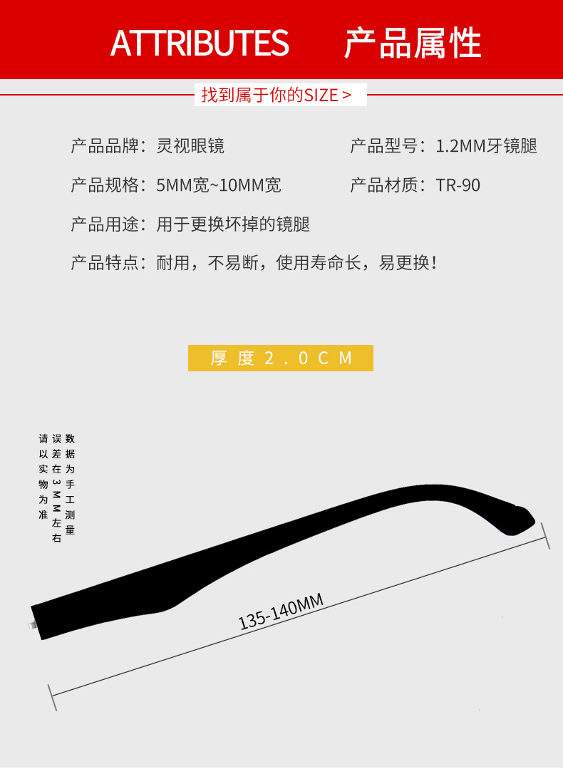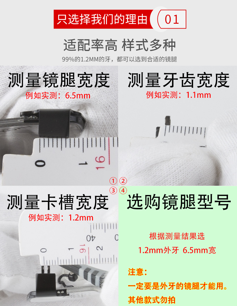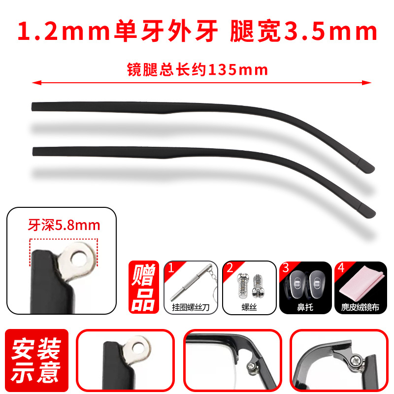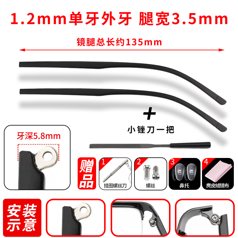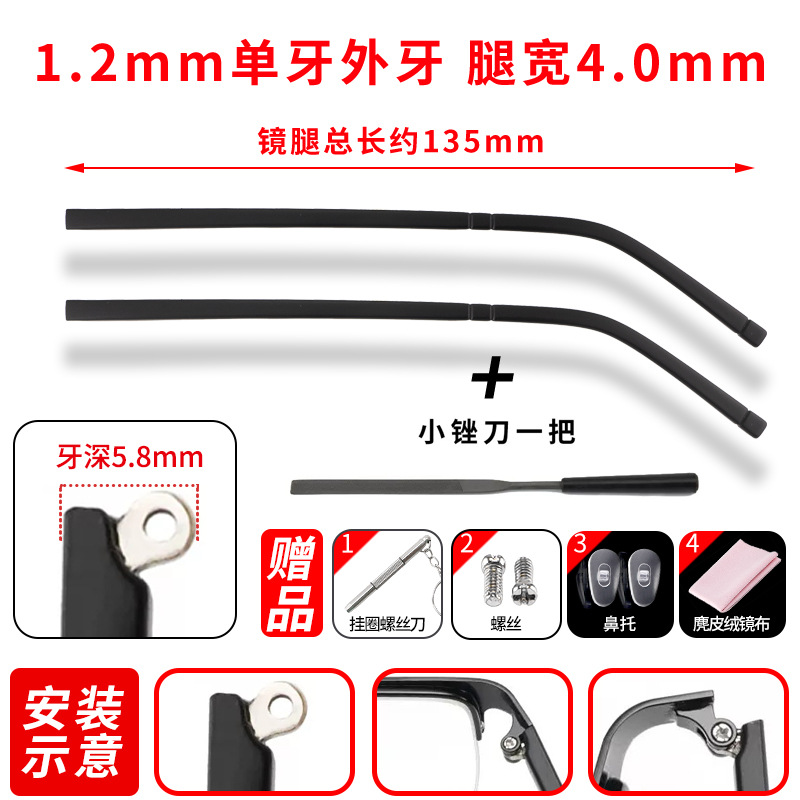Ножки для очков с одним зубцом и внешним зубцом 1,2 мм