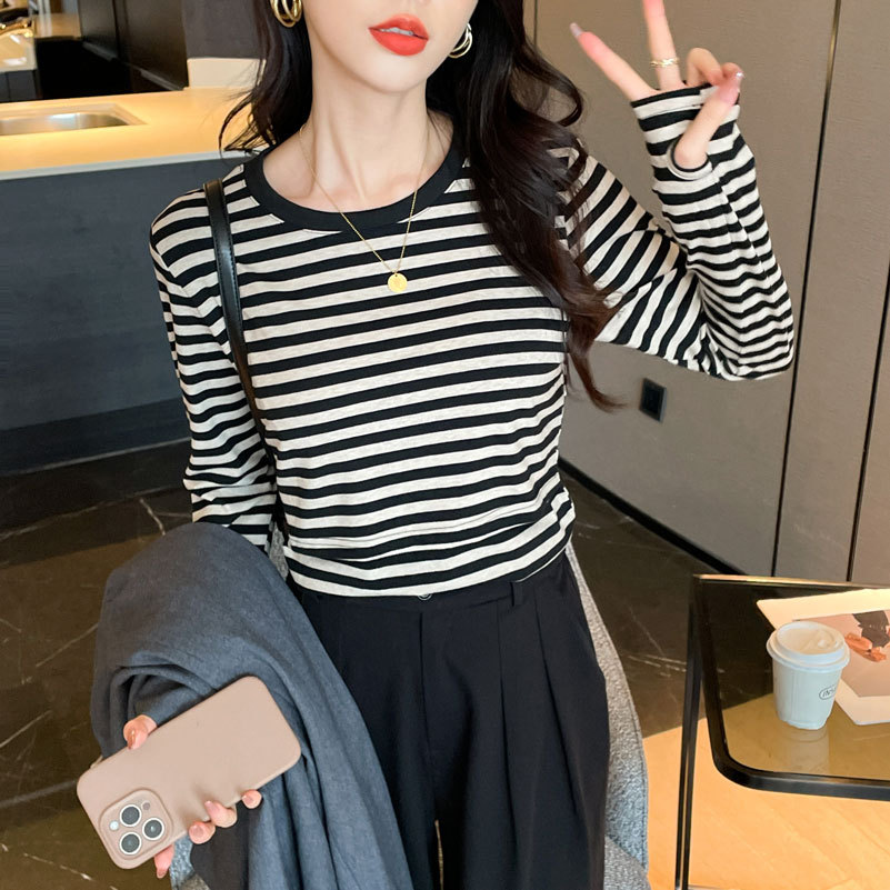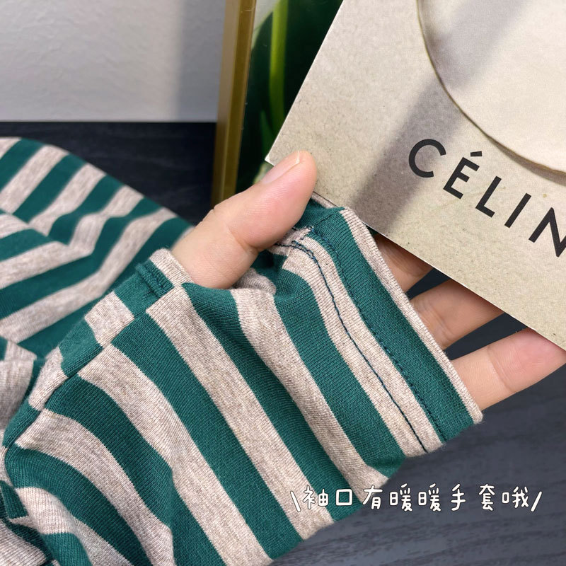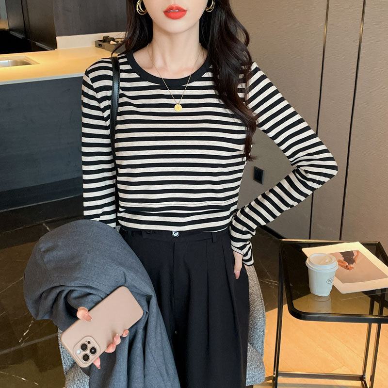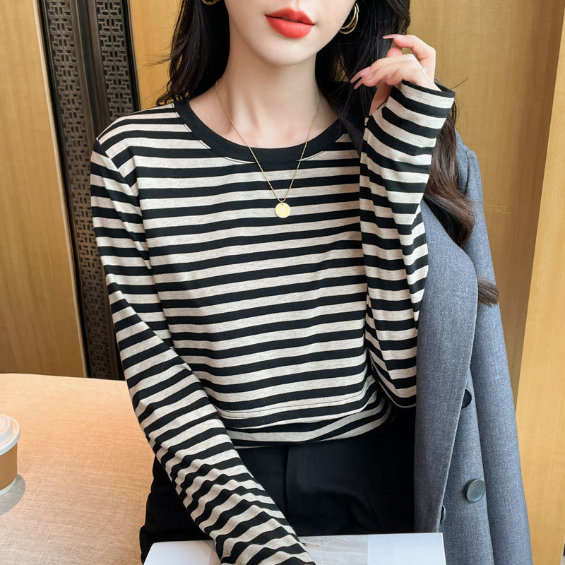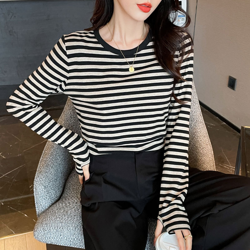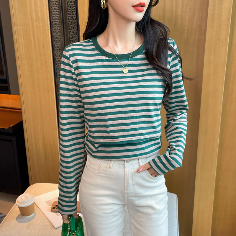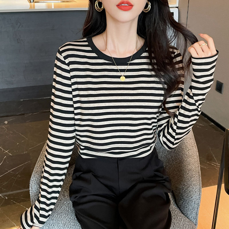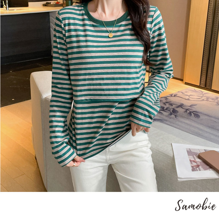 Новый продукт 2024 осень и зима теплая футболка для кормления после родов в полоску