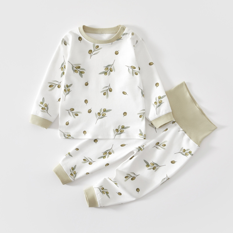 Детский осенний костюм полный хлопок с высокой талией для защиты живота осенние брюки для мужчин и женщин с длинными рукавами