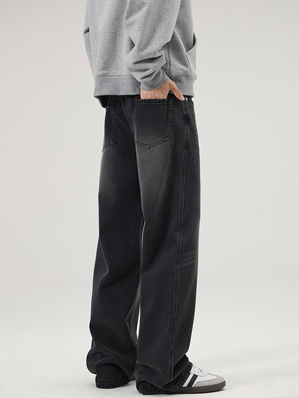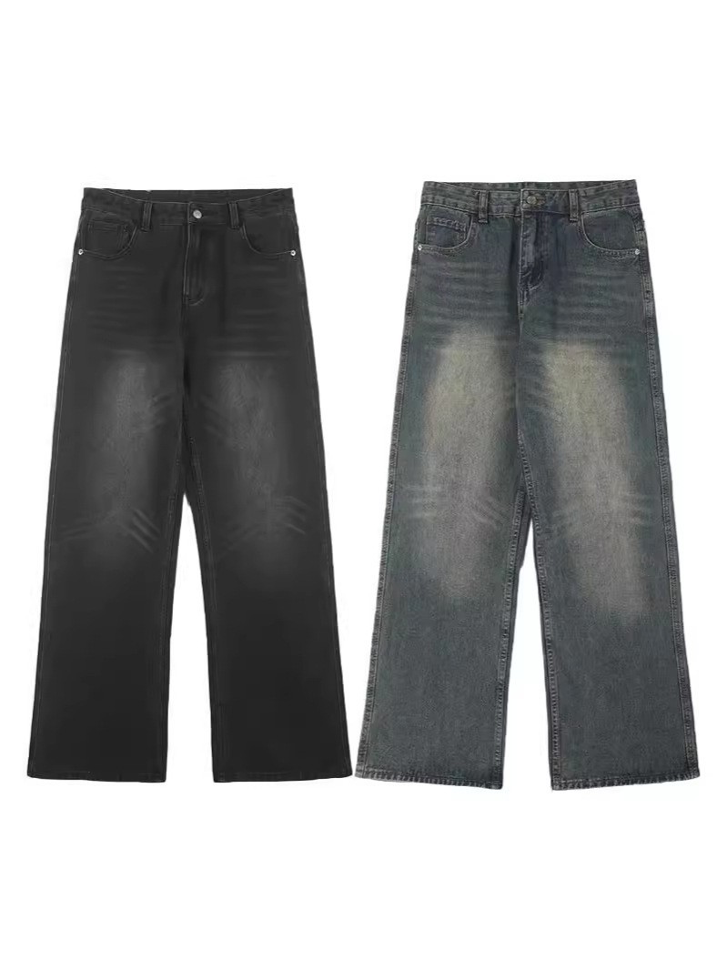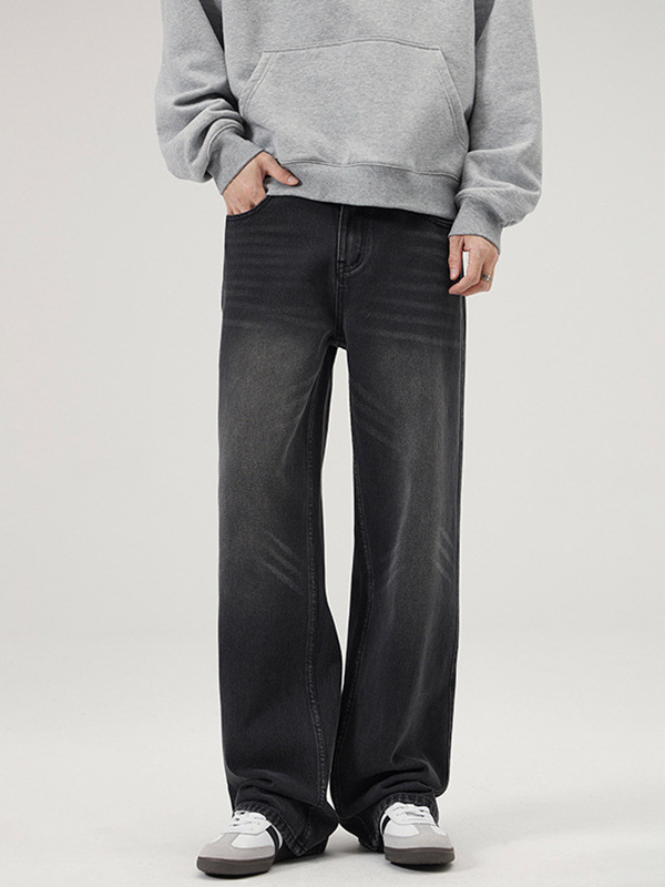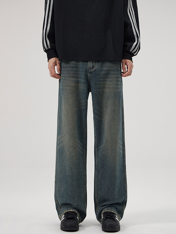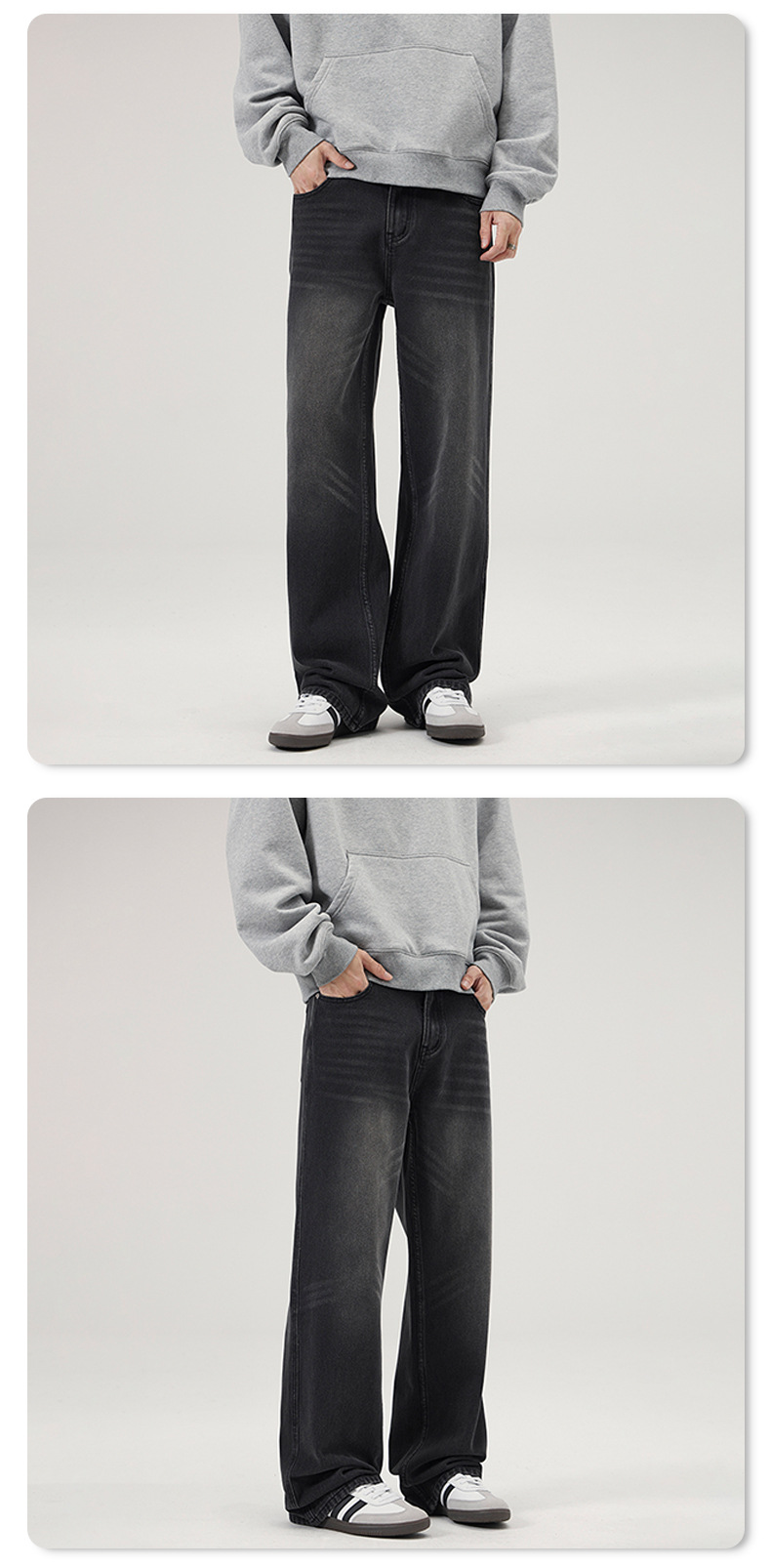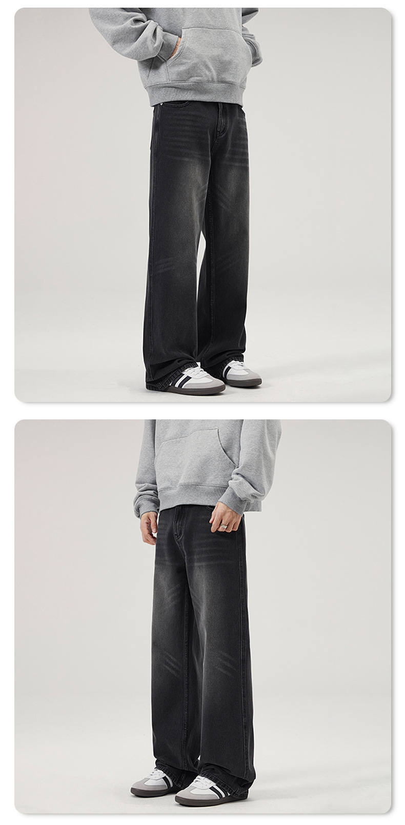 Мужские джинсы LKTM: осенне-зимние, в американском ретро-стиле, прямые, с эффектом потертости, на флисовой подкладке, утолщенные, свободные и теплые длинные брюки.