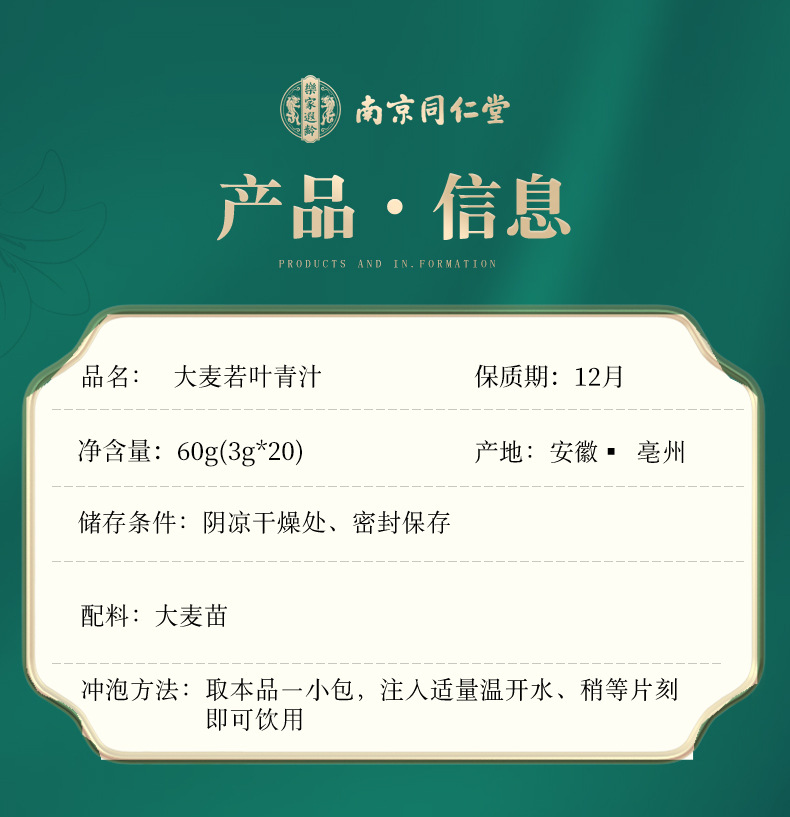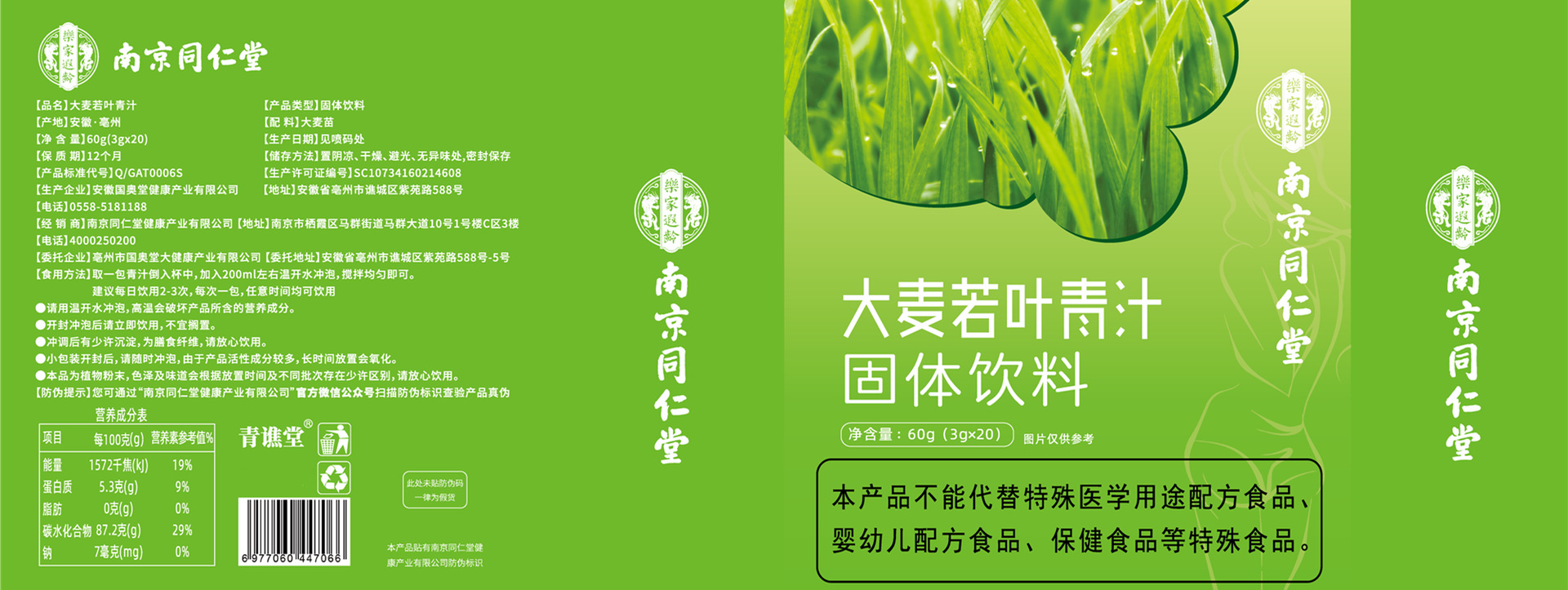 Сок из листьев ячменя Нанкин Тонгрентанг Лэйцзя, 60 г, оптом, готов к немедленной отгрузке.