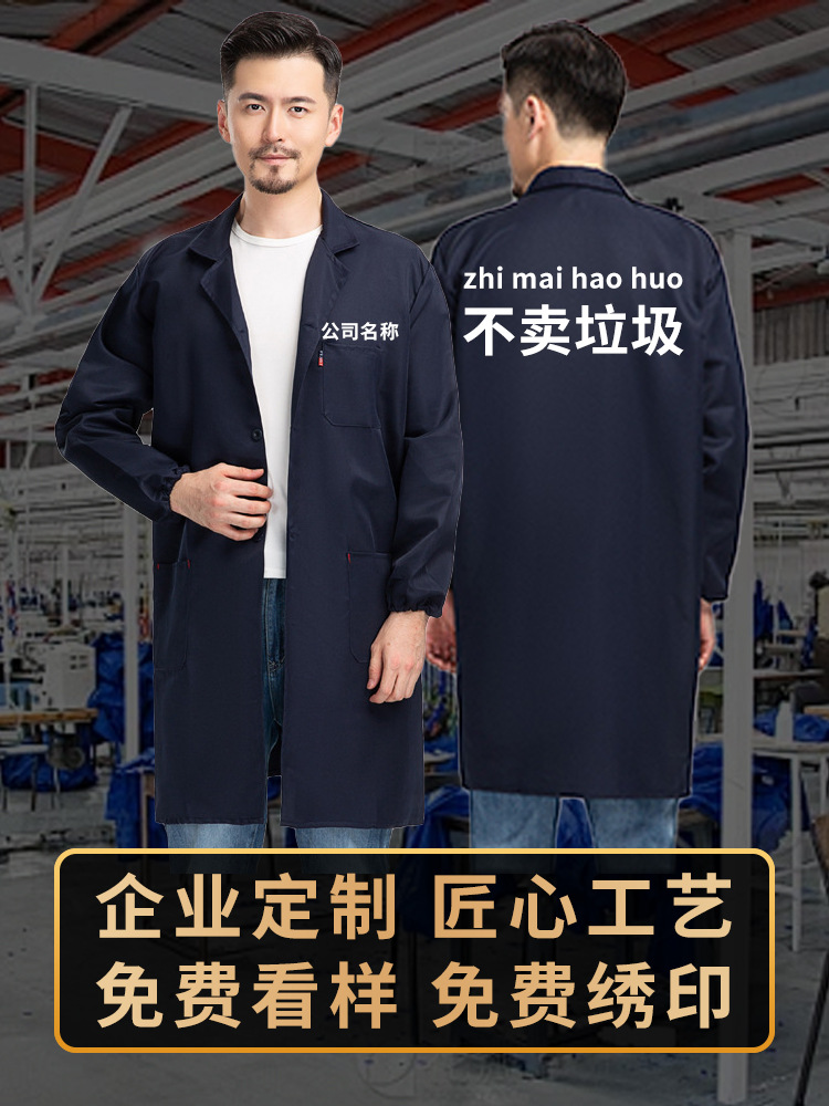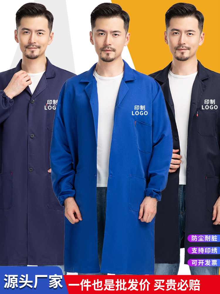 Однотонное пальто, рабочая одежда, одежда для охраны труда с длинными рукавами, устойчивая к пятнам, пылезащитная, утолщенная синяя одежда для охраны труда, комбинезон с напечатанным логотипом