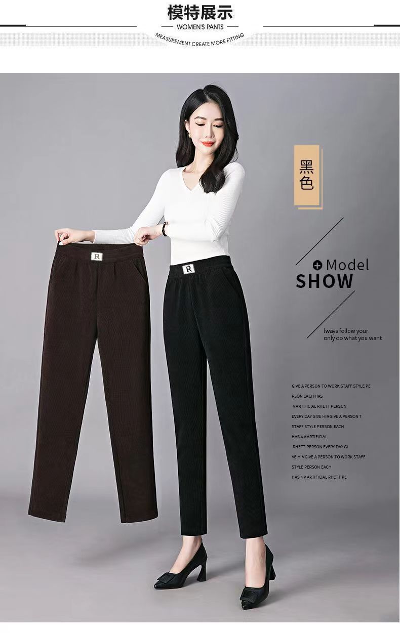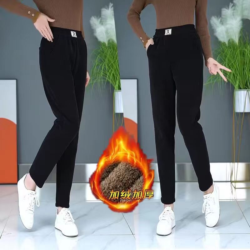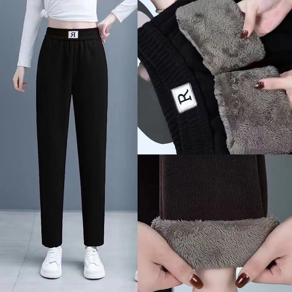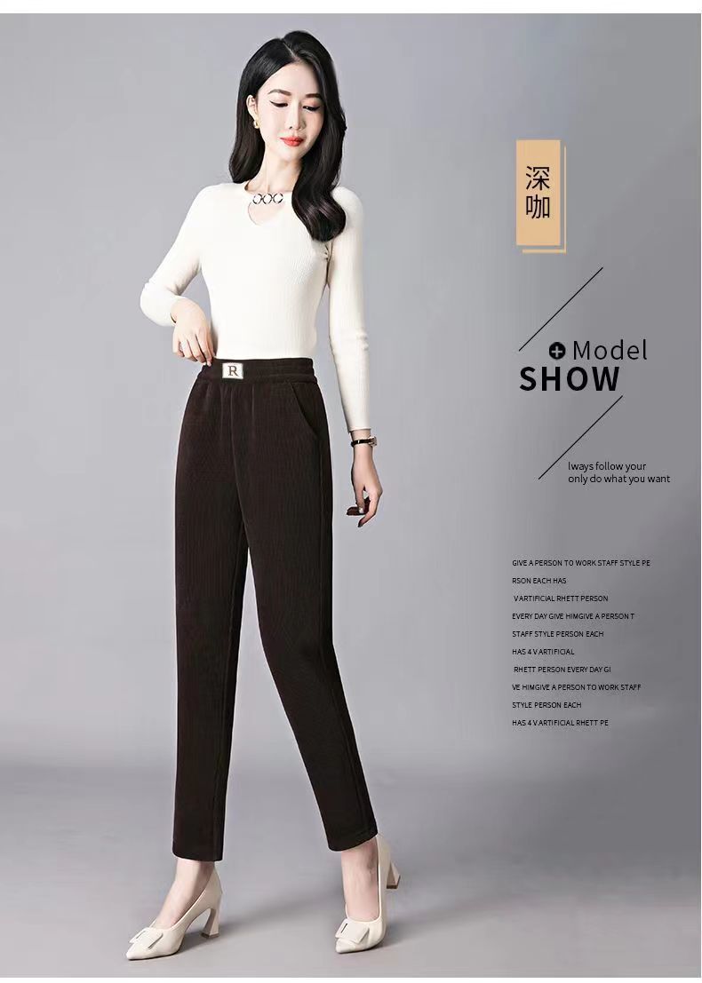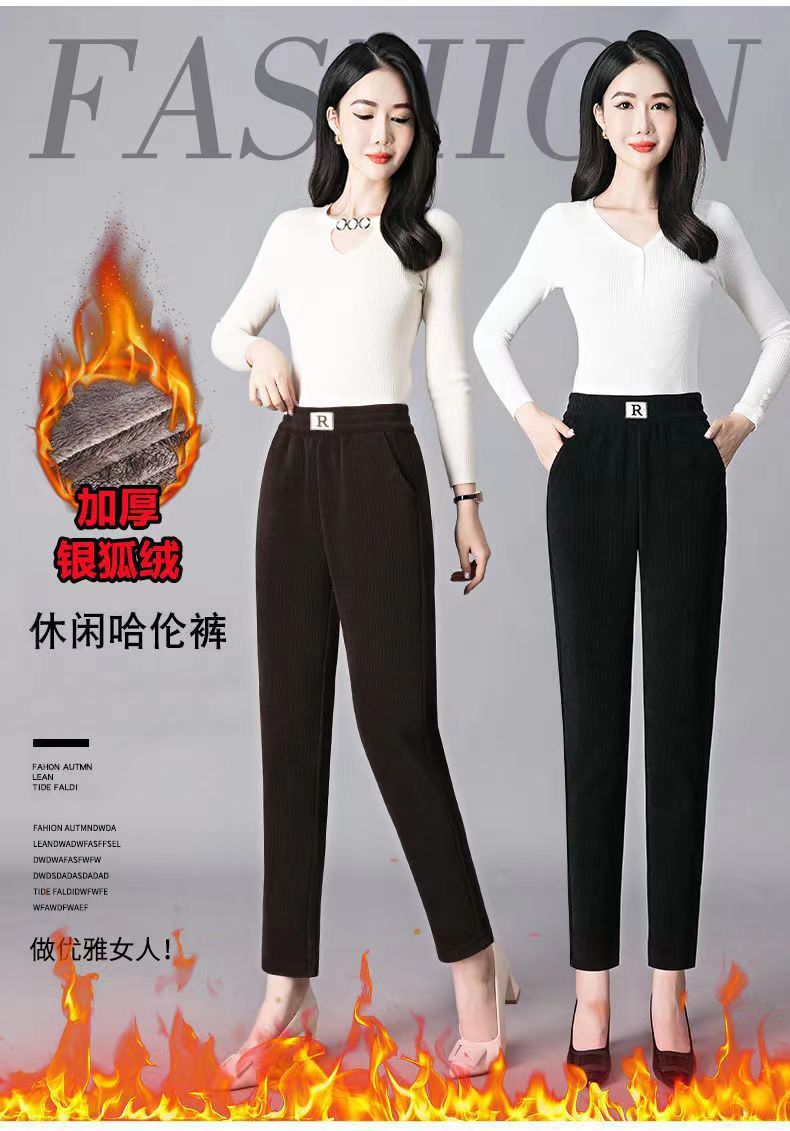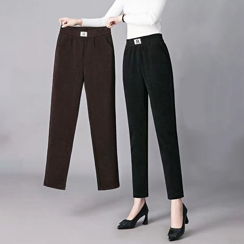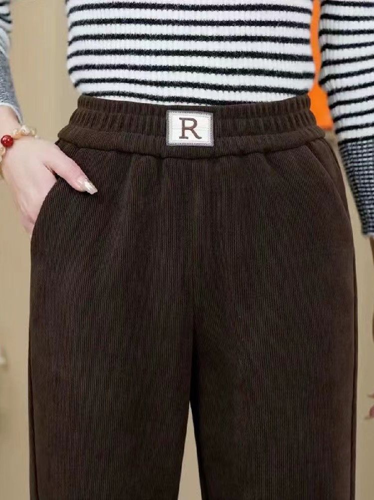 Осенне-зимние бархатные утолщенные шаровары из синели женские свободные большие размеры R label повседневные брюки прямые брюки брюки с клапаном и карманами вельвет Y