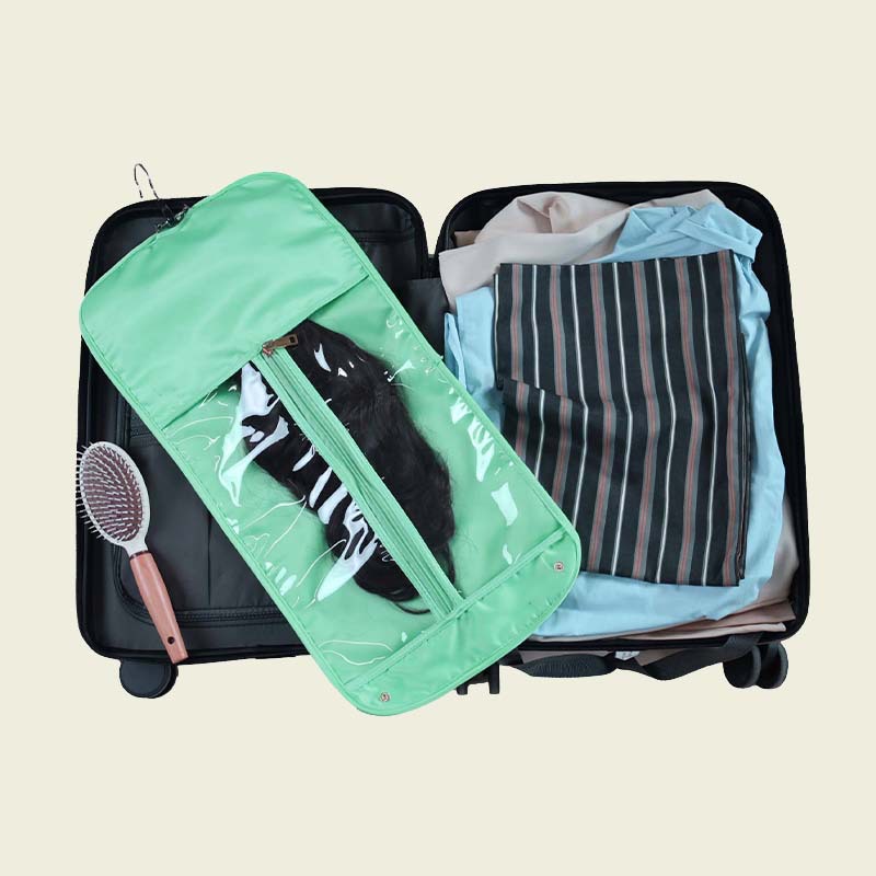 Высококачественный шелковый и атласный комплект для парика, утолщенная прозрачная сумка для парика на молнии, портативная складная атласная сумка для хранения парика